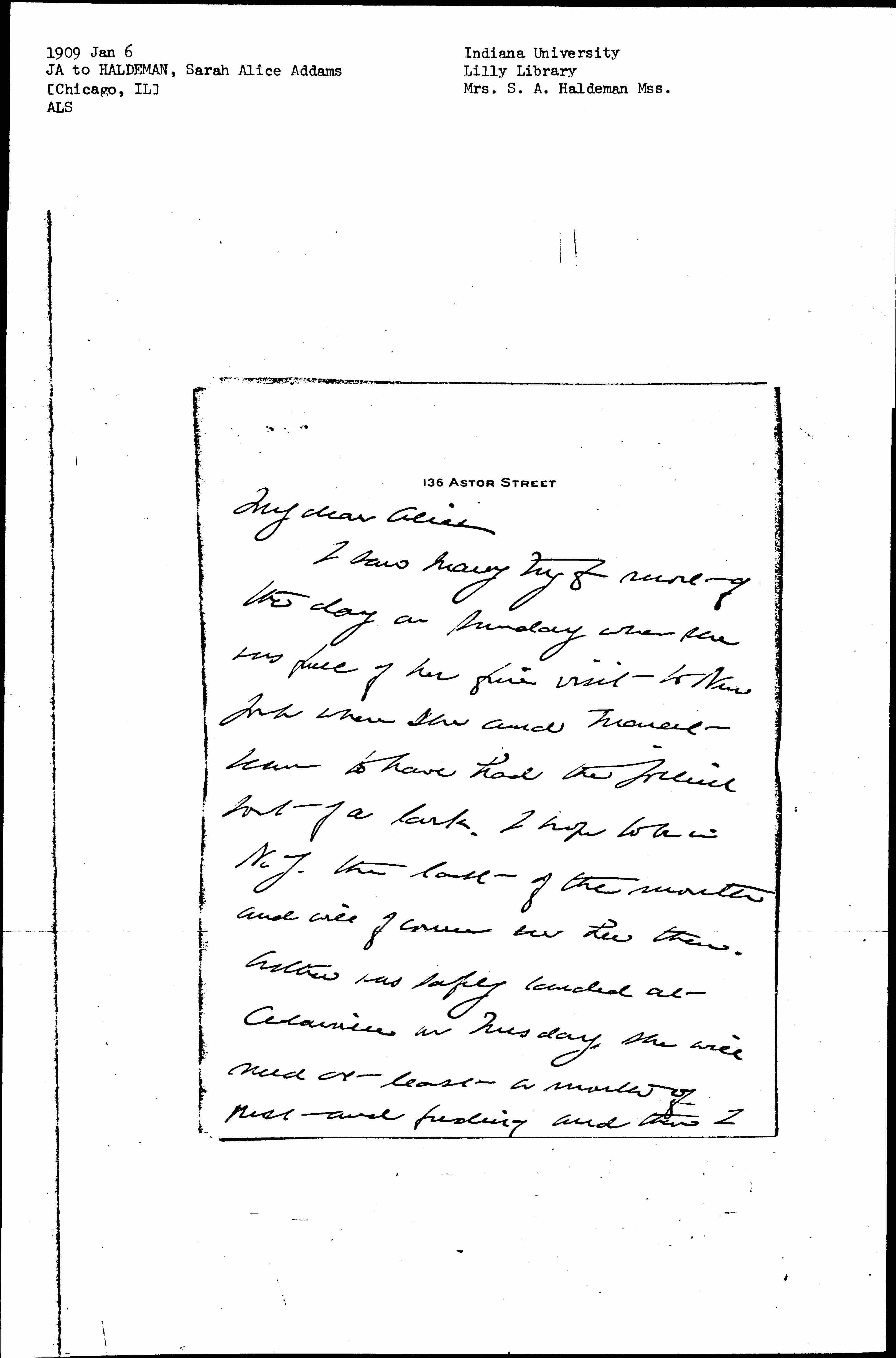 With love to you and every good wish for the New Year. Always you loving sister Jane Addams.