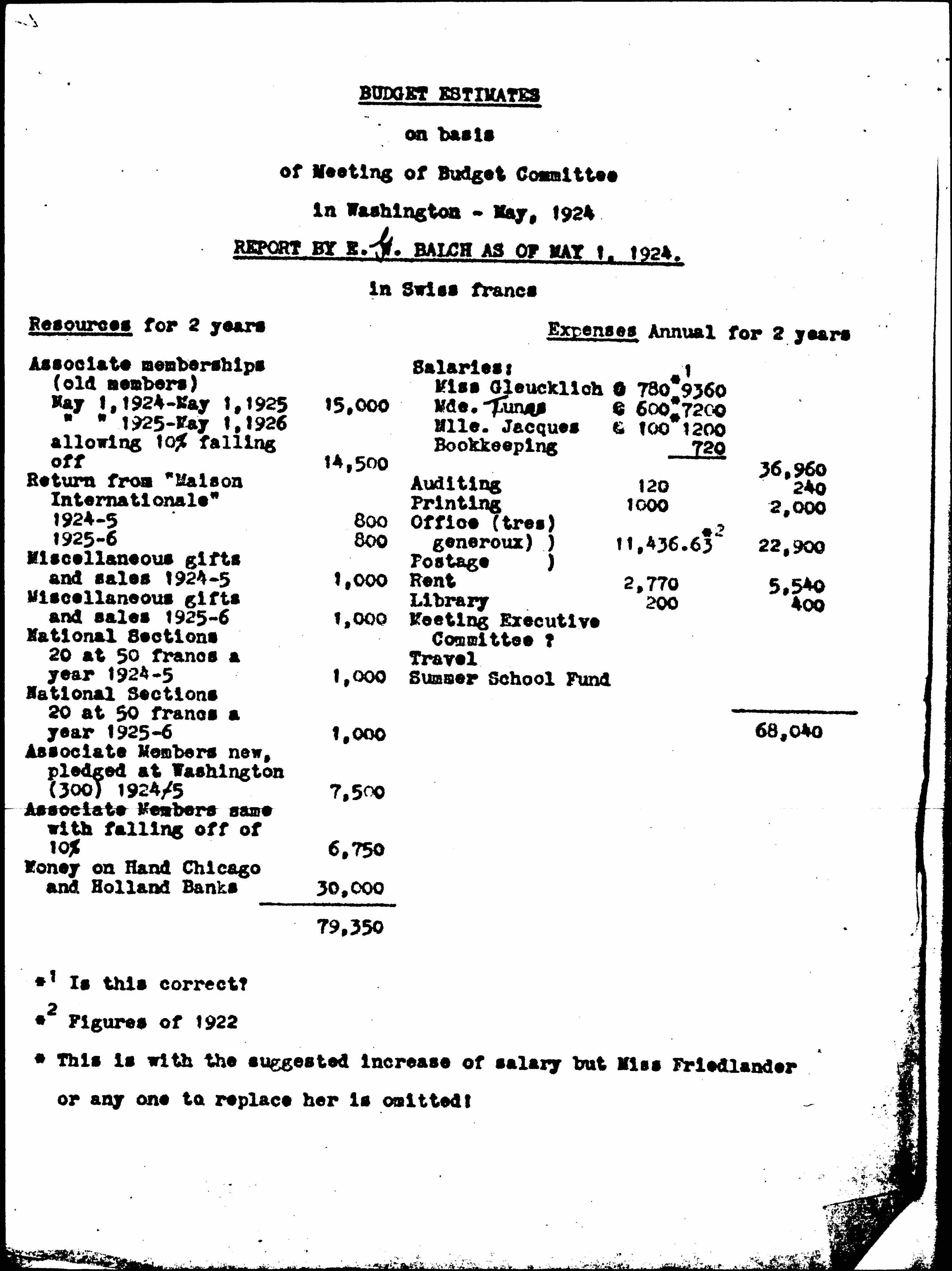 | May 1, 1924-May 1, 1925 | 15,000 | Miss [Glücklich] Mde. Tunas Mlle. Jacques Bookkeeping |