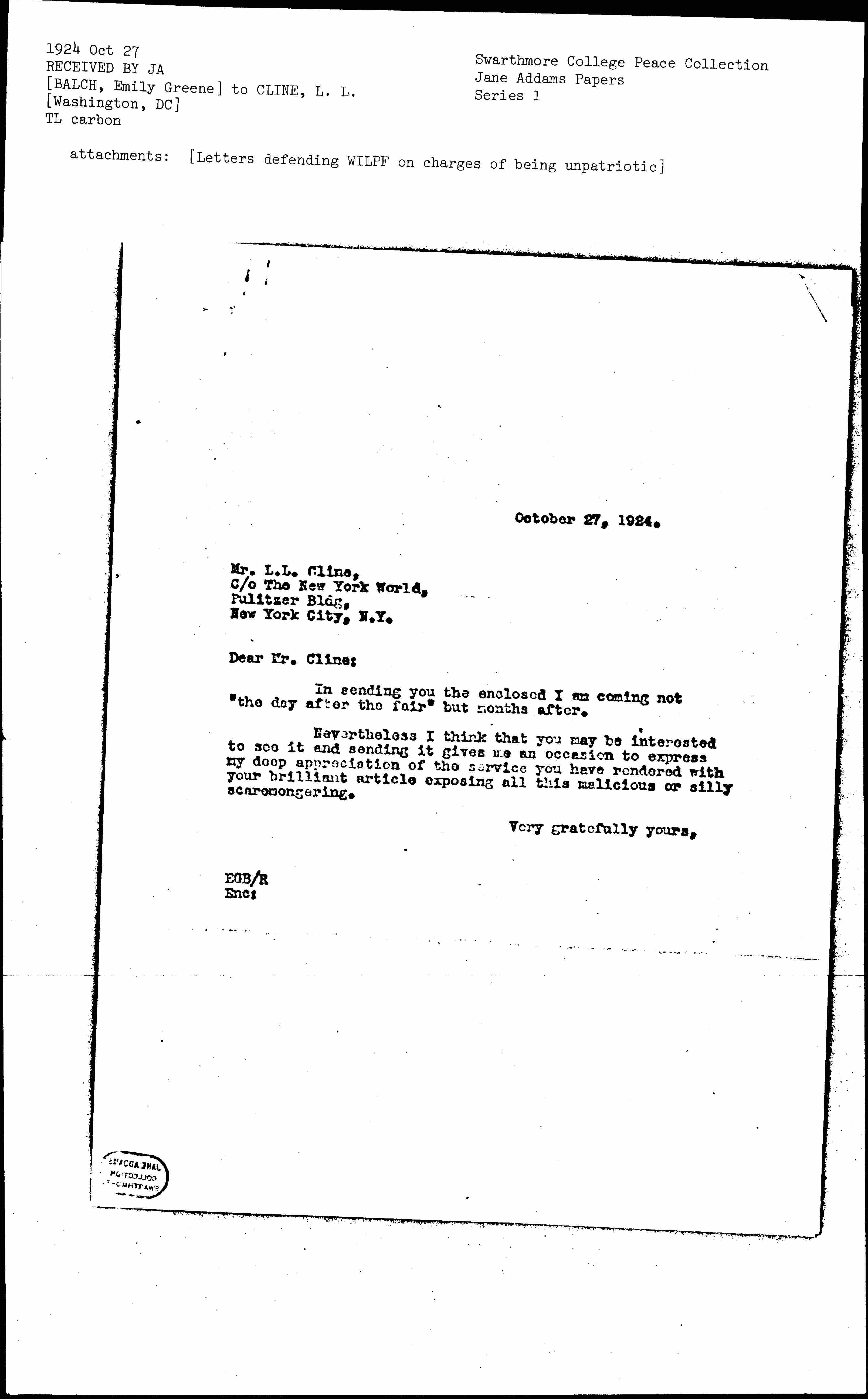 In sending you the enclosed I am coming not "the day after the fair" but months after.