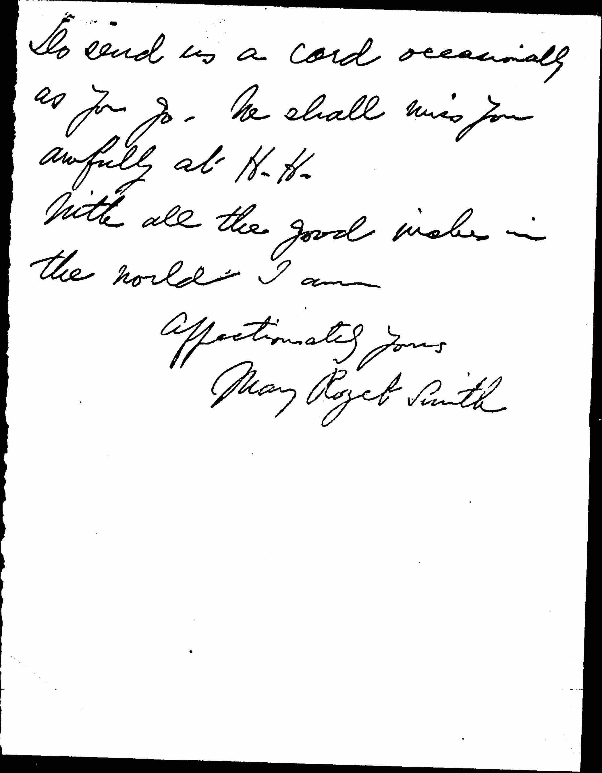Do send us a card occasionally as you go. We shall miss you awfully at H.H.