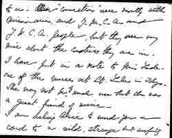 My best greetings your companions and my love to you. Jane says to tell you that she was handicapped by not having any addresses here. She has had to guess at them, or leave you to find them in the places. [page 5]