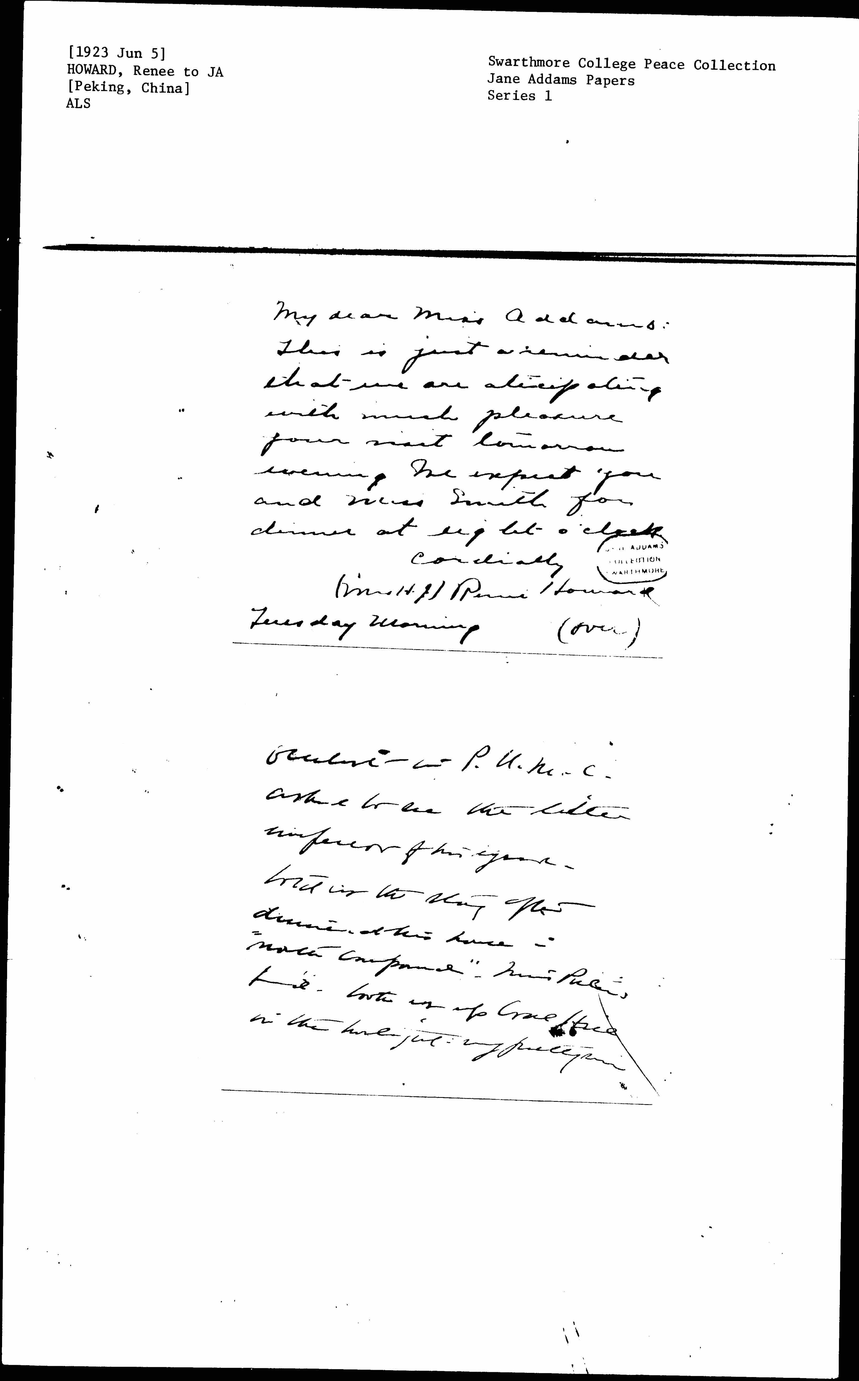 This is just a reminder that we are [anticipating] with much pleasure your visit tomorrow evening. We expect you and Miss Smith for dinner at eight o'clock.