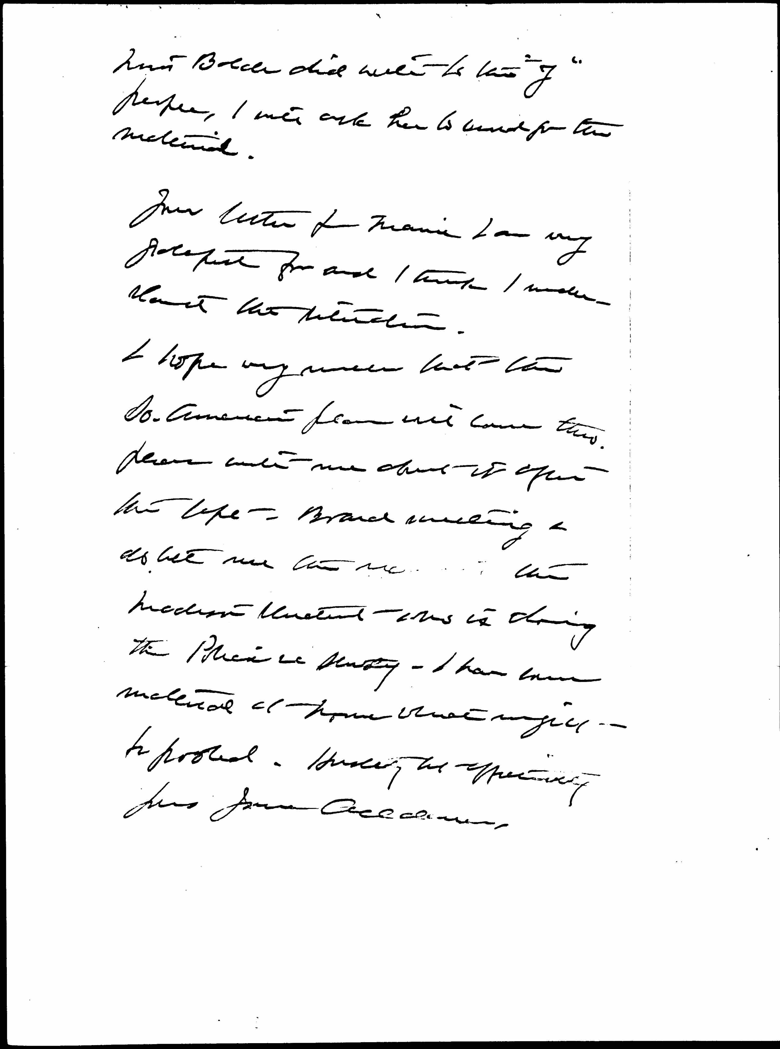 I hope very much that the So. American plan will come [through]. Please write me about it after the Sept. Board meeting & do tell me the [name of?] the Madison student who is doing the Police [etc.] study -- I have some material at home that might be pooled. Hastily but affectionately yrs Jane Addams.