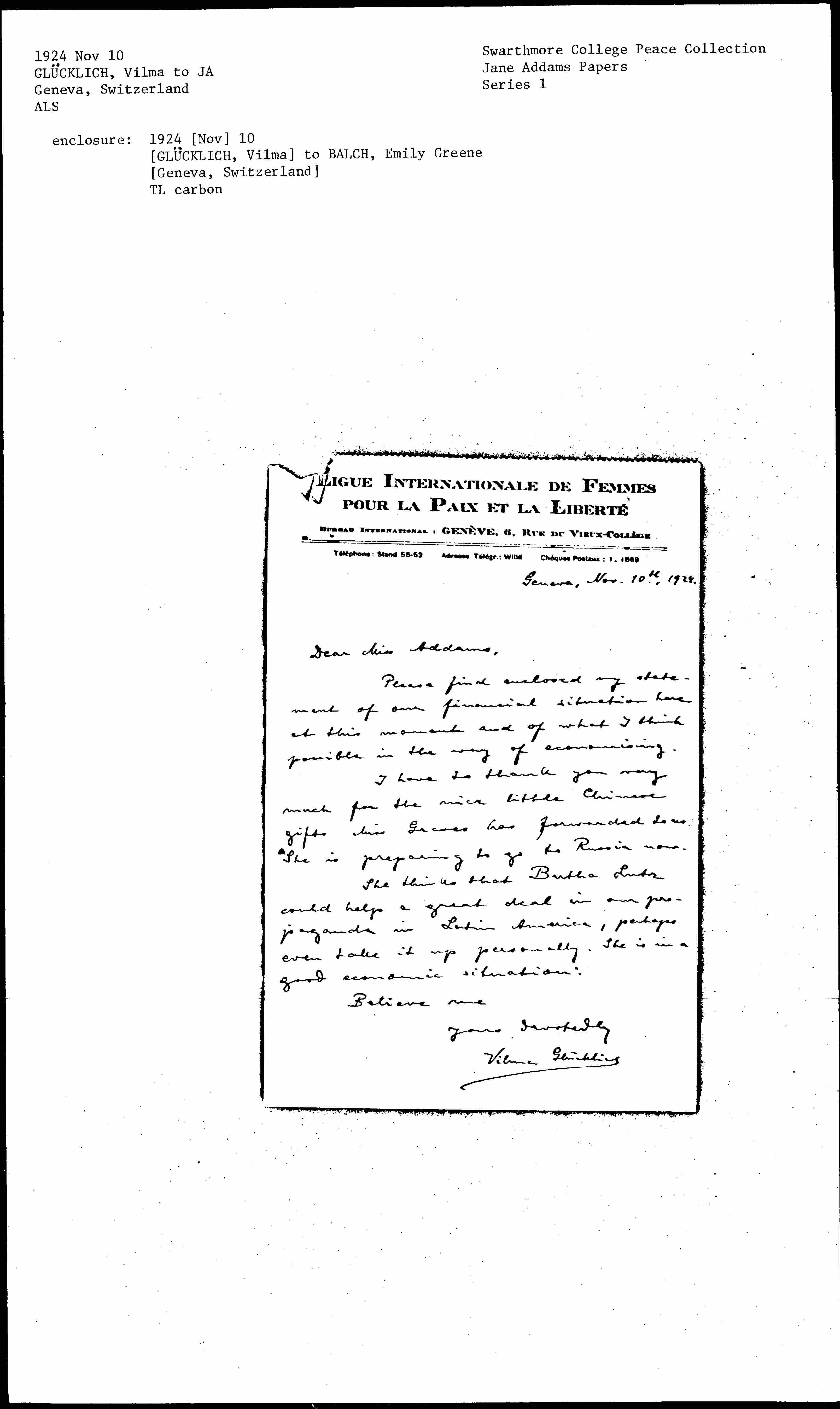 She thinks that Bertha Lutz could help a great deal in our propaganda in Latin America, perhaps even take it up personally. She is in a good economic situation.
