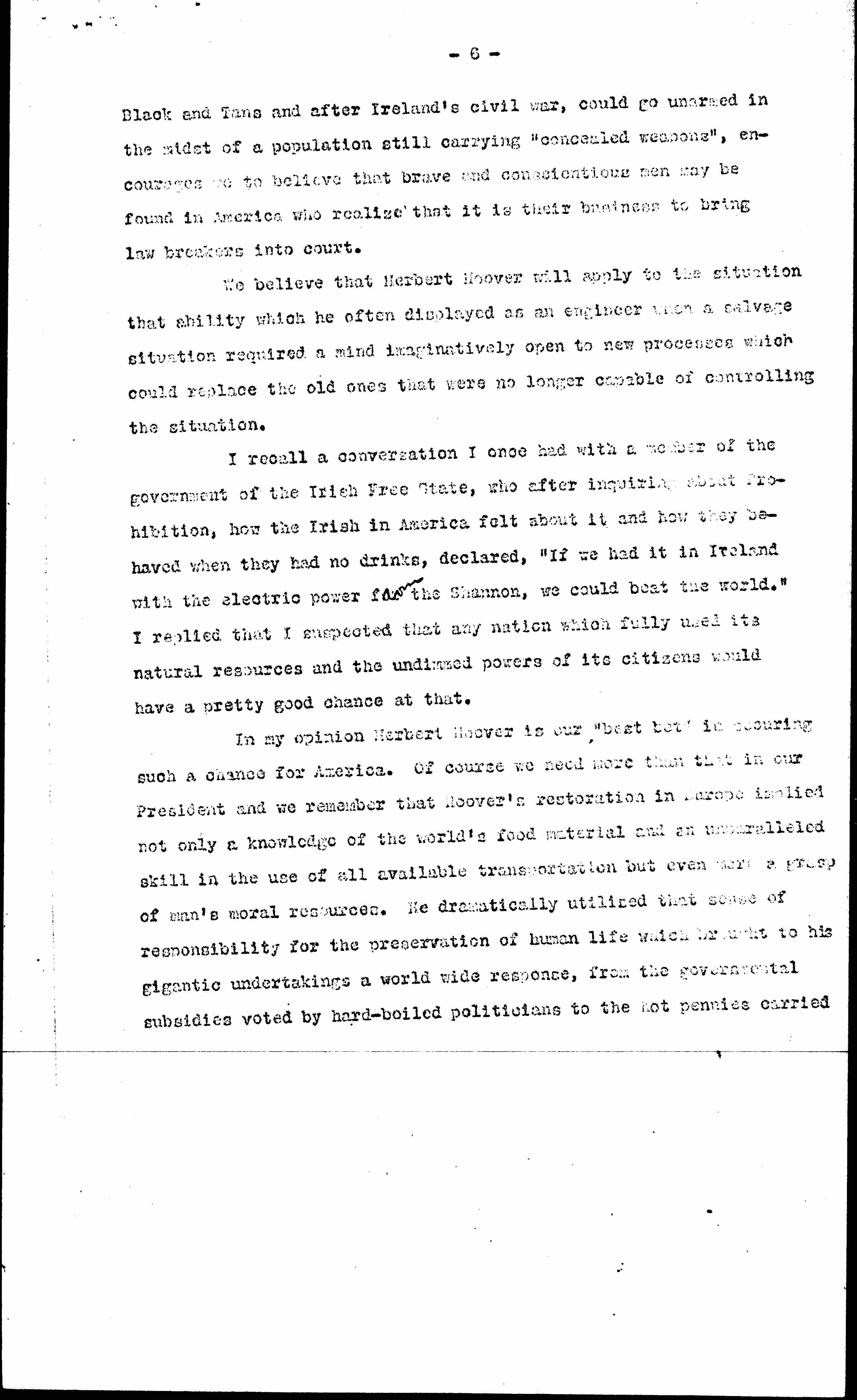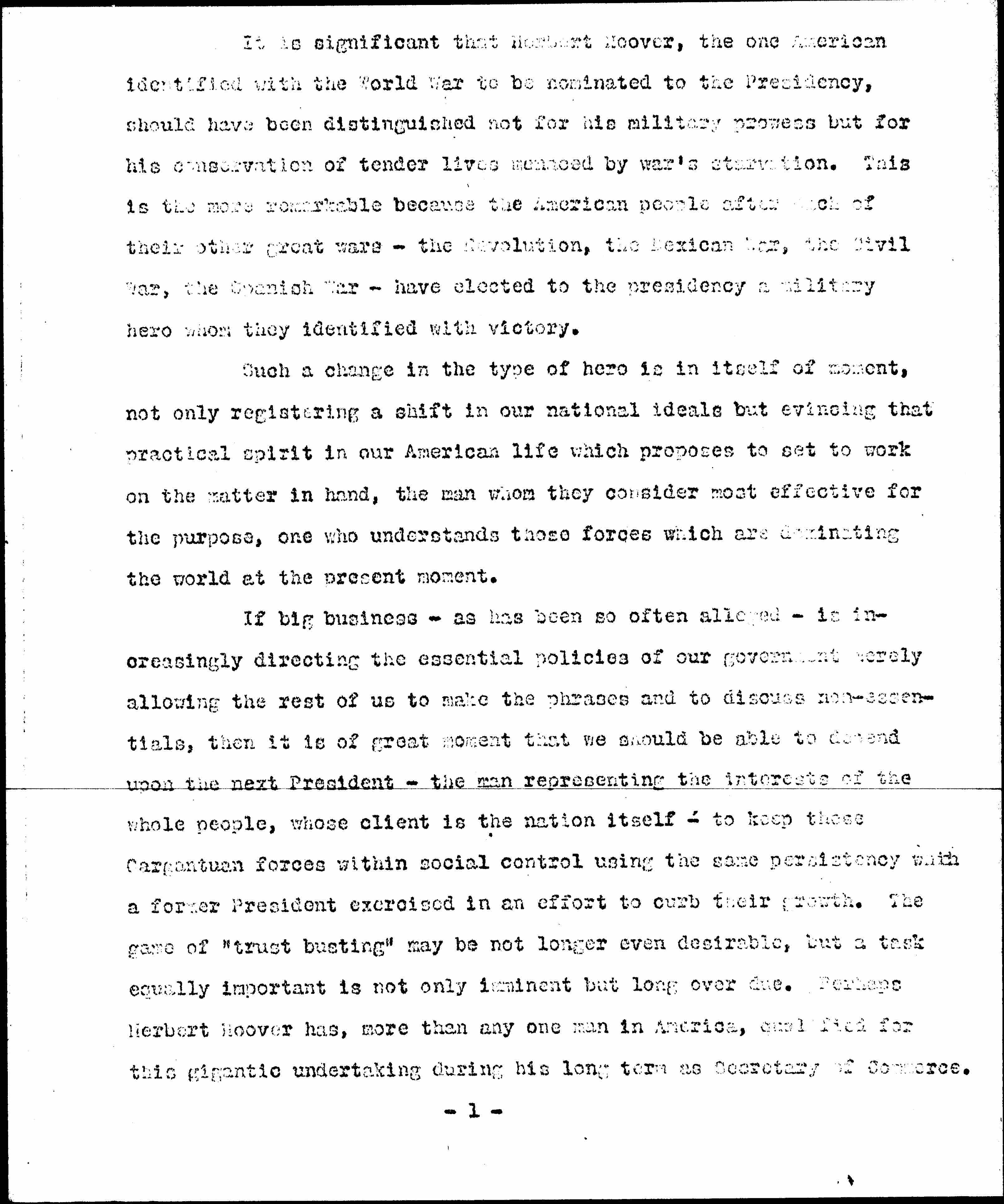 Statement Endorsing Herbert Hoover, October 13, 1928
