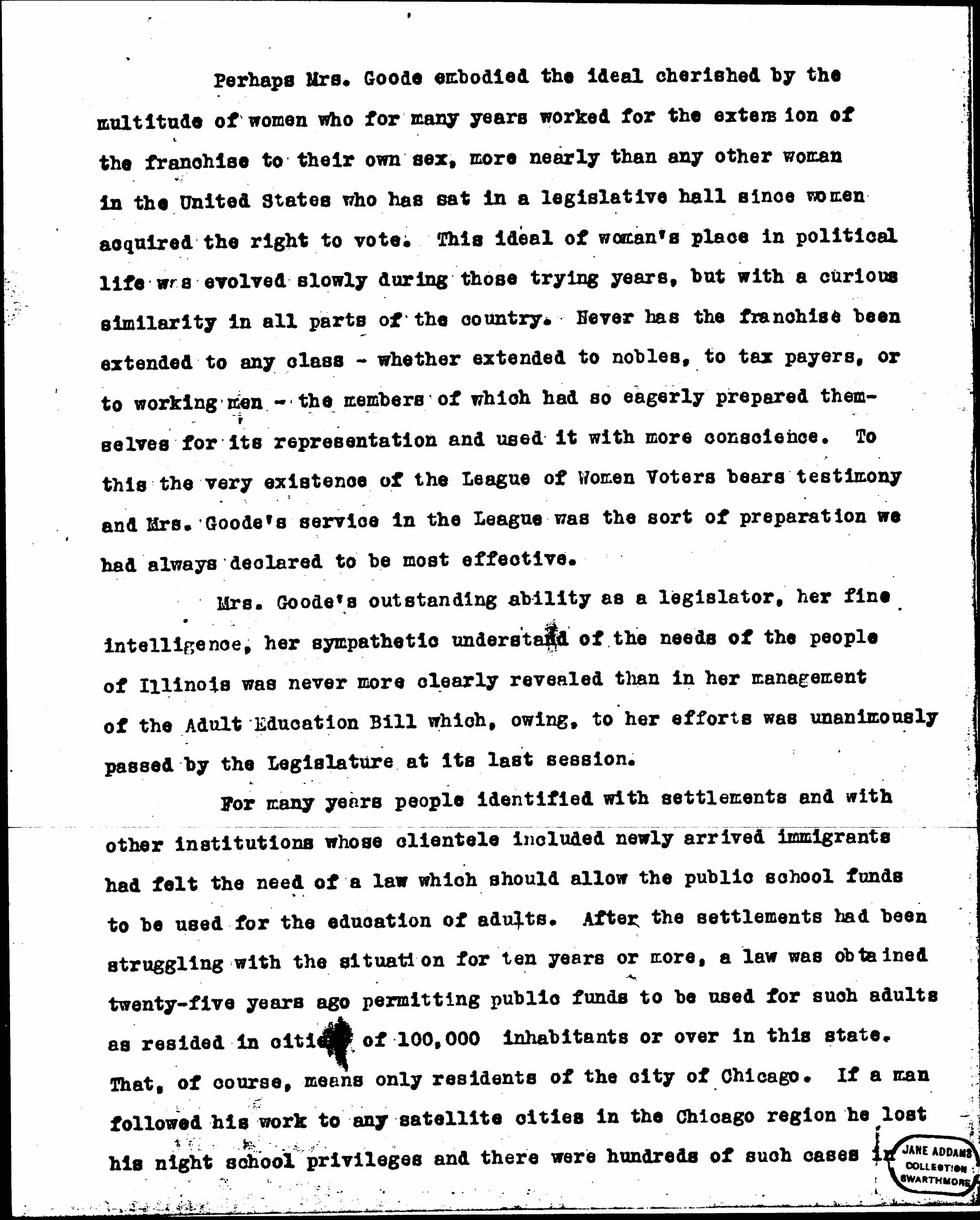 Tribute to Katherine Hancock Goode, January 12, 1928 (fragment)