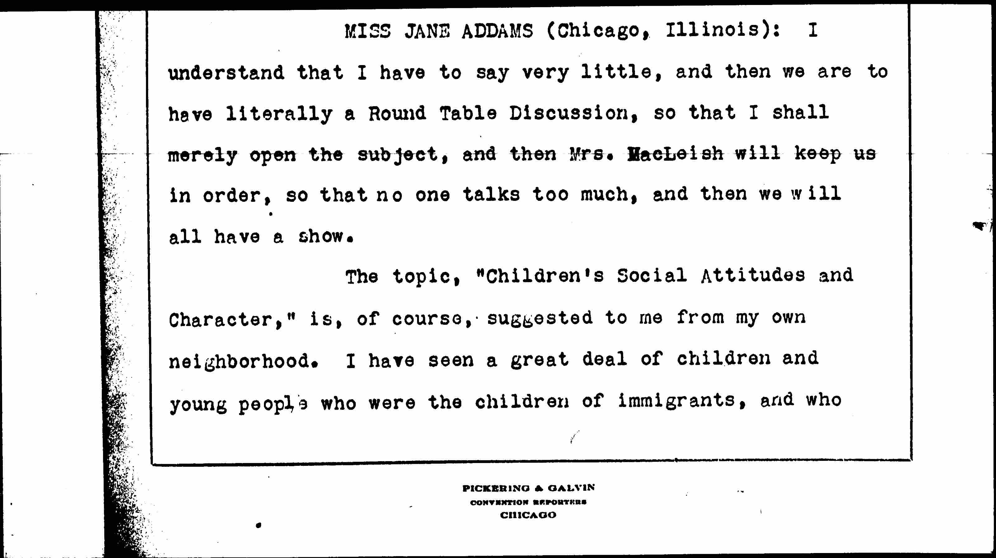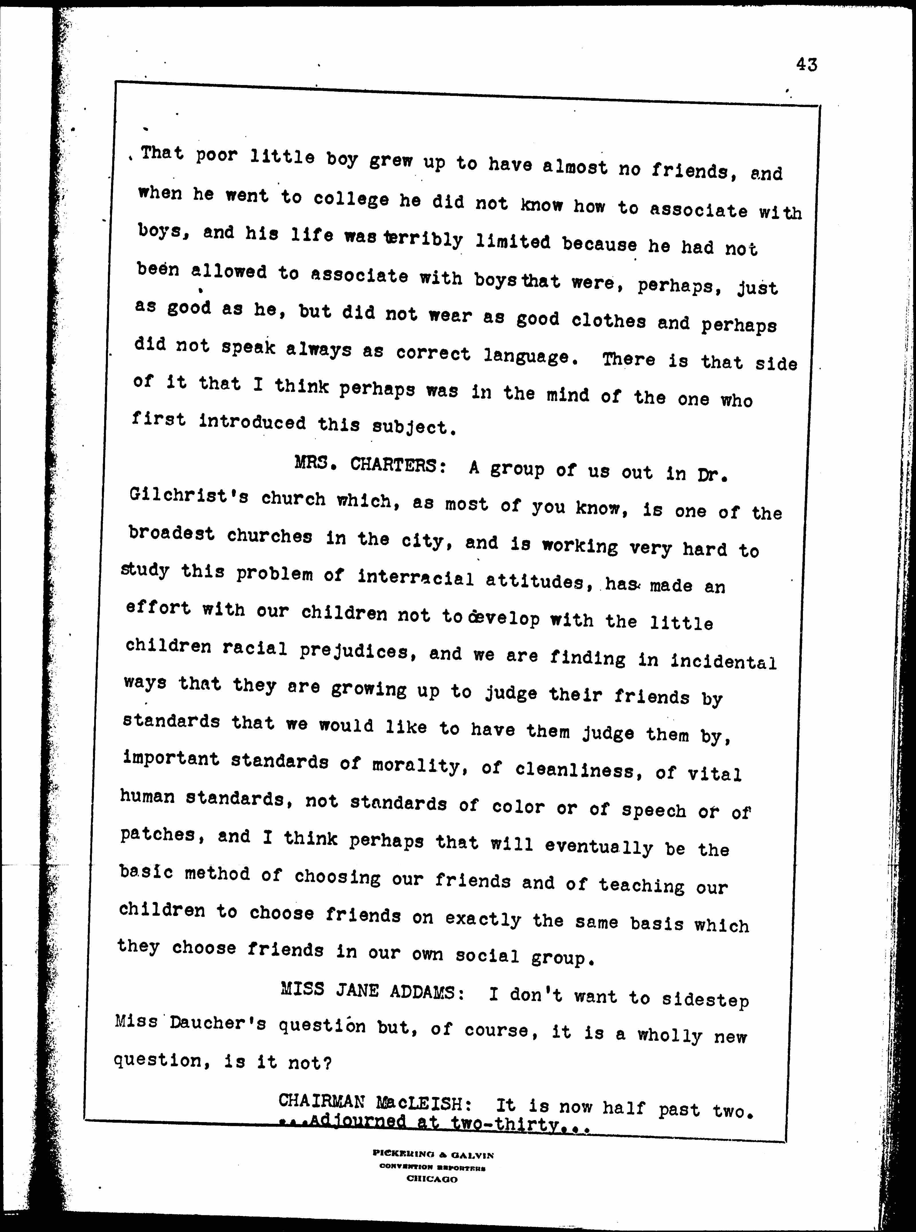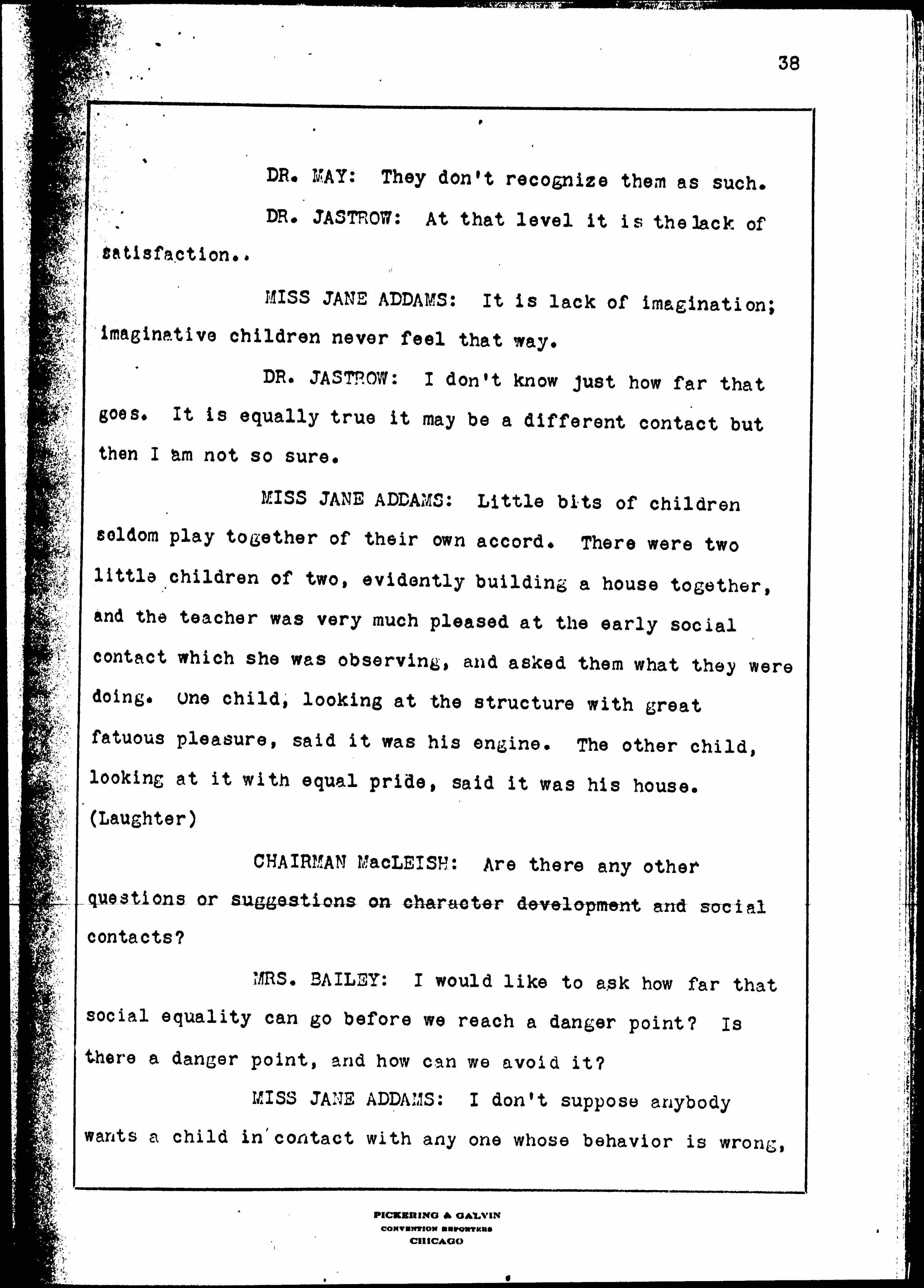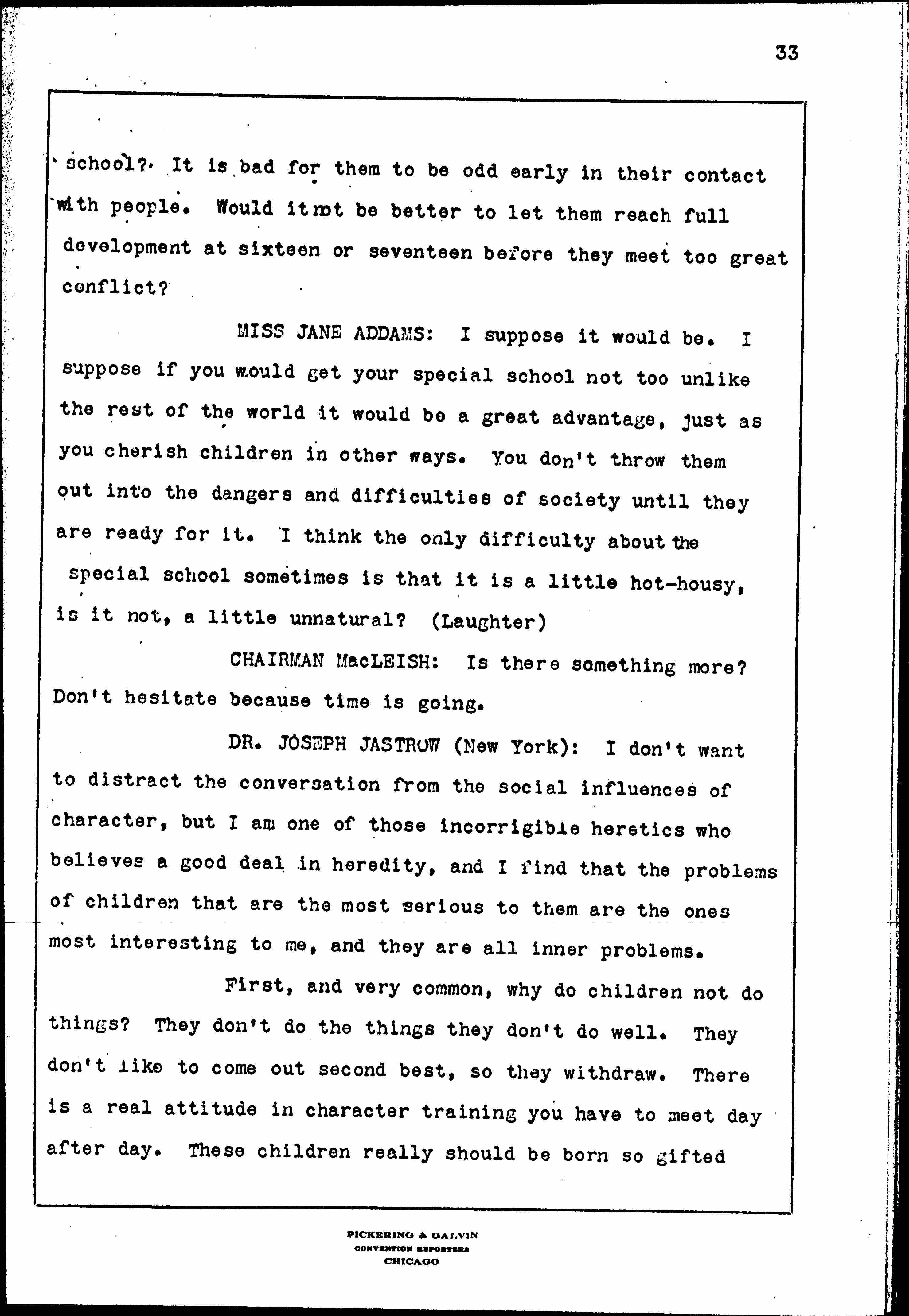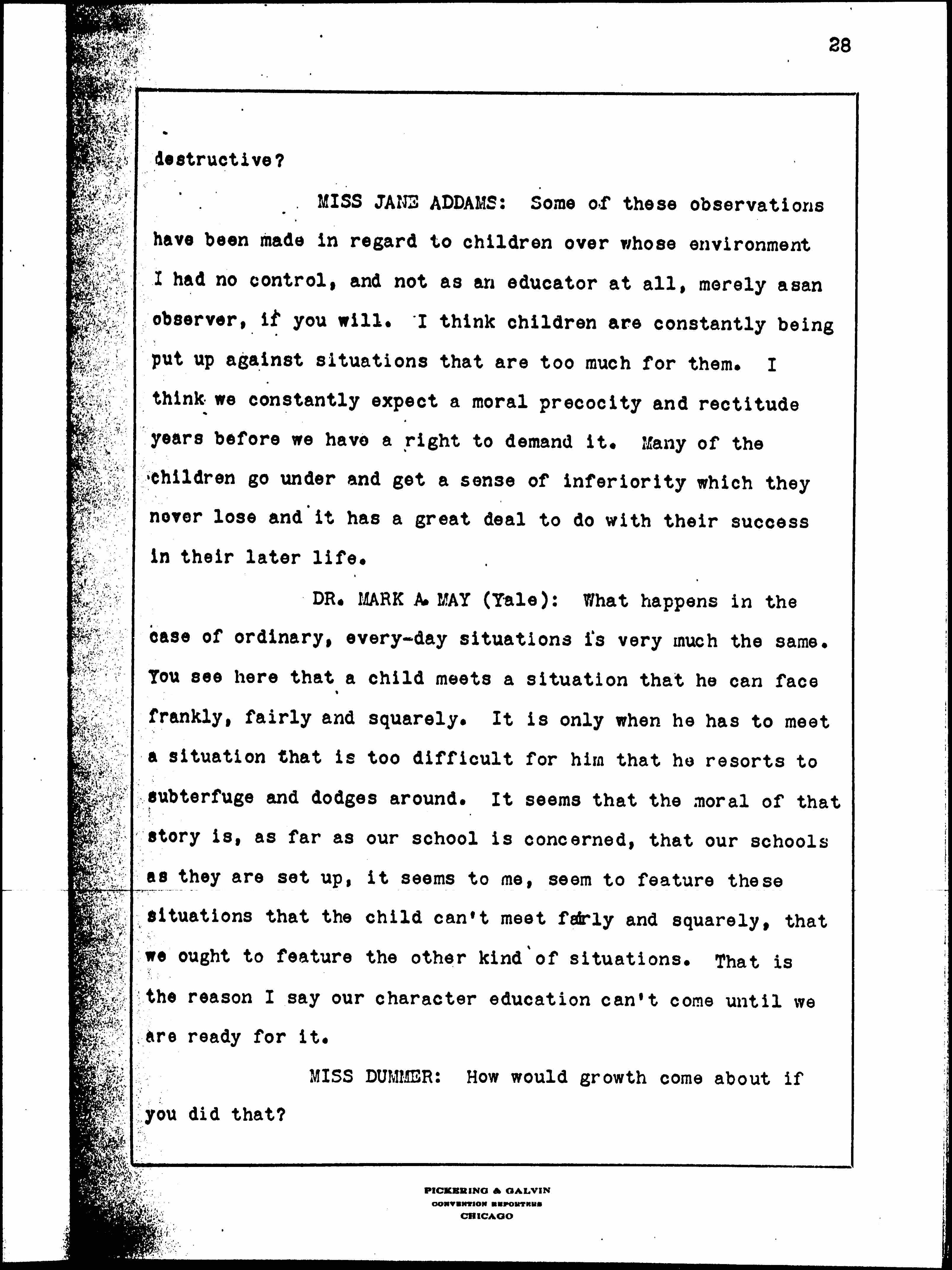 Social Attitudes and Character, February 16, 1928