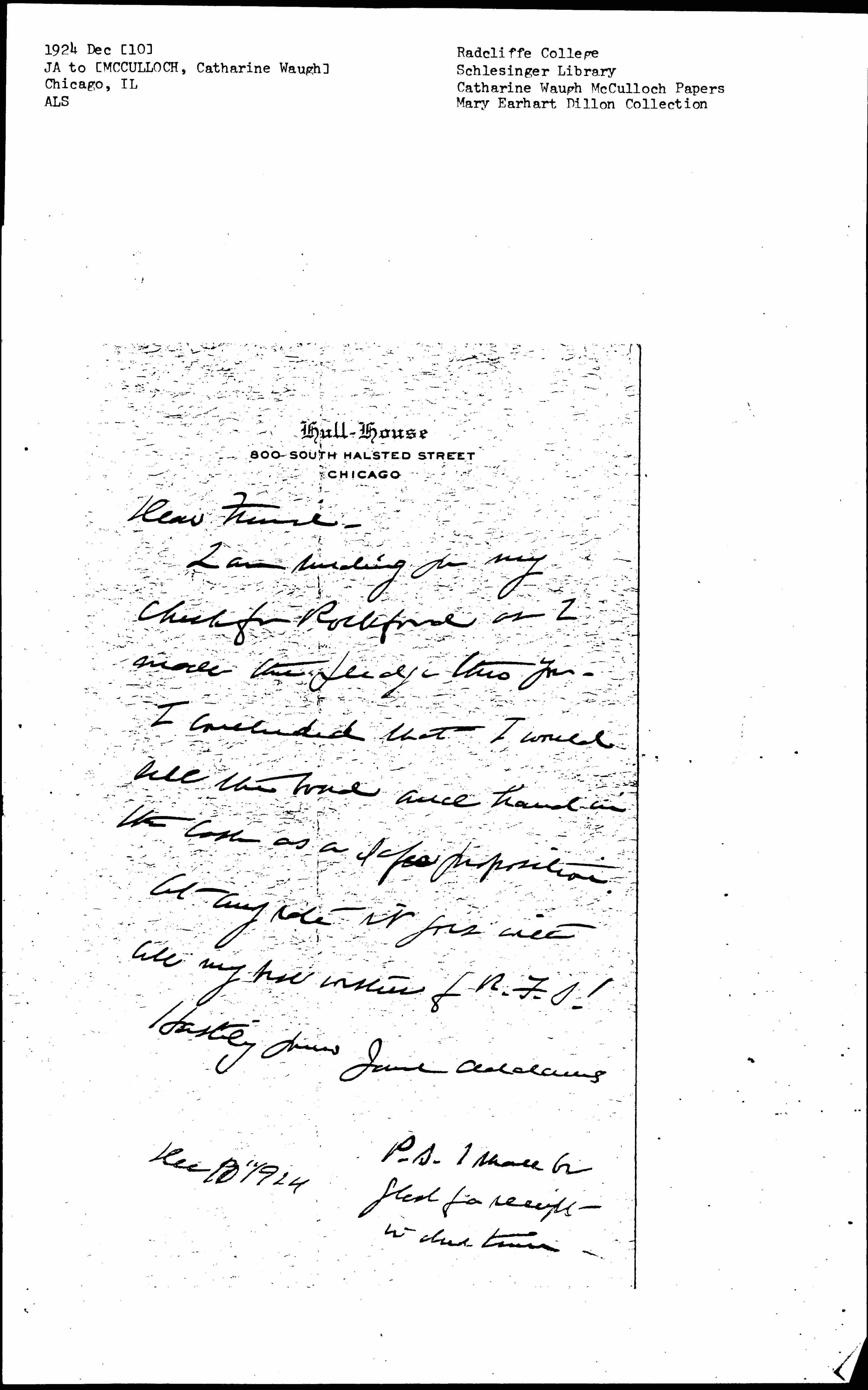 P.S. I shall be glad for receipt in due time