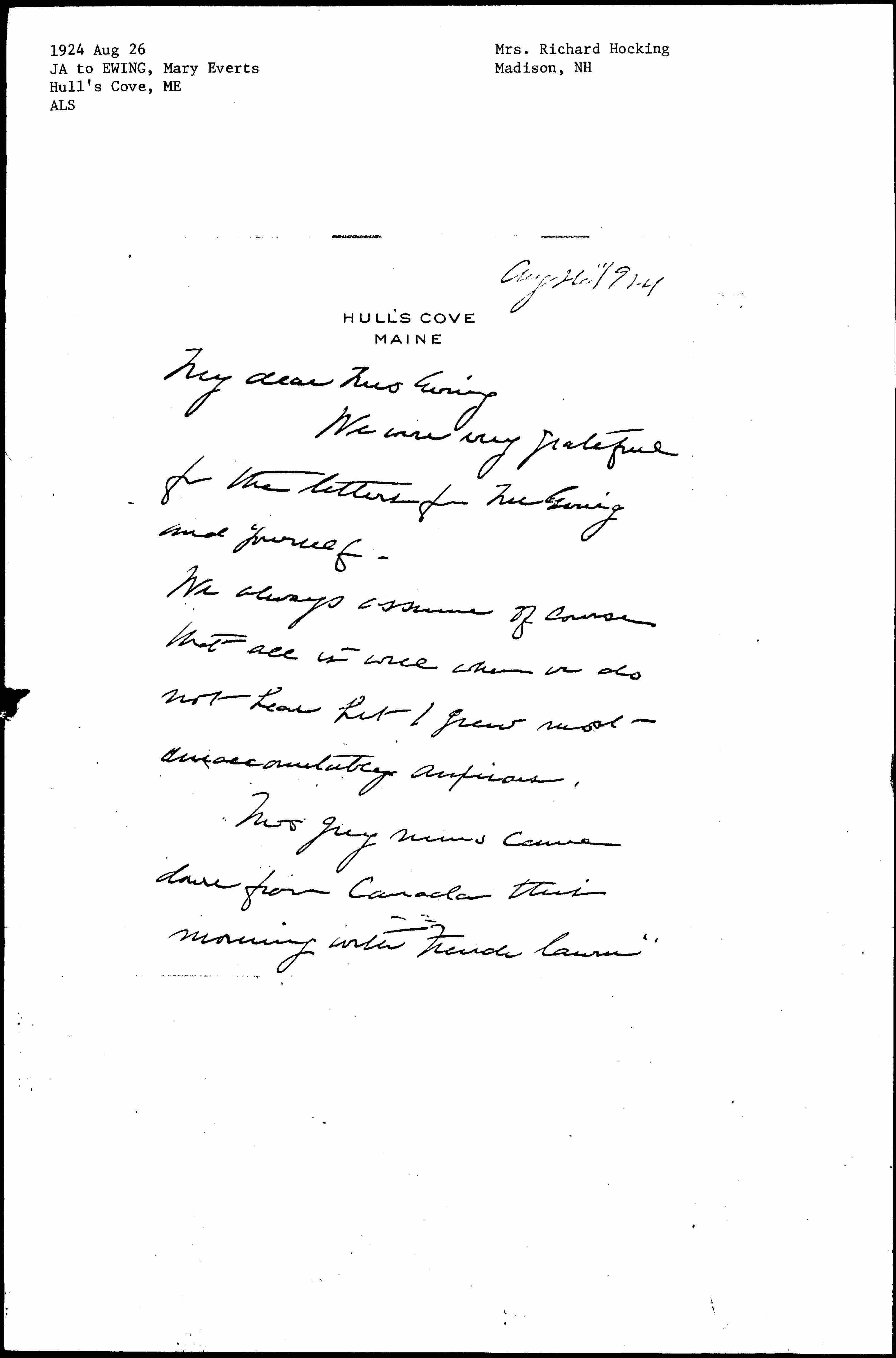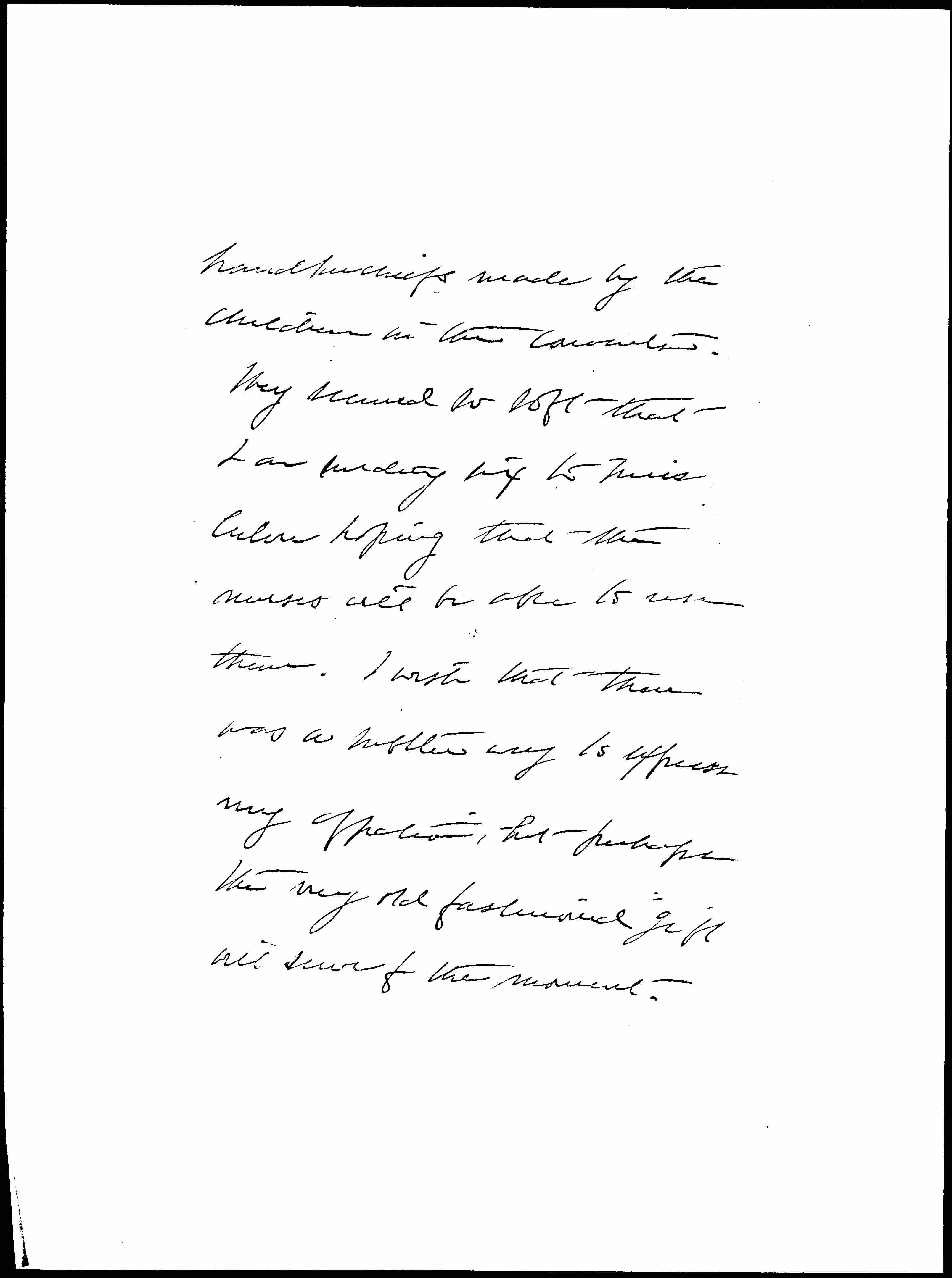 They seemed so soft that I am sending six to Miss Culver hoping that the nurses will be able to use them. I wish that there was a subtler way to express my affection, but perhaps the very [old-fashioned] gift will serve for the moment. [page 3]