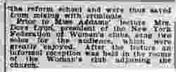 She stated that [Tolstoy] had greatly discouraged the growth of a colony of people around his home, who wished to follow his lead, believing that every man should work out his own destiny in the sphere where he happened to be cast. Miss Addams also testified to the noble and self-sacrificing character of [Tolstoy], and paid a warm tribute to the great work which he had started in the nation that people liked to think barbaric for the final peace of the world. She spoke a little on the good resulting from the use of an officer attached to the Hull House in Chicago, for the watching of small boys who were too young to be sent to [page 2] the reform school and were thus saved from mixing with criminals.
