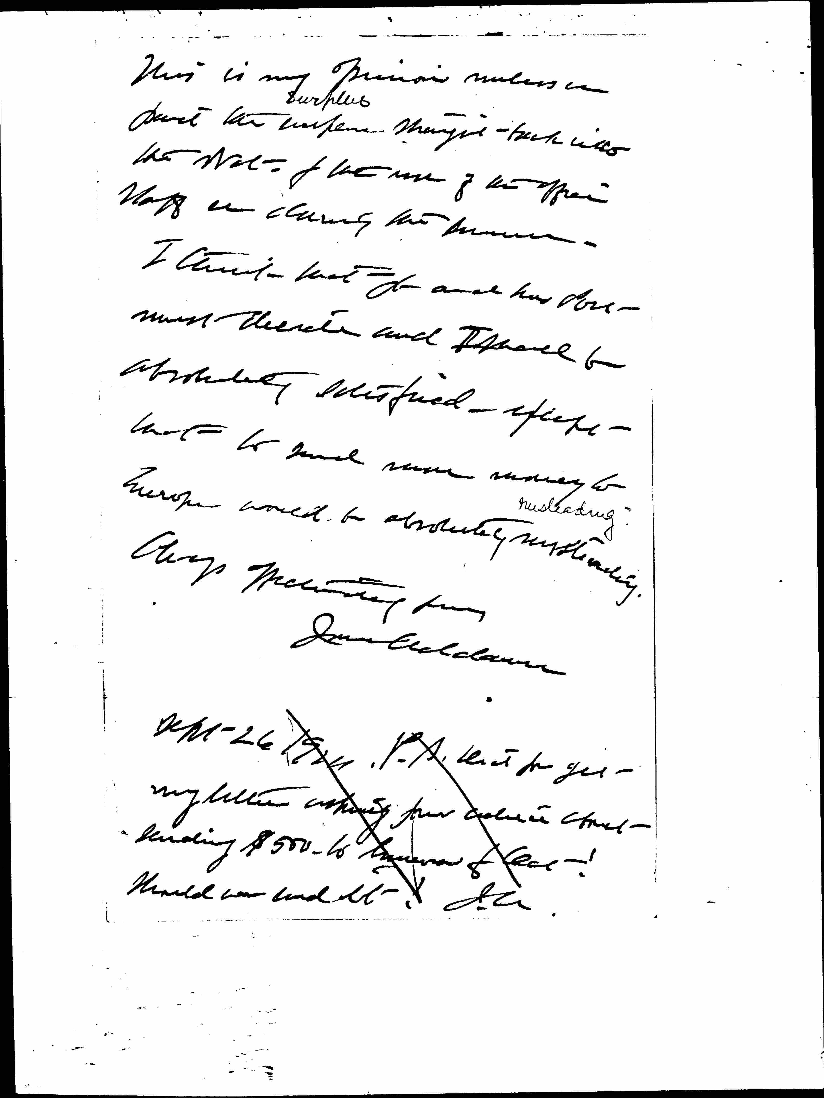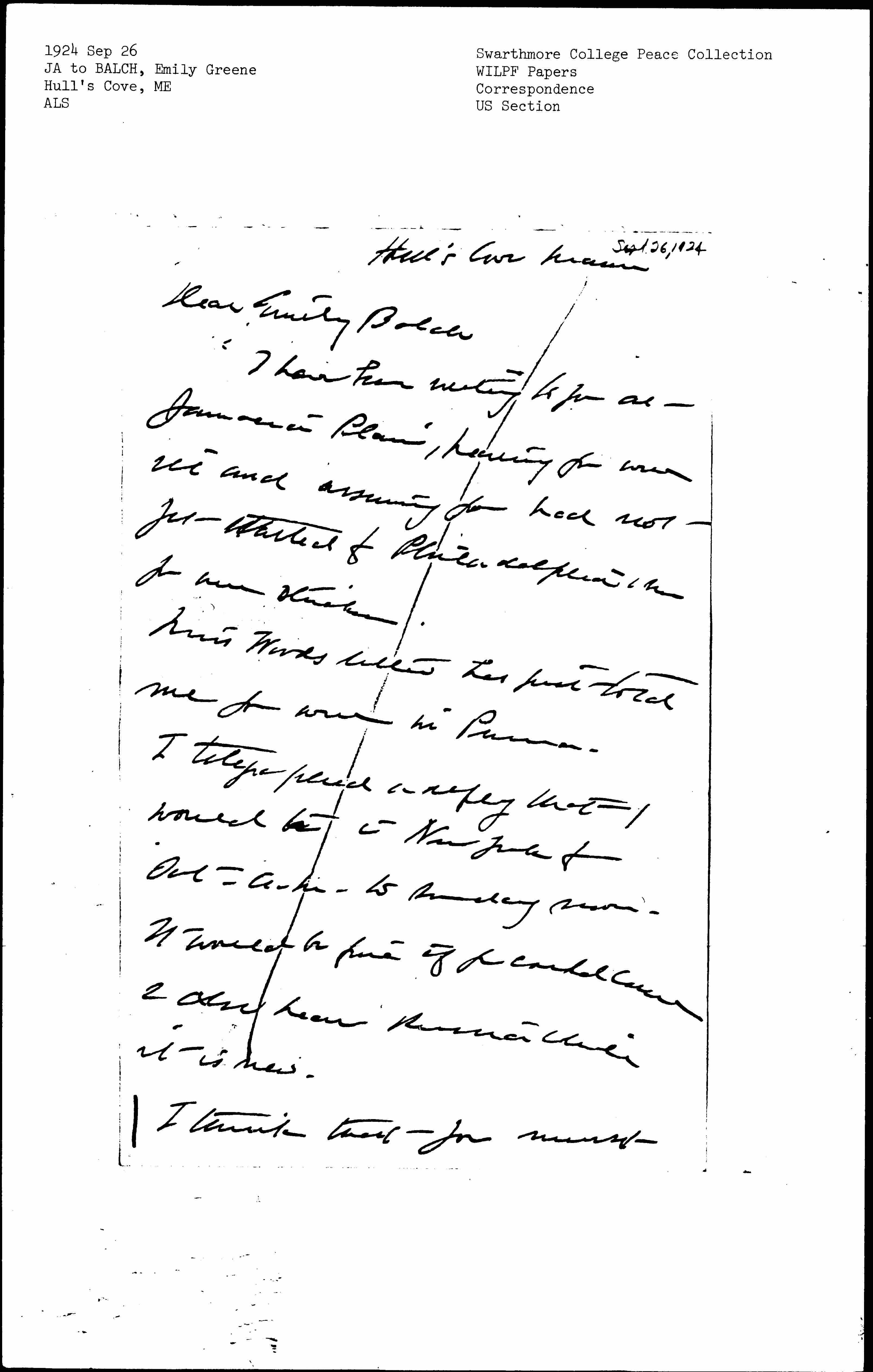 Sept 26 1924 P.S. Did you get my letter asking your advice about sending $500 to Geneva for Oct? Should we send it? J. A.