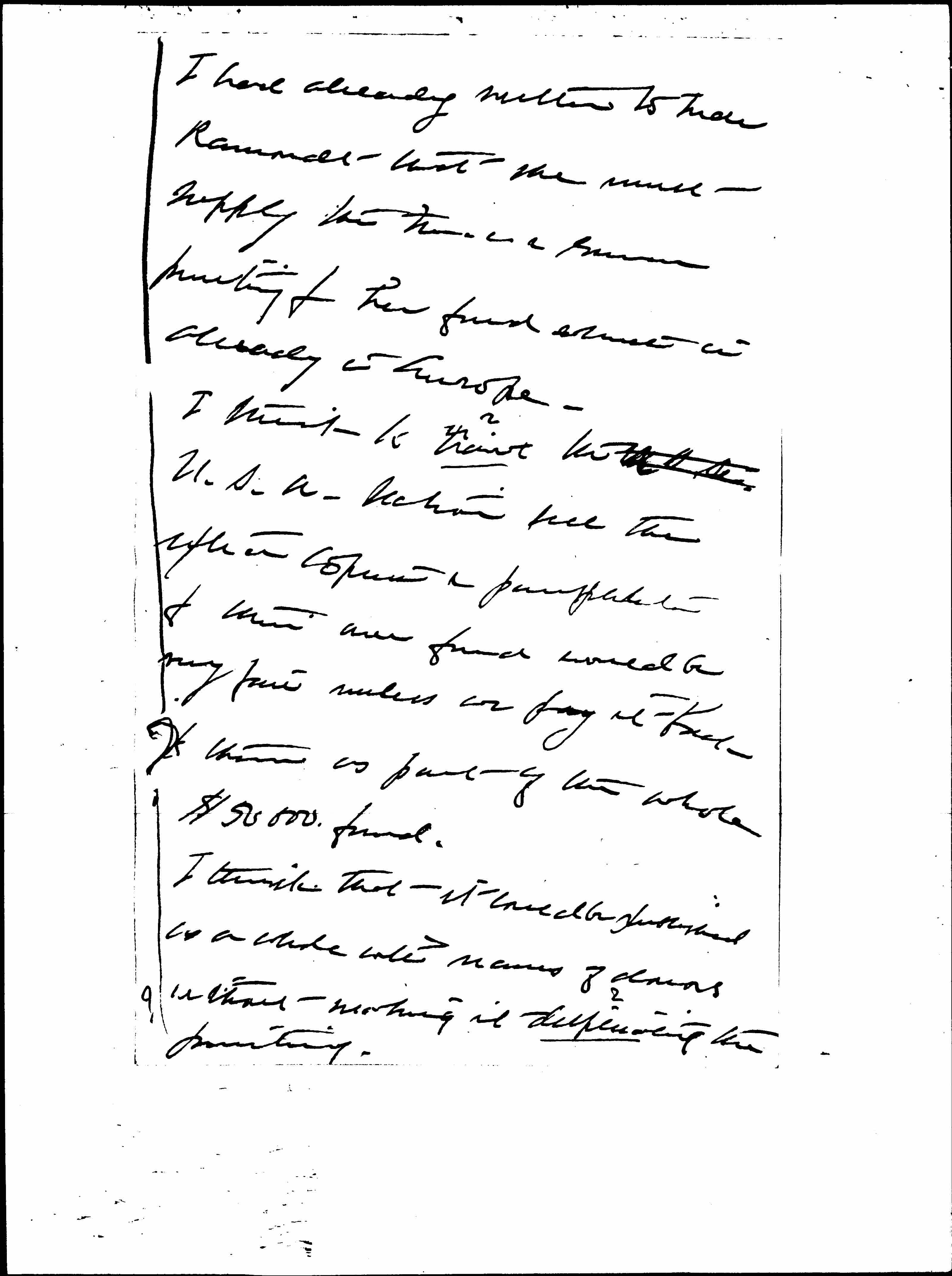 I think to [have] the U.S.A. U.S.A. Section sell the extra copies & pamphlets from their own fund would be very fair unless we pay it back [from?] them as part of the whole $50,000 fund.