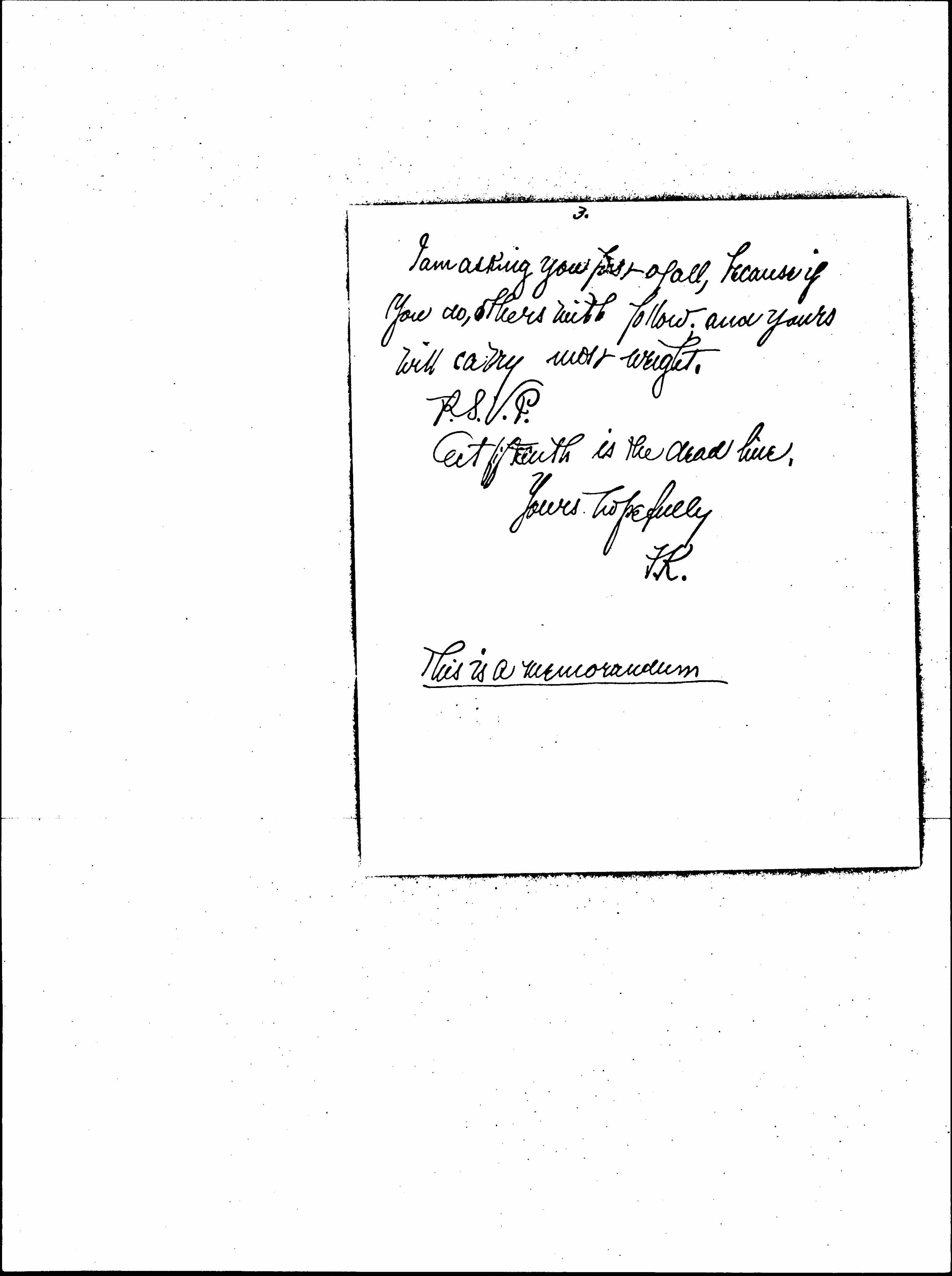 I am asking you first of all, because if you do, others will follow; and yours will carry most weight.R.S.V.P.