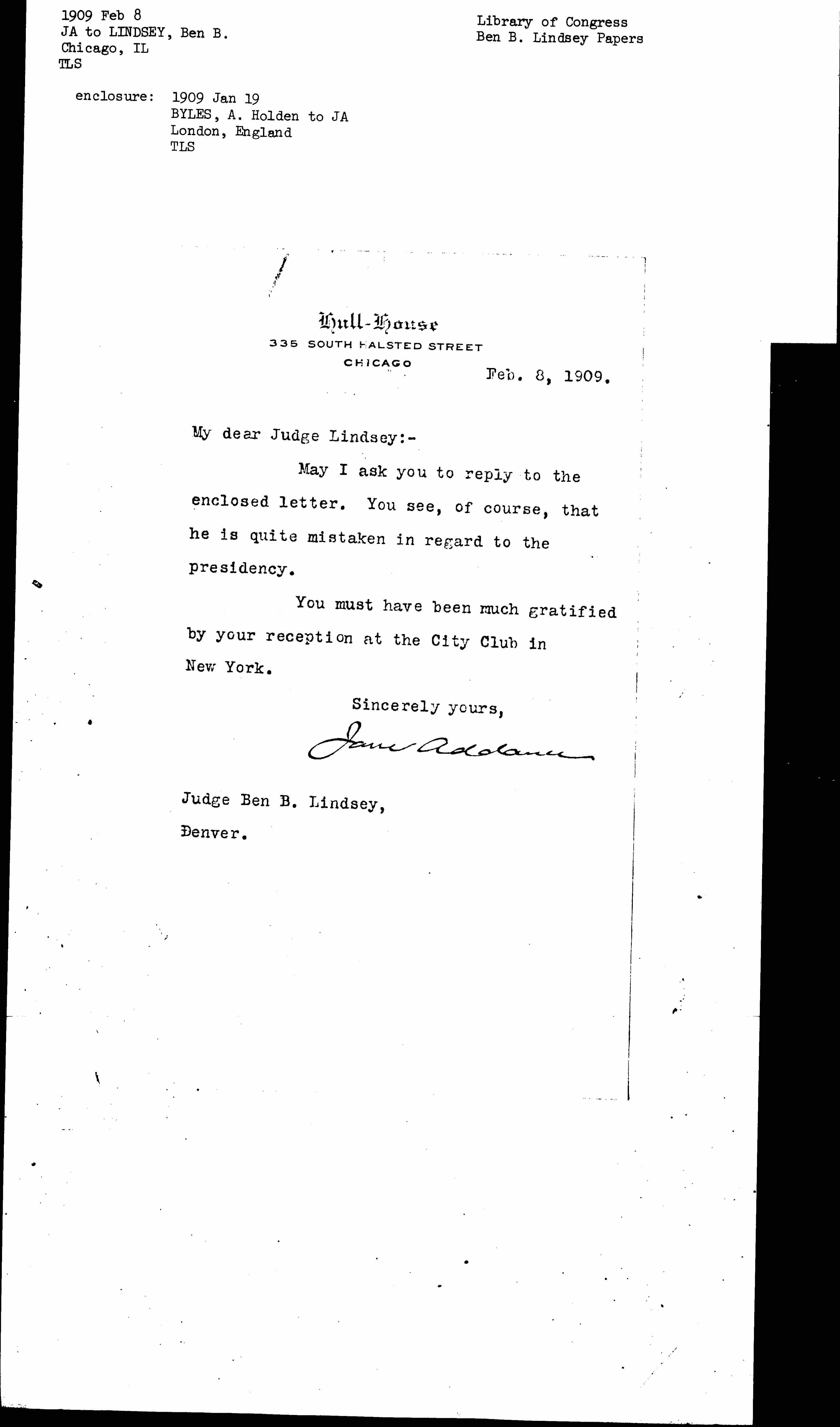 May I ask you to reply to the enclosed letter. You see, of course, that he is quite mistaken in regard to the presidency.