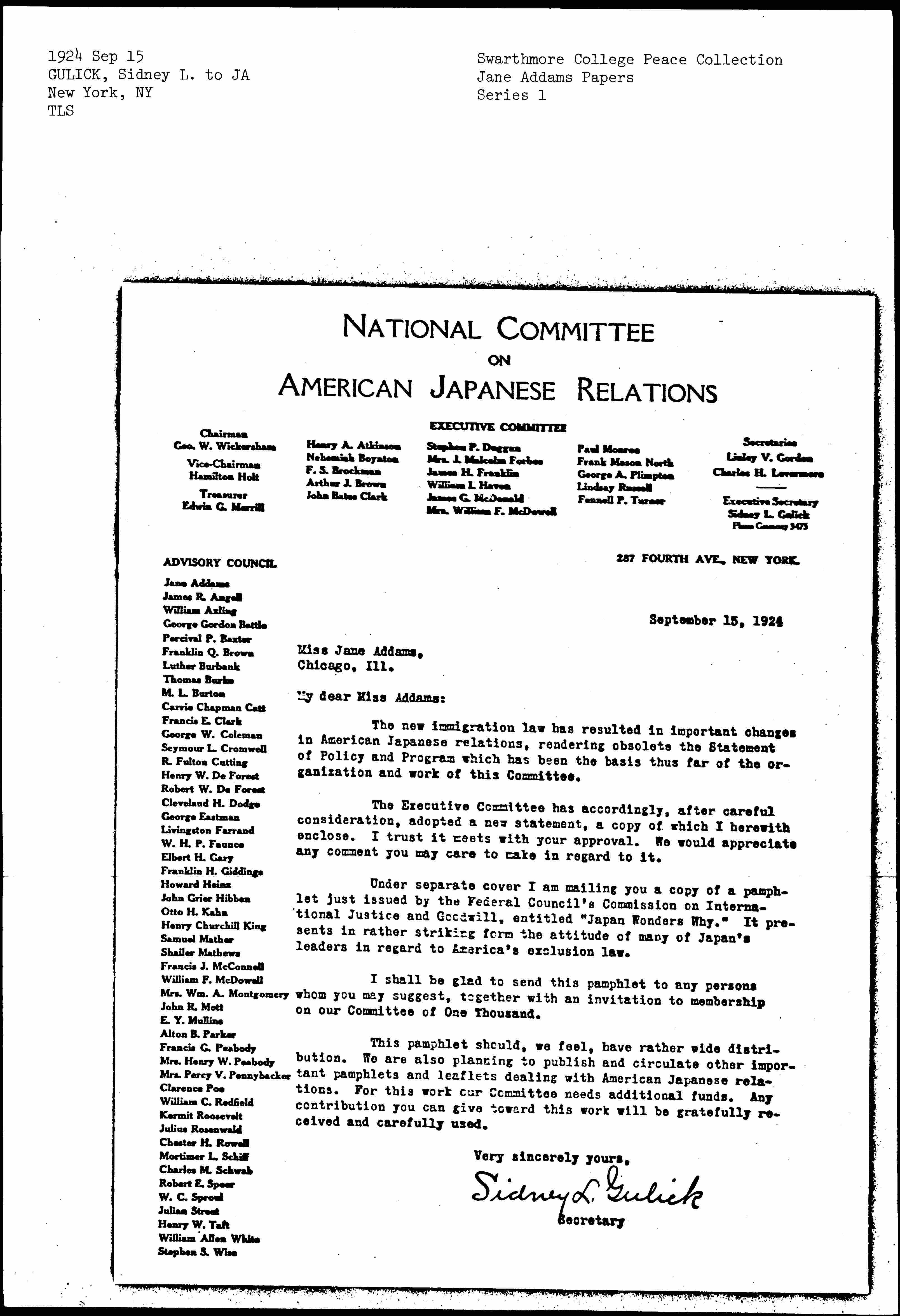 This pamphlet should, we feel, have rather wide distribution. We are also planning to publish and circulate other important pamphlets and leaflets dealing with American Japanese relations. For this work our Committee needs additional funds. Any contribution you can give toward this work will be gratefully received and carefully used.
