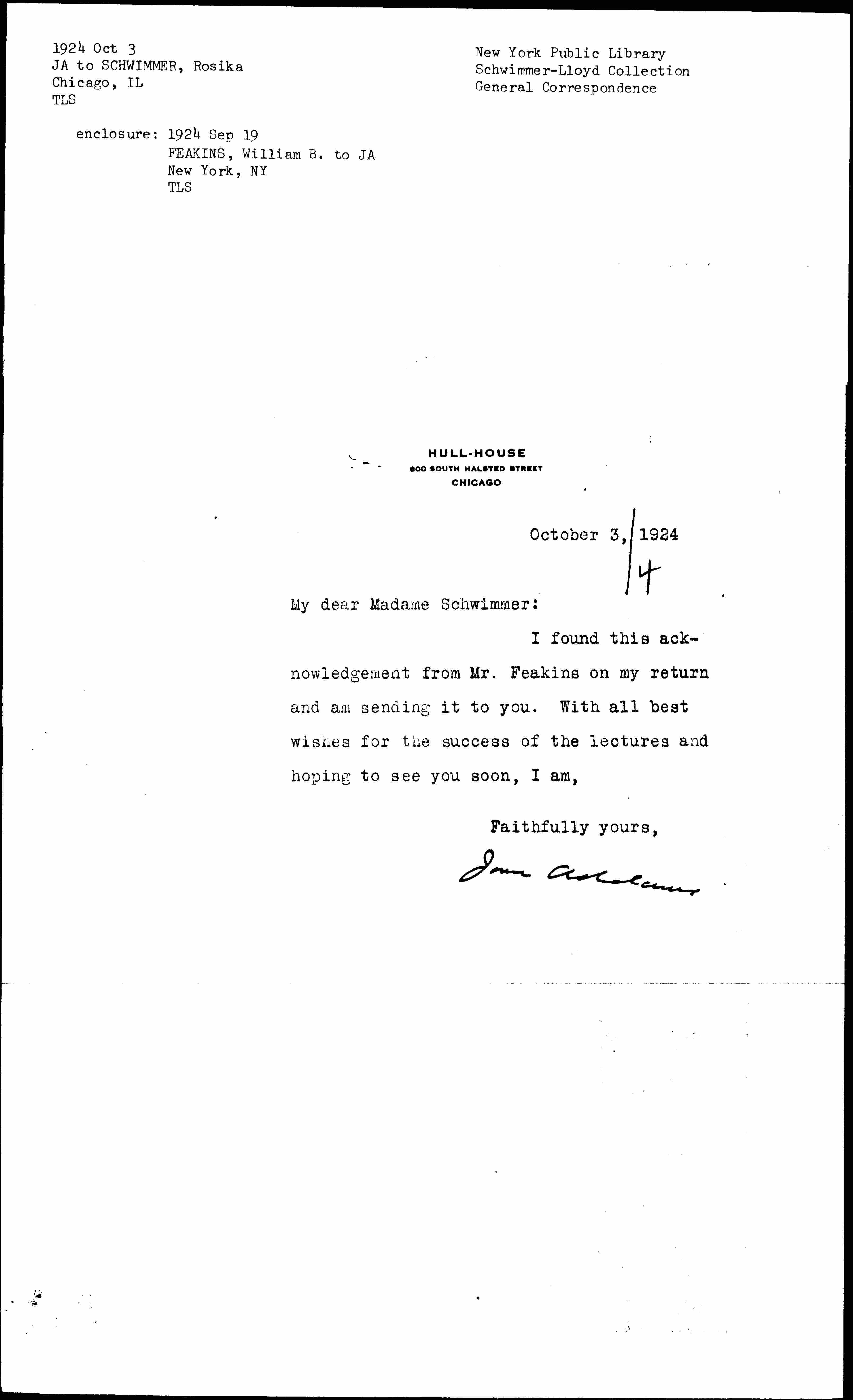 Jane Addams [signed]
