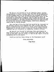 The cause of the whole trouble is the fact that the Entente-powers have left Hungary a powerful army of 200,000 men (while the neighboring Austria is disarmed to 30,000) so as to have an imperialism and capitalistic hold on the frontier of Russia. The militarists in Hungary have become so powerful and cause continued trouble by working for the return of the monarchy in their country and Austria. Now the working-classes of Austria are strong enough to hold their own against the monarchists at home, but if they are attacked by brute force of a larger army there is a danger of the political freedom of our revolution (which was attained without bloodshed) being trodden down and it might take centuries to gain it again. We stand for “no force of arms” in any case, but if things come to the worst, we shall lose very many of our adherents and friends and it lies very much in the interest of pacifism in the whole world, that the moral losses which we suffer by our faith to pacifism should not be so great. [page 2]