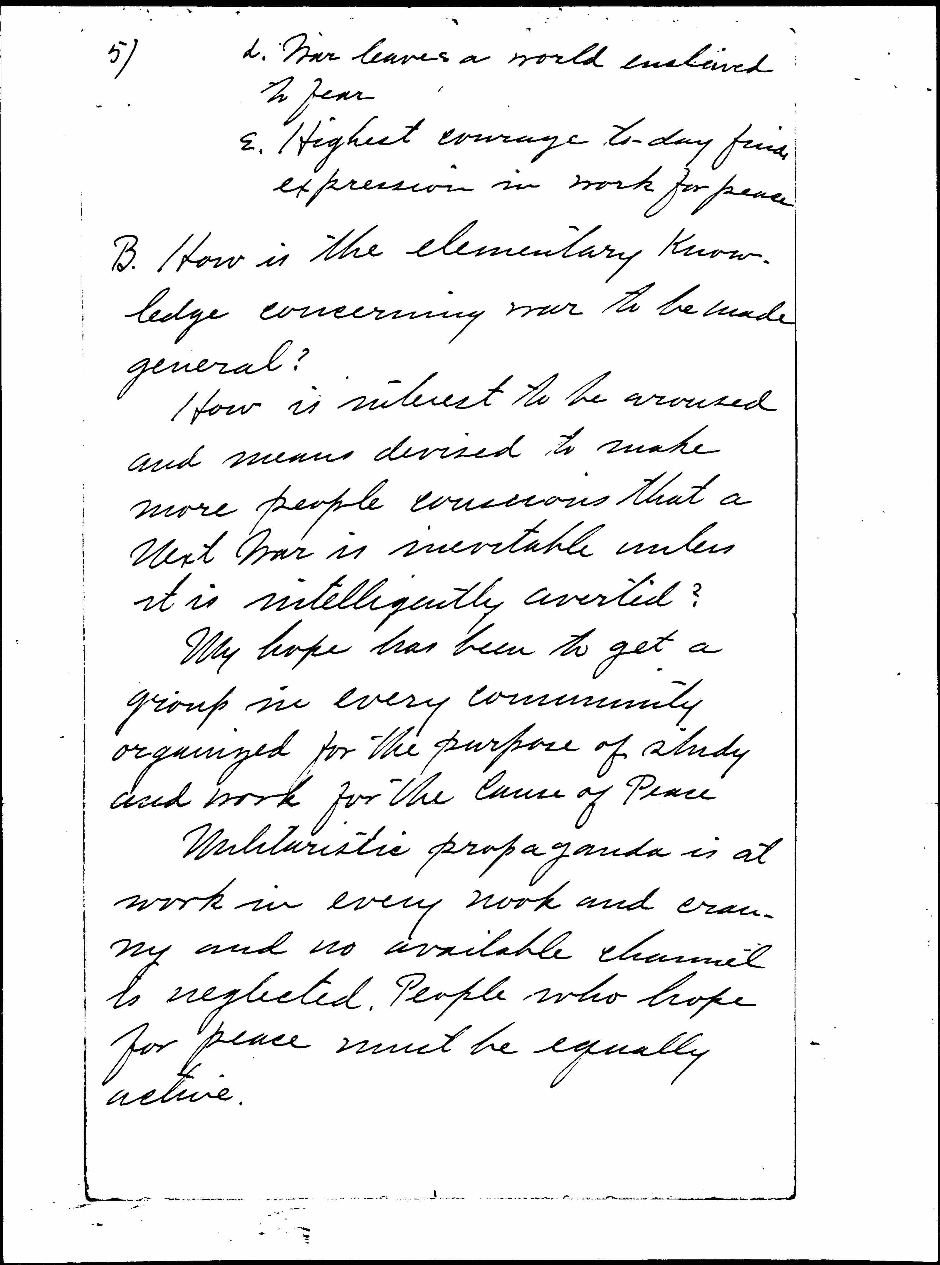 II. Struggle to avoid next war must be commensurate to the menace