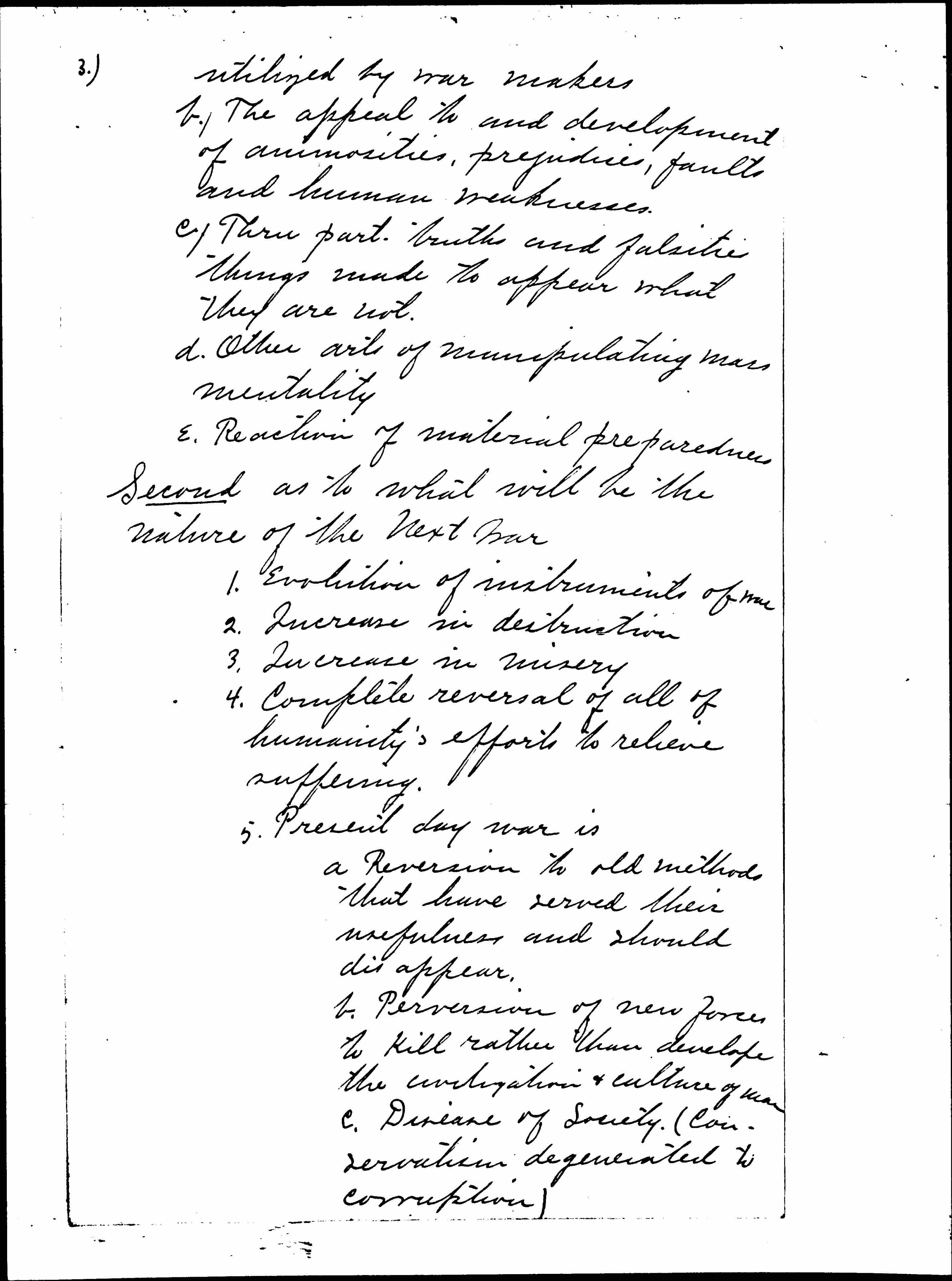 Second as to what will be the nature of the next war
