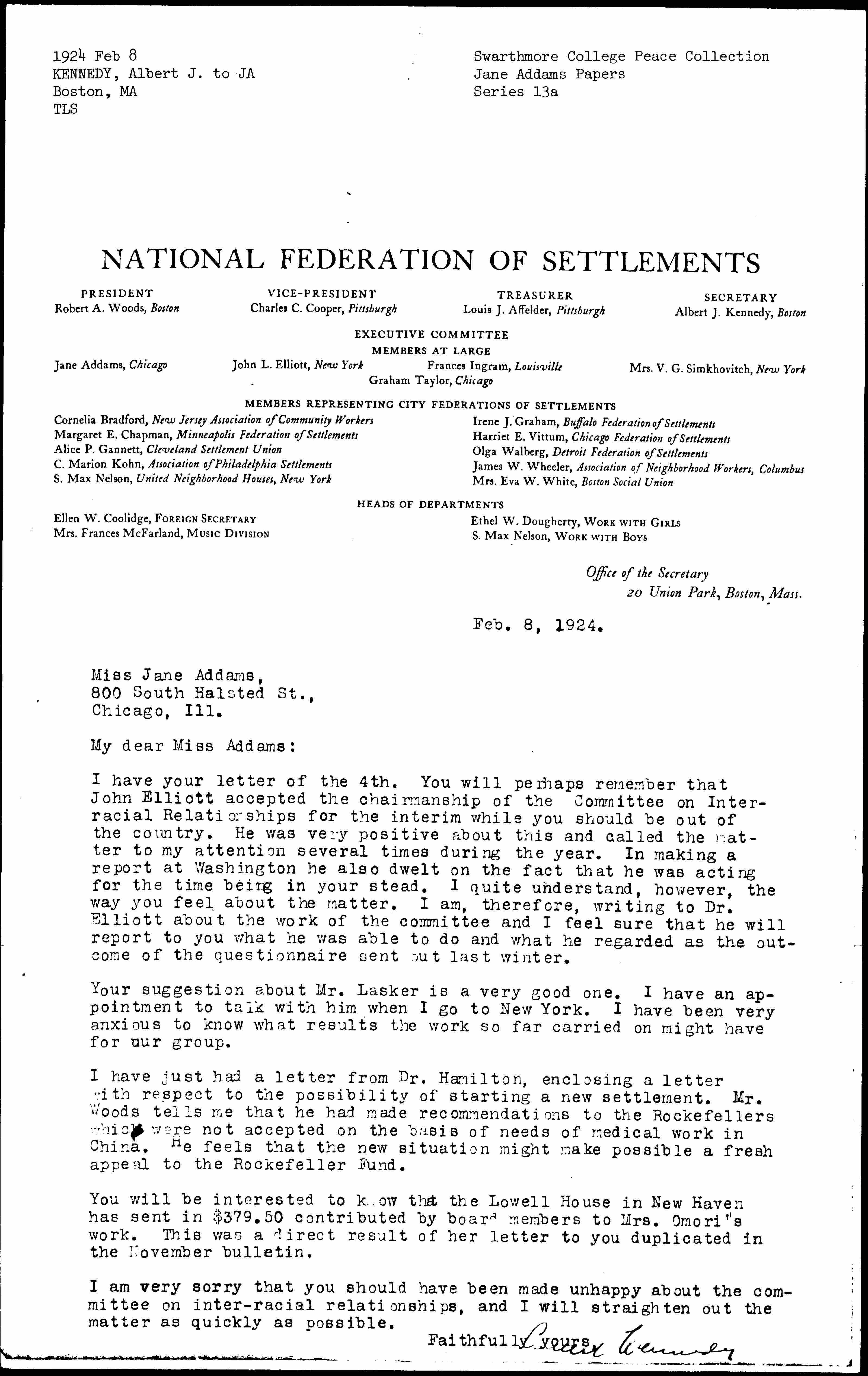 You will be interested to know that the Lowell House in New Haven has sent in $379.50 contributed by board members to Mrs. Omori's work. This was a direct result of her letter to you duplicated in the November bulletin.