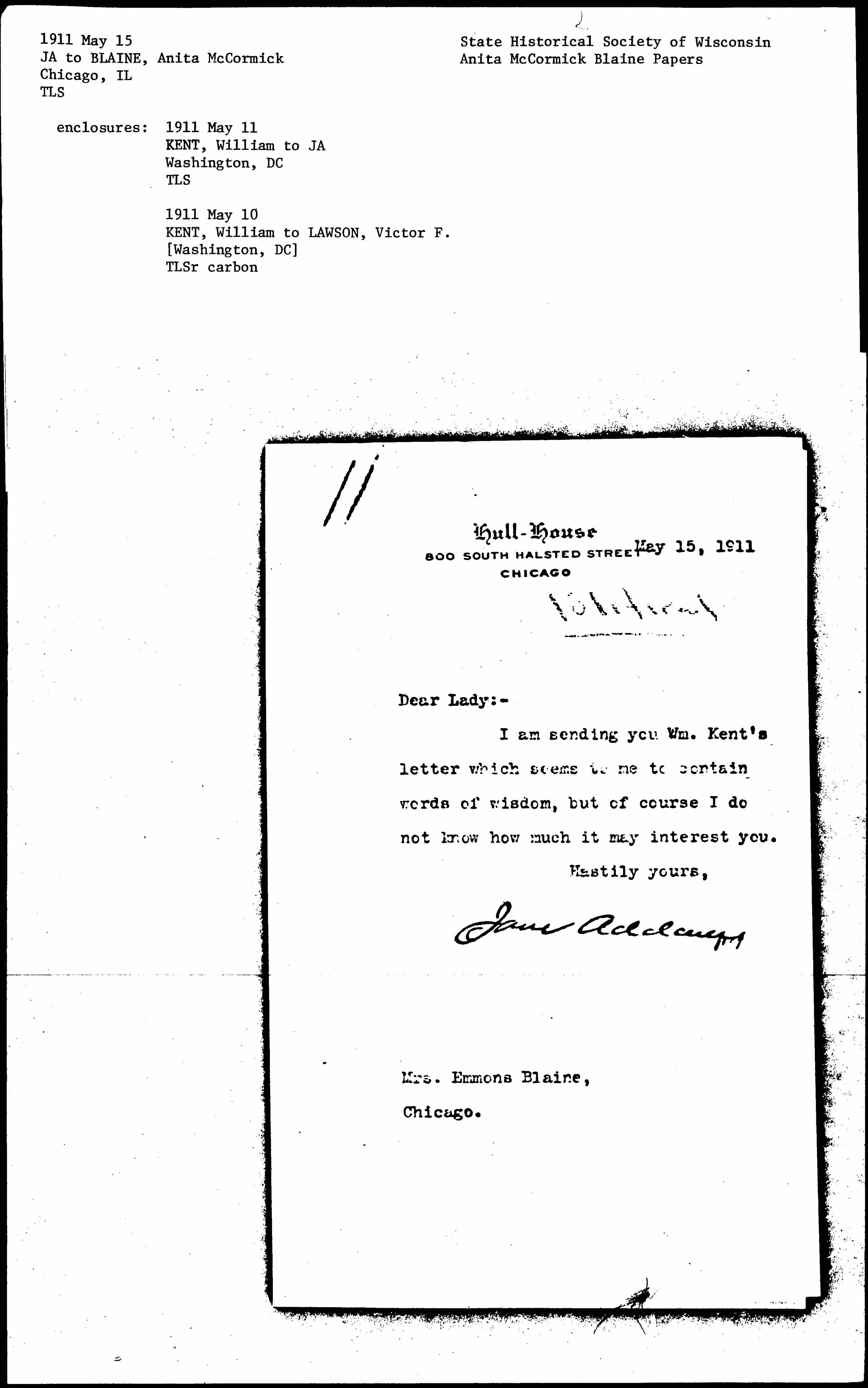 I am sending you Wm. Kent's letter which seems to me to contain words of wisdom, but of course I do not know how much it may interest you.