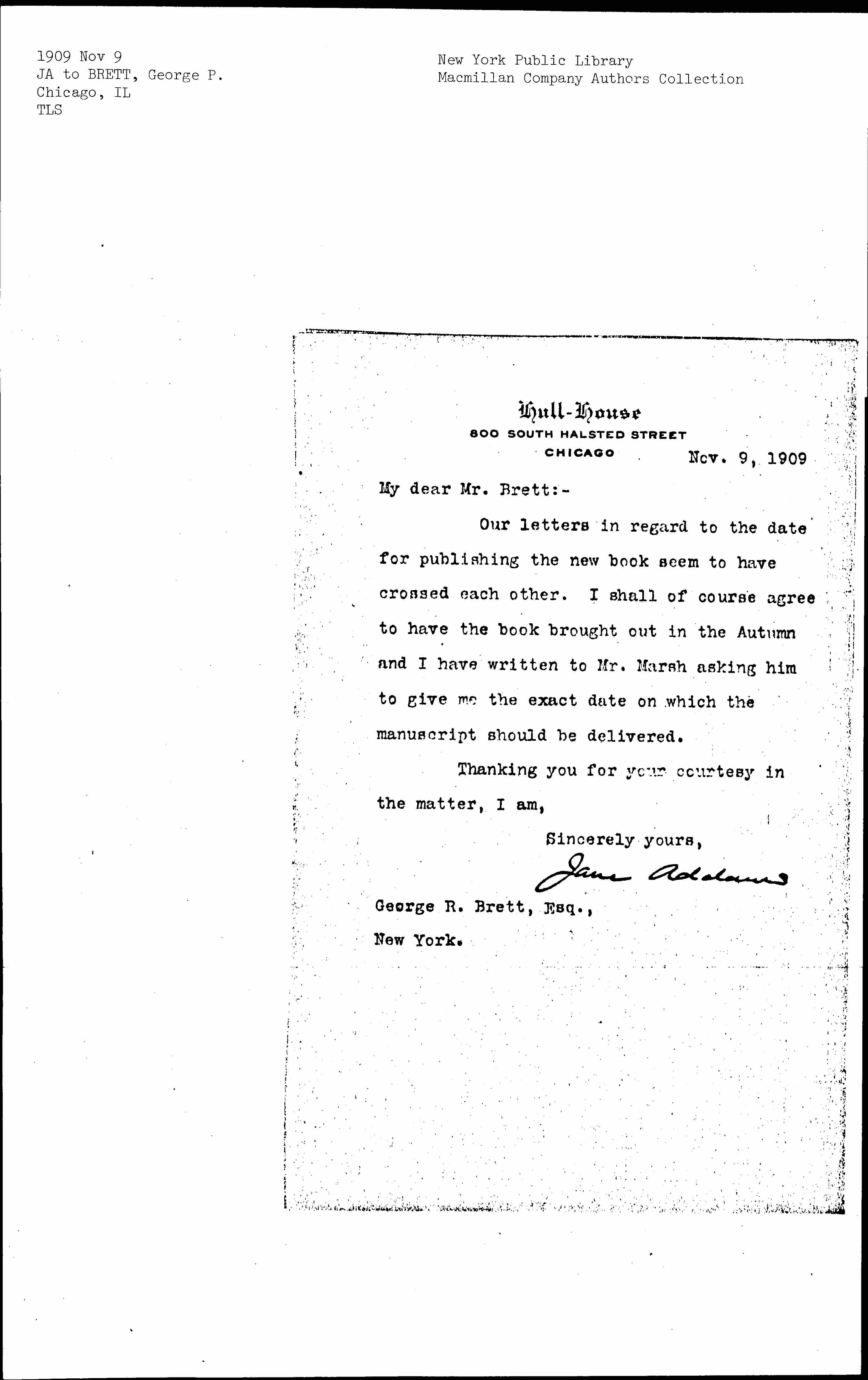 Jane Addams [signed]