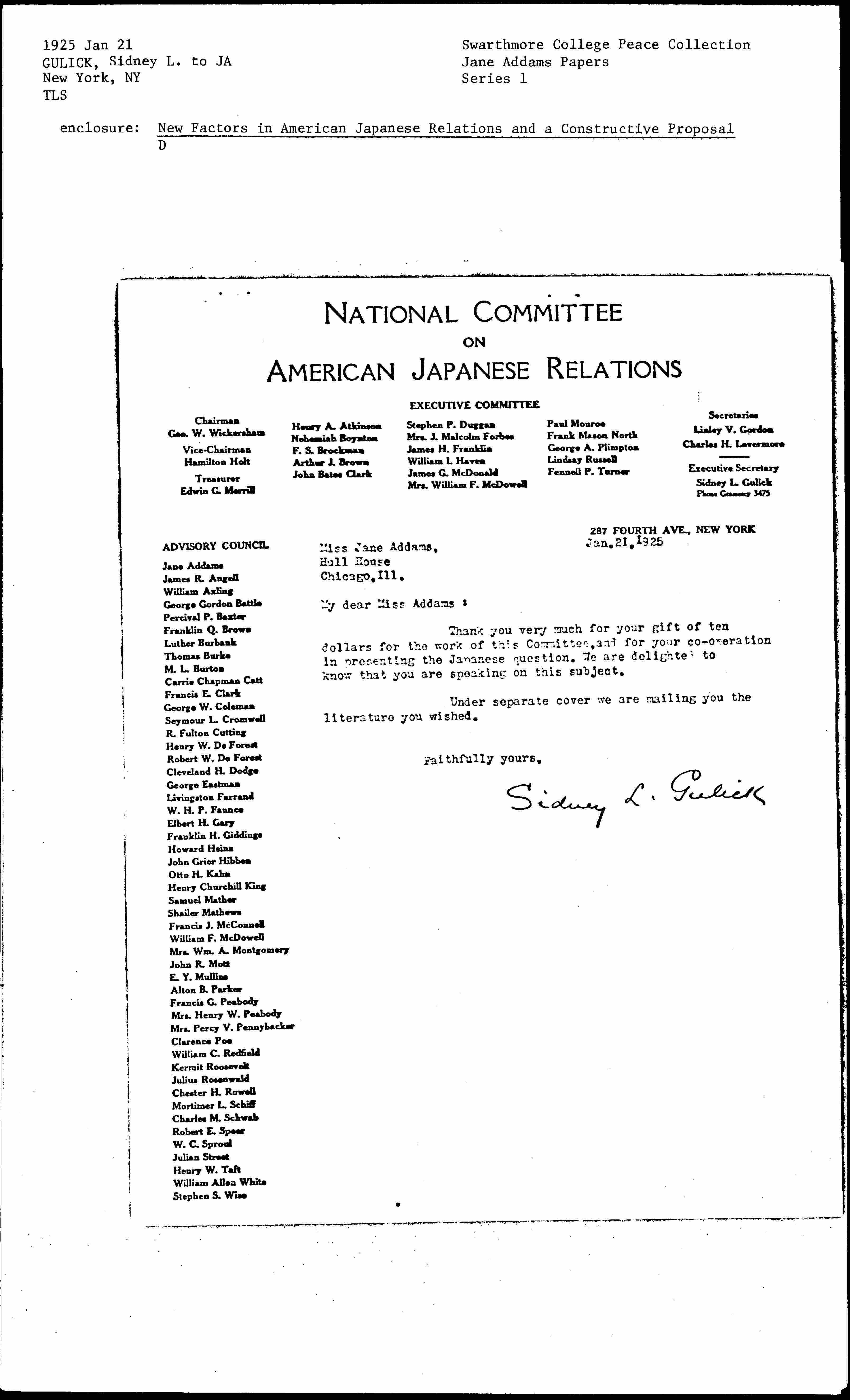 Sydney L. Gulick [signed]