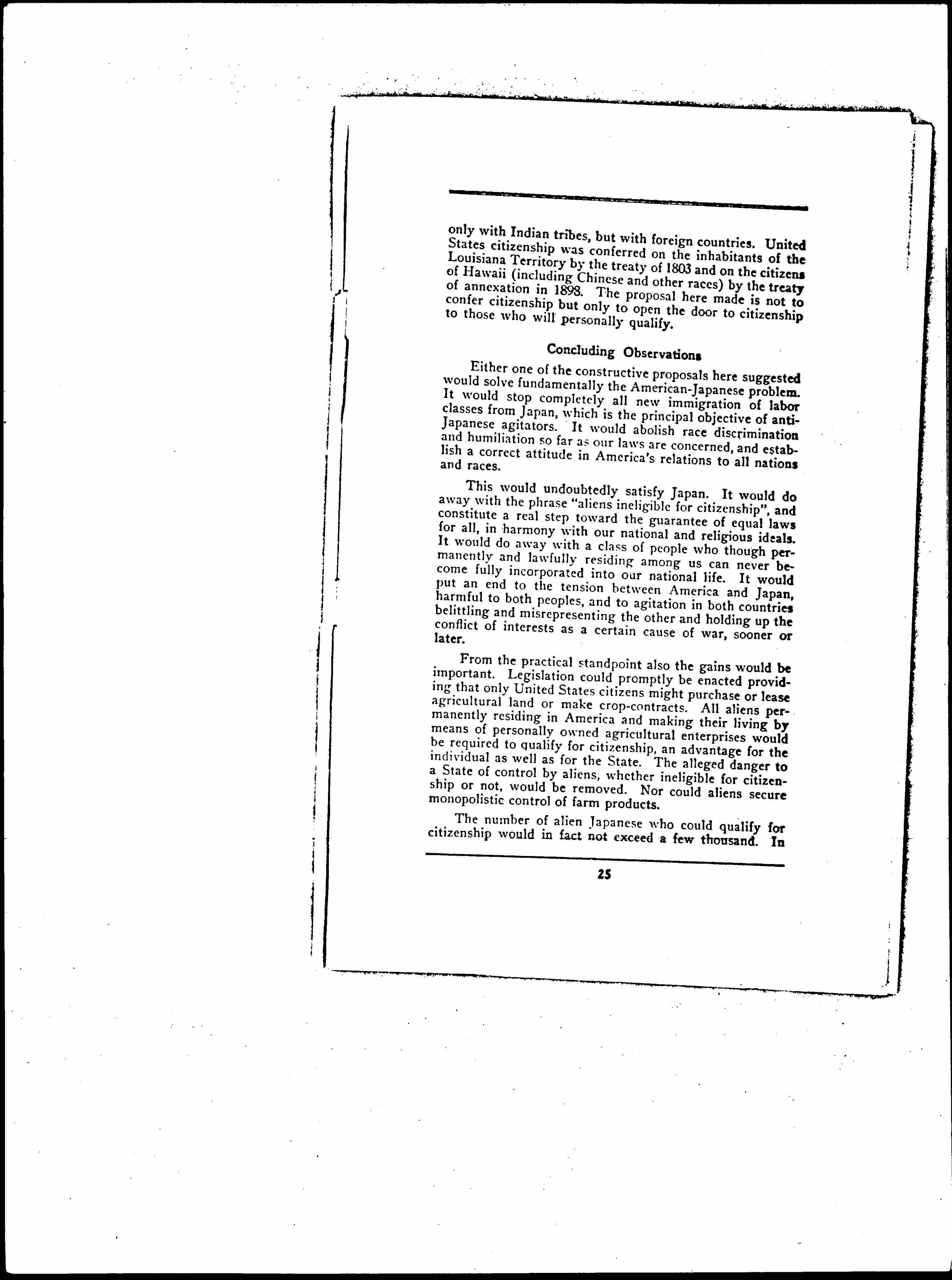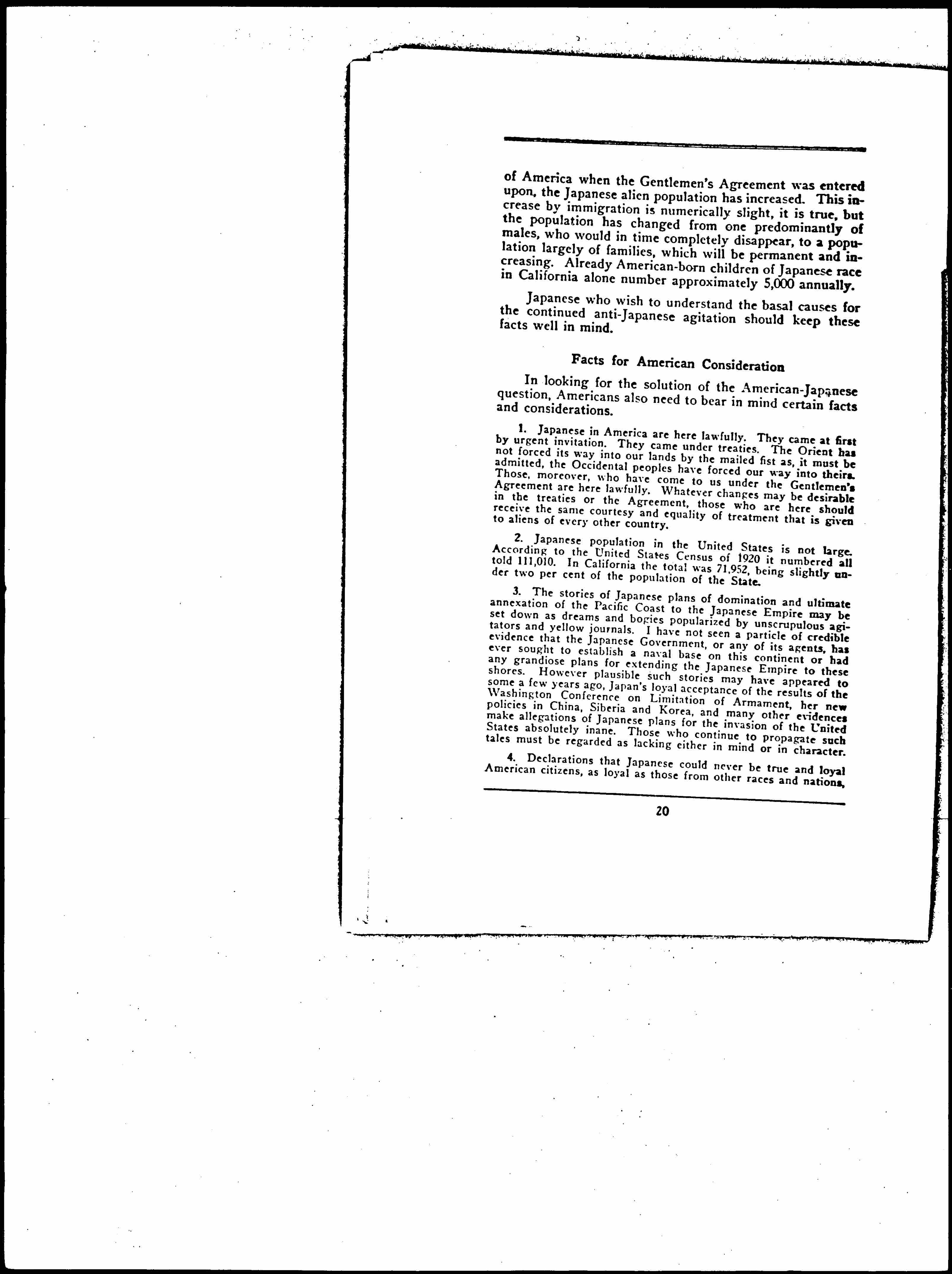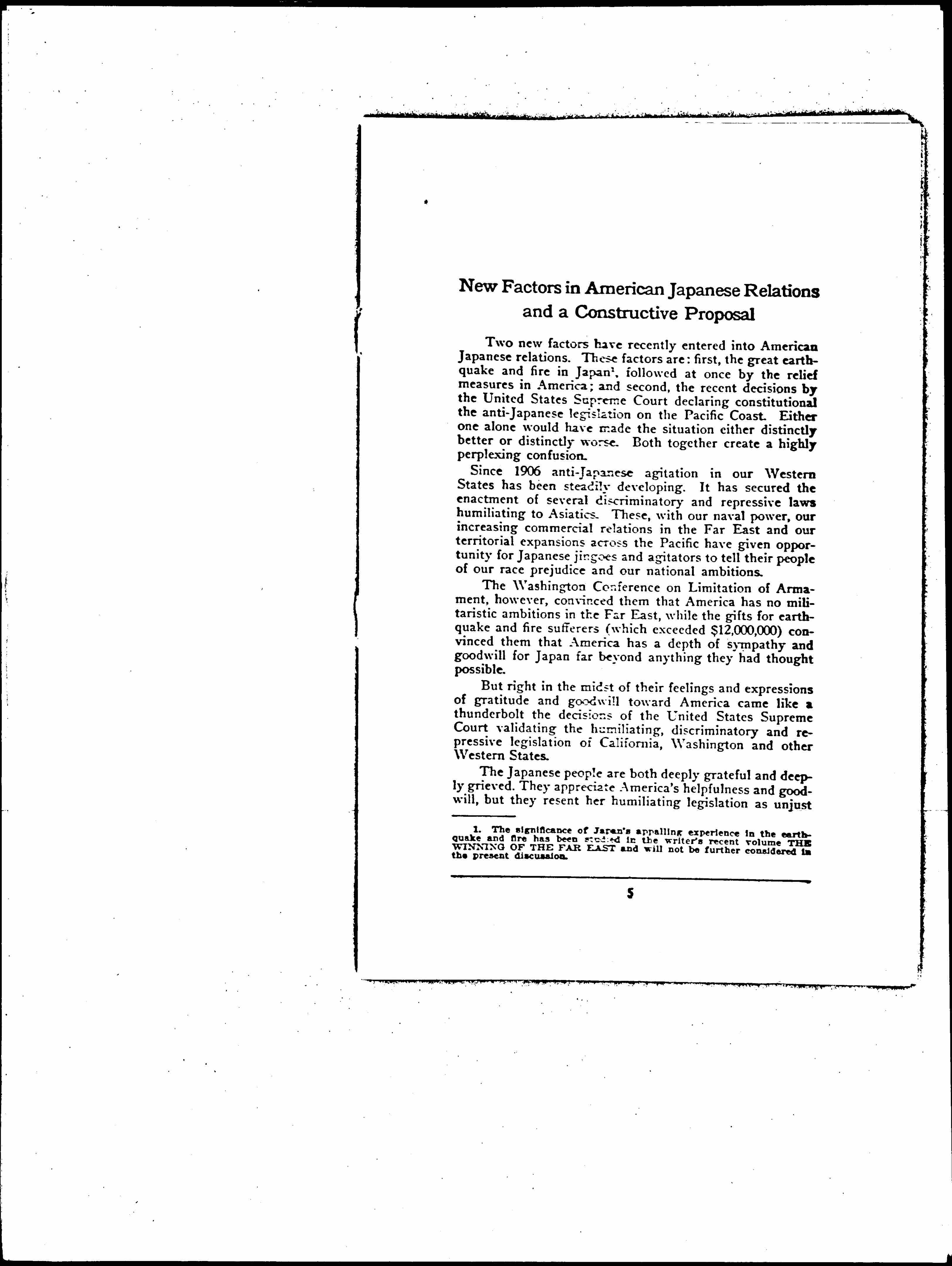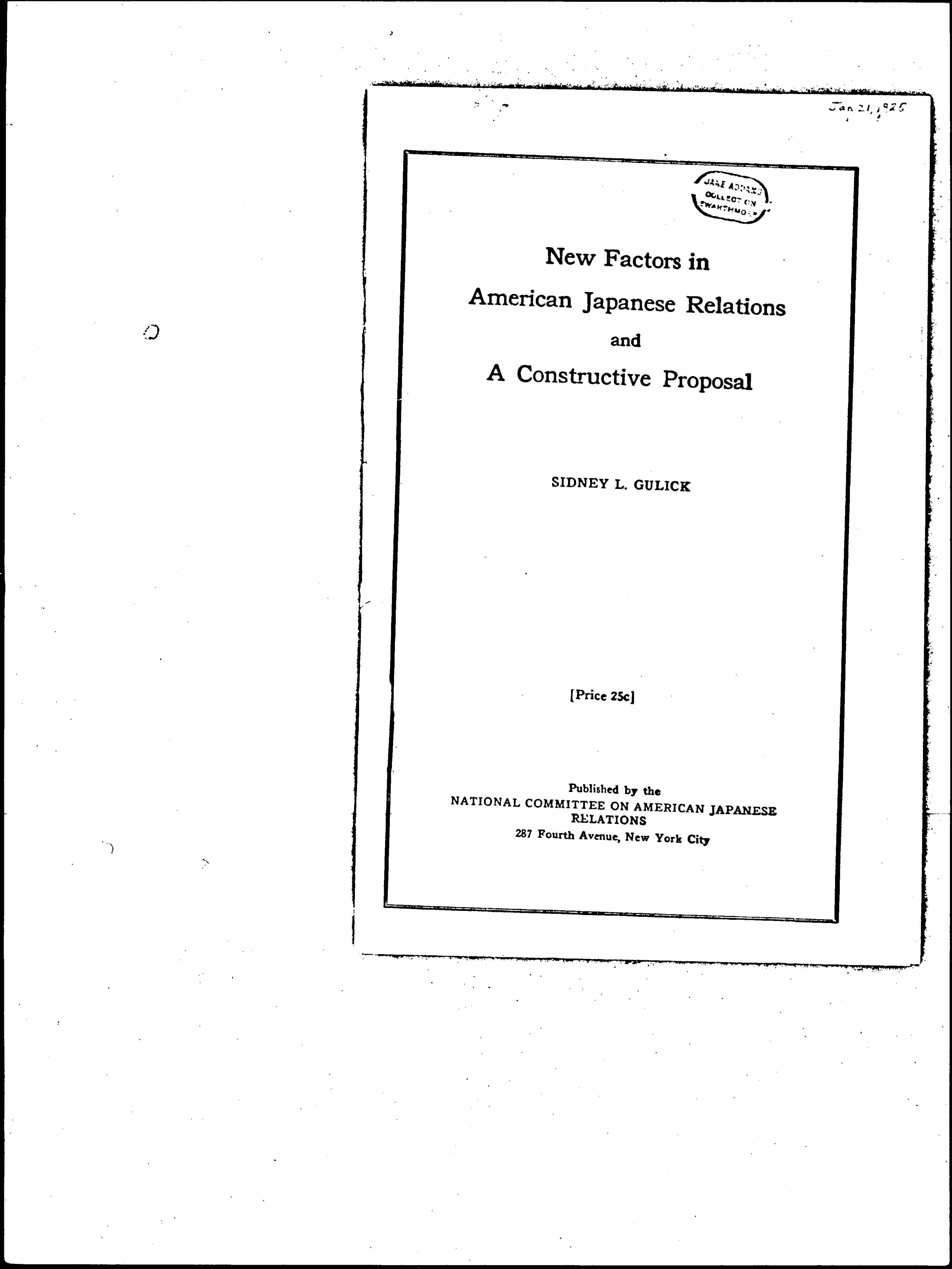 New Factors in American Japanese Relations and a Constructive Proposal, January 21, 1925