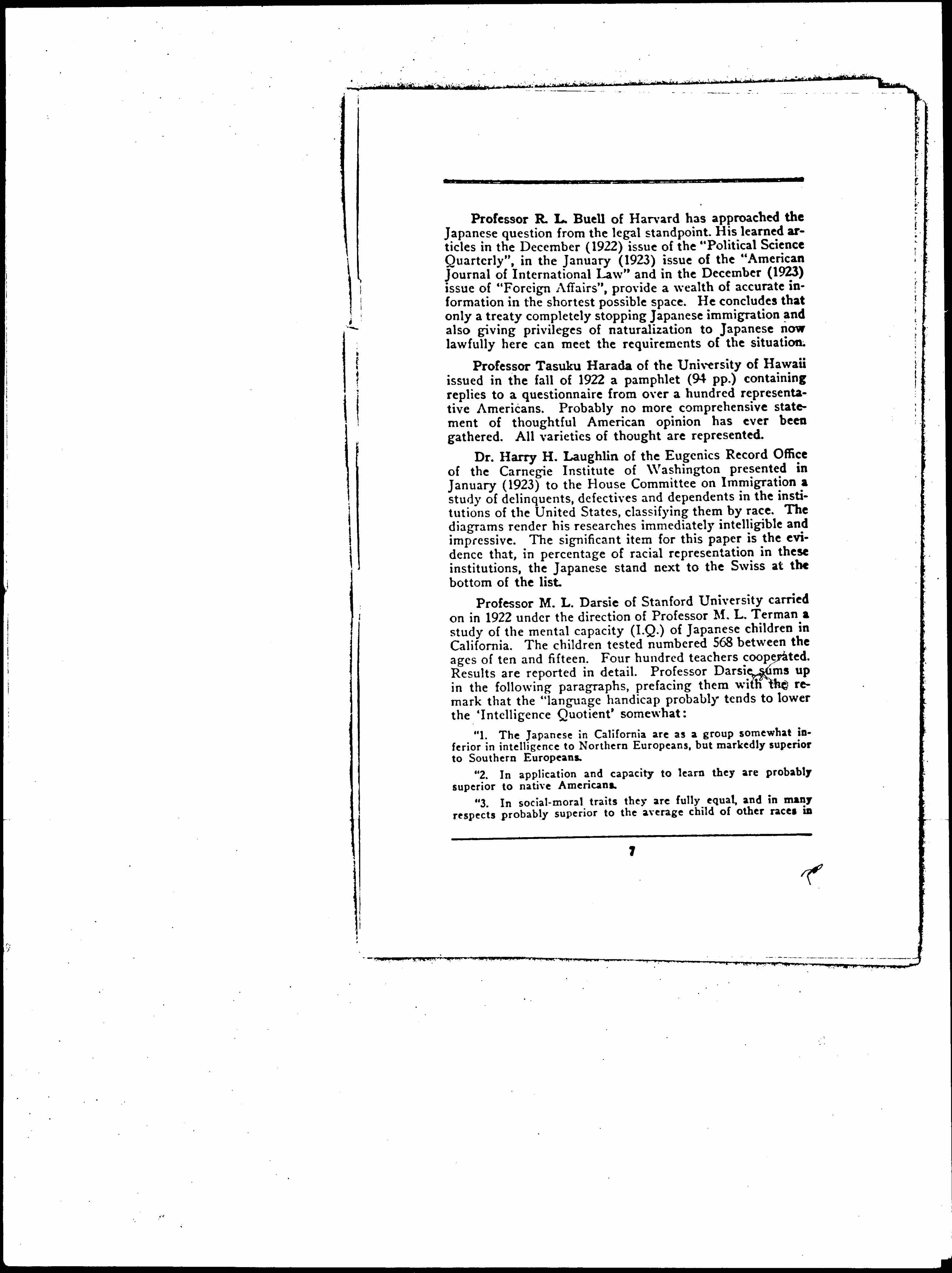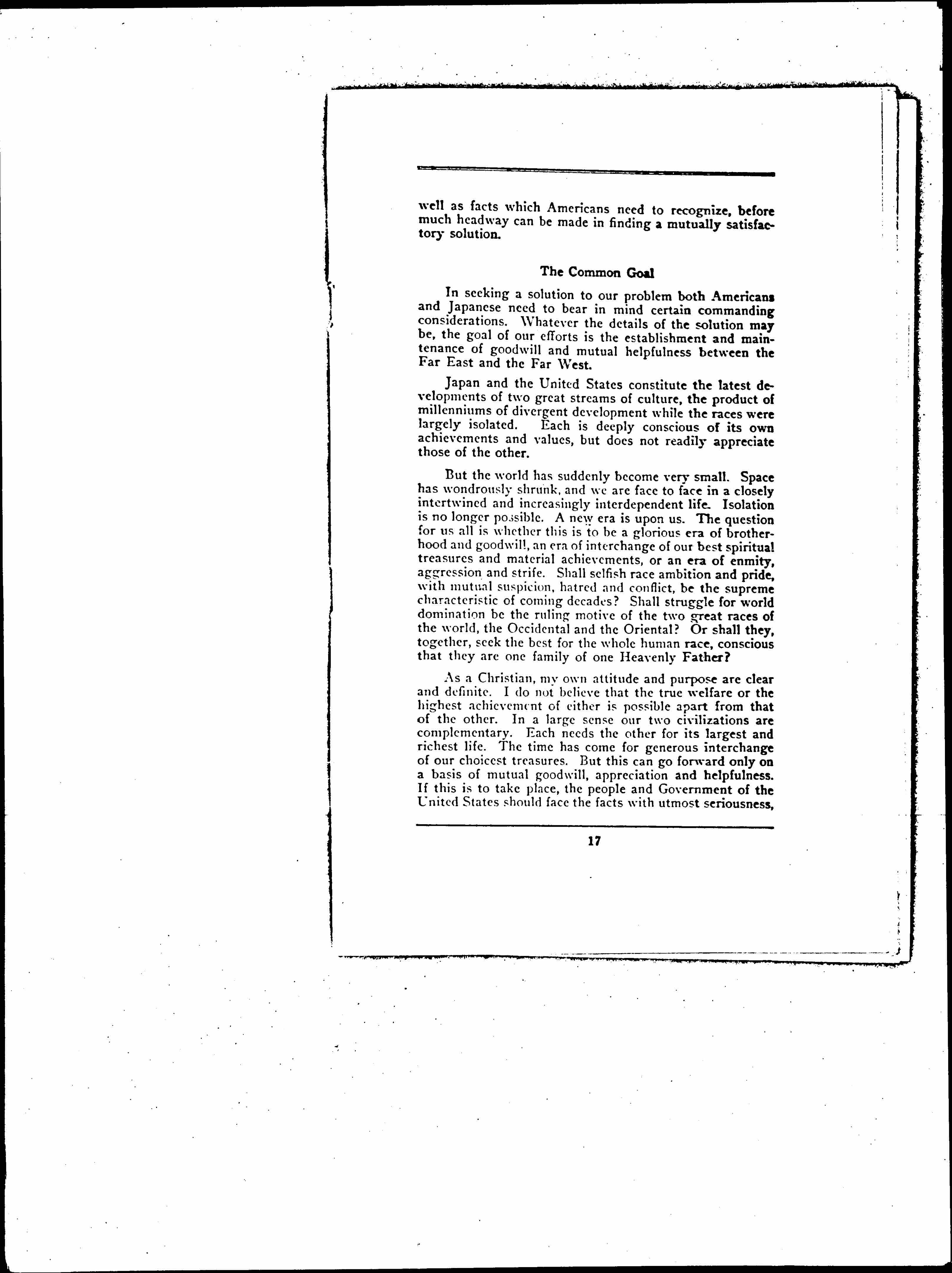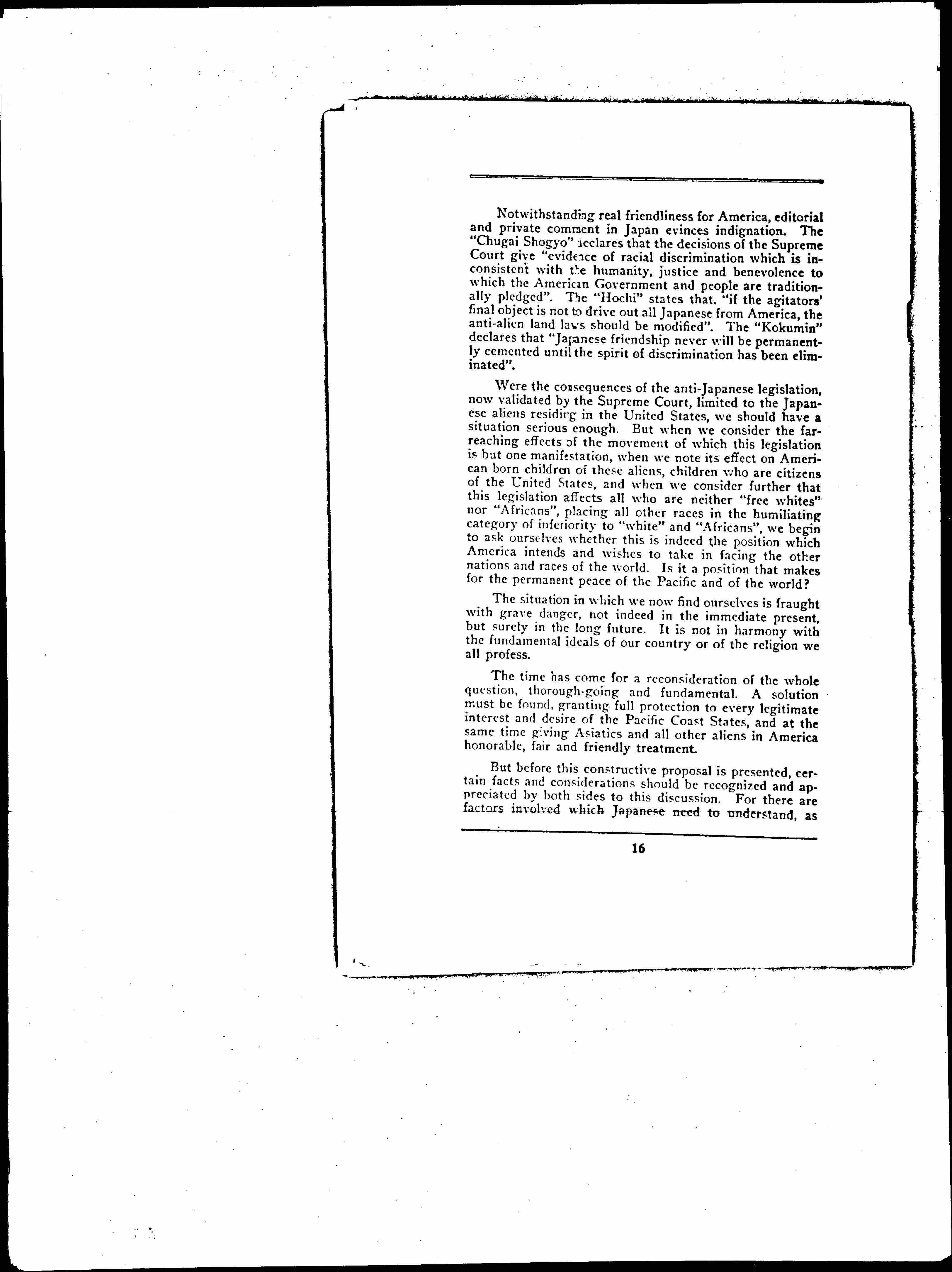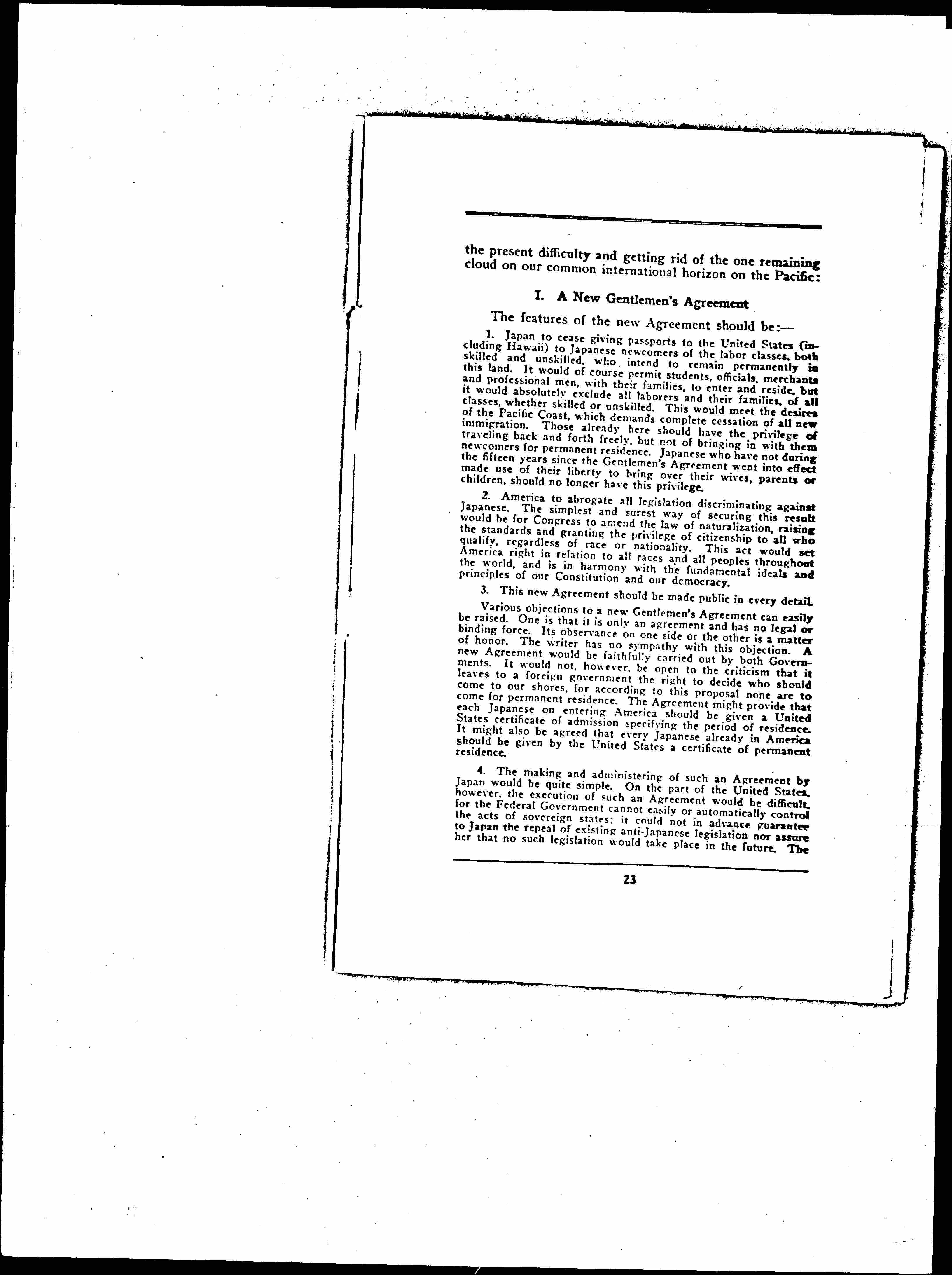 New Factors in American Japanese Relations and a Constructive Proposal, January 21, 1925