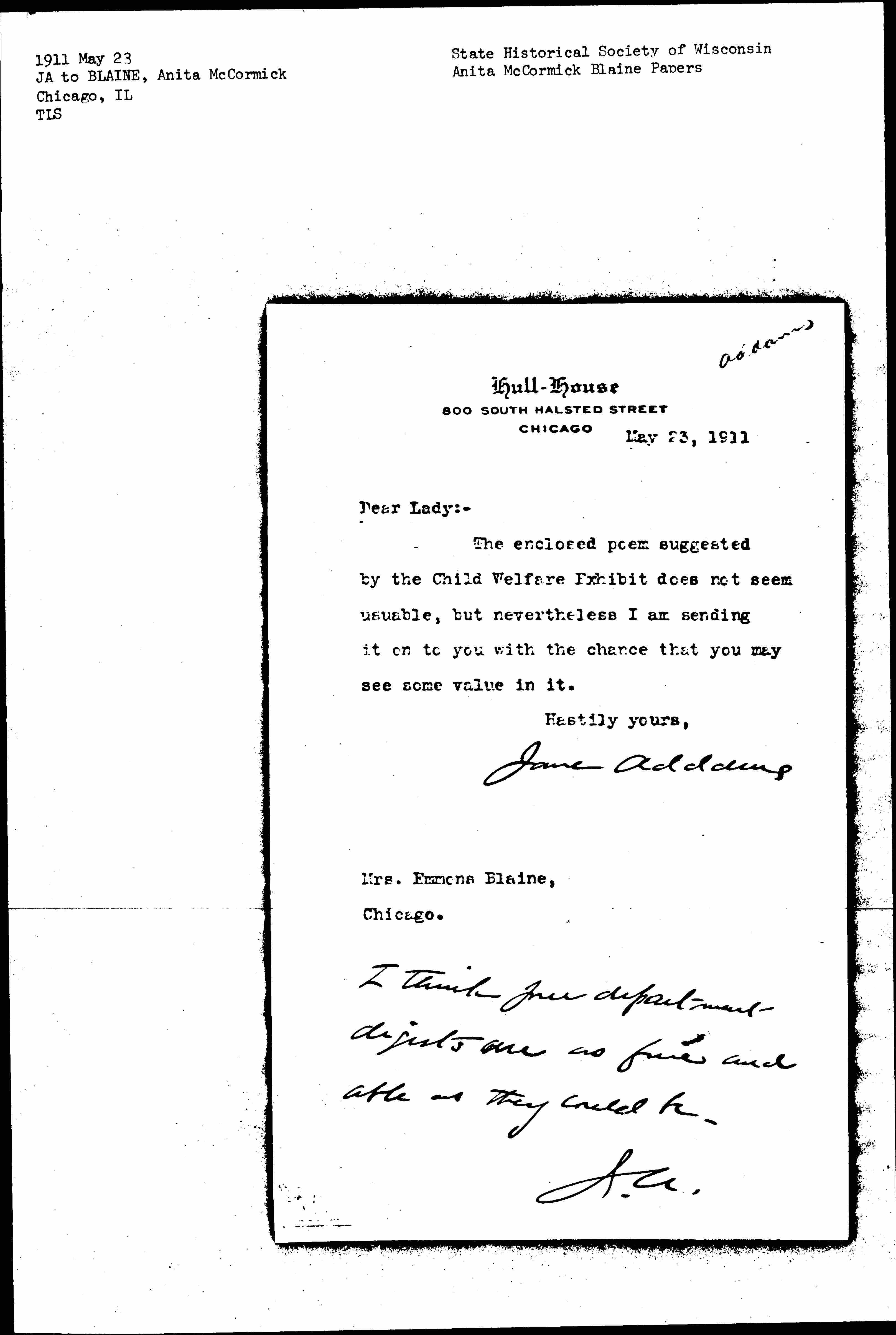 Jane Addams [signed]
