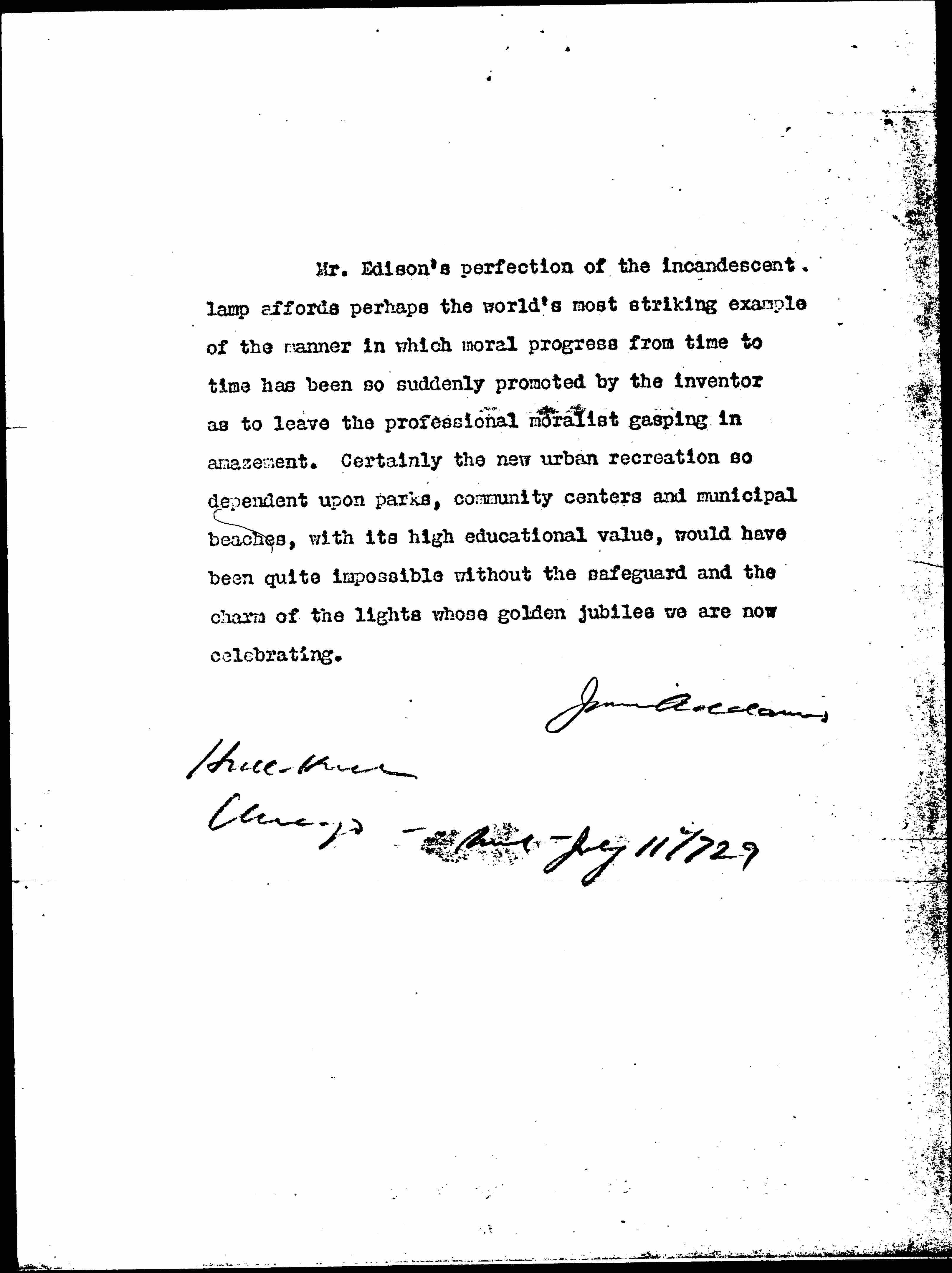Statement on Light's Golden Jubilee, July 11, 1929