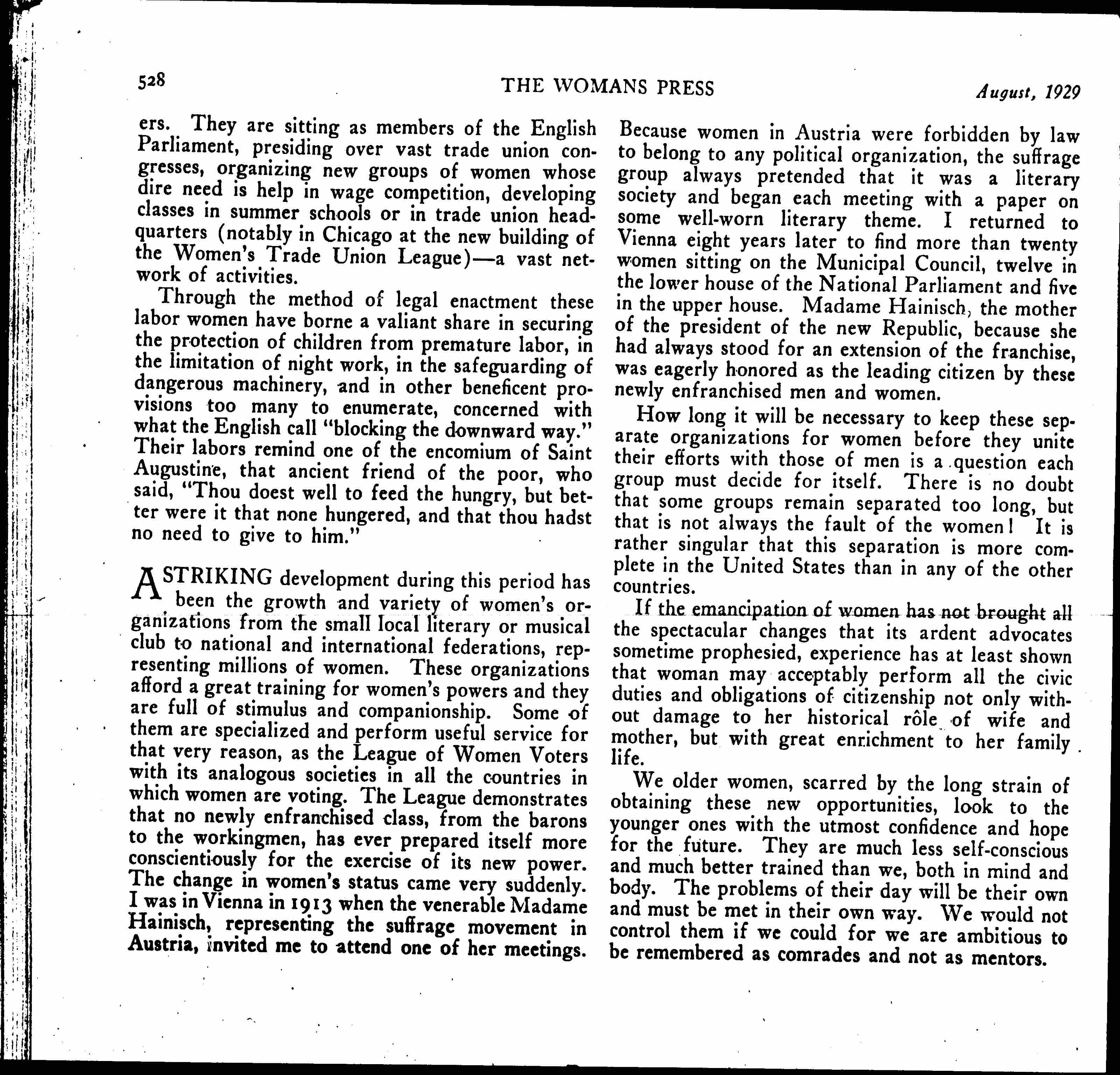 In Recognition of the Leadership of Women, April 10, 1929