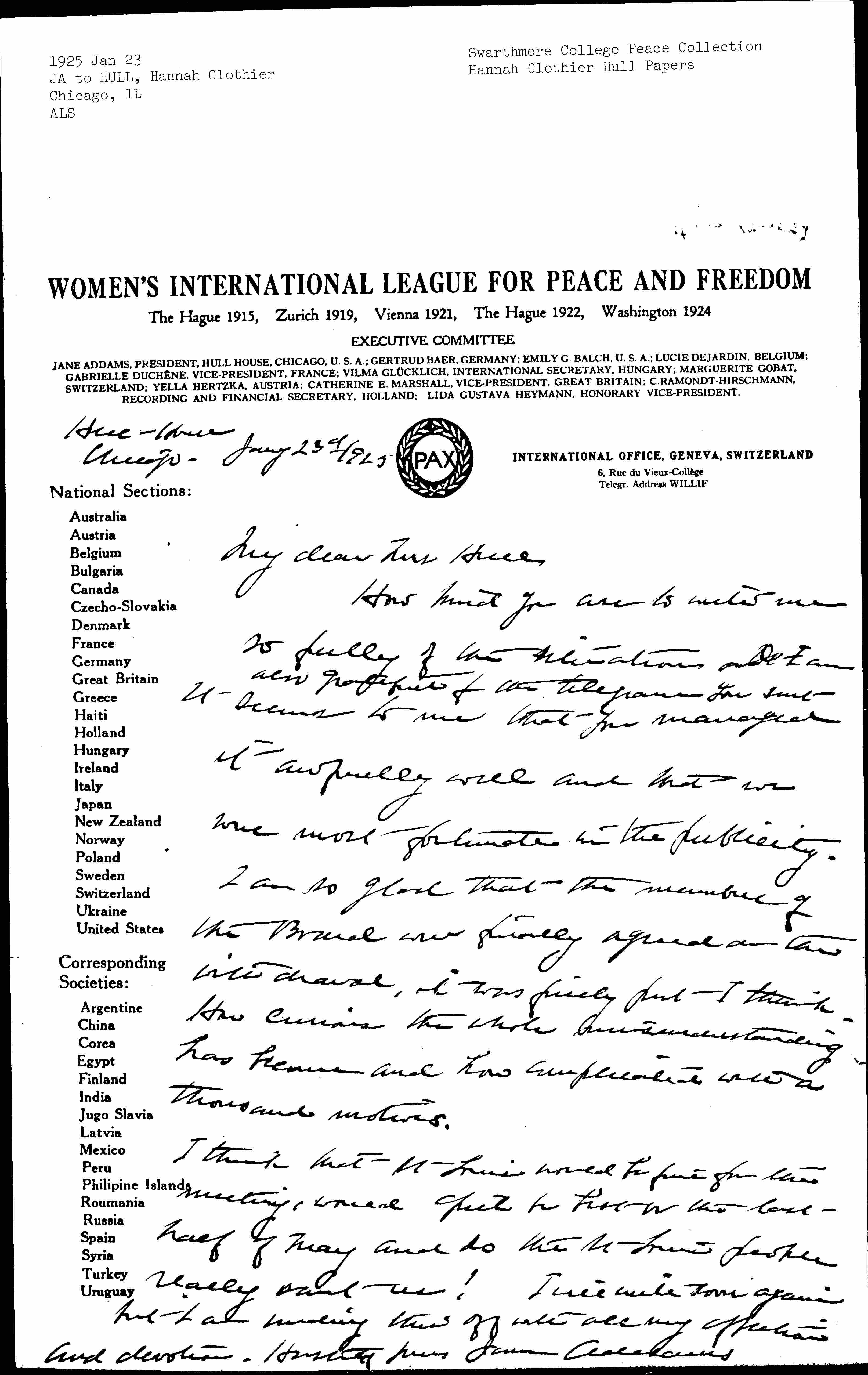I think that St Louis would be fine for the meeting, would April be best or the last half of May and do the St Louis people really want us? I will write more again but I am sending this off with all my affection and devotion. Hastily yours Jane Addams