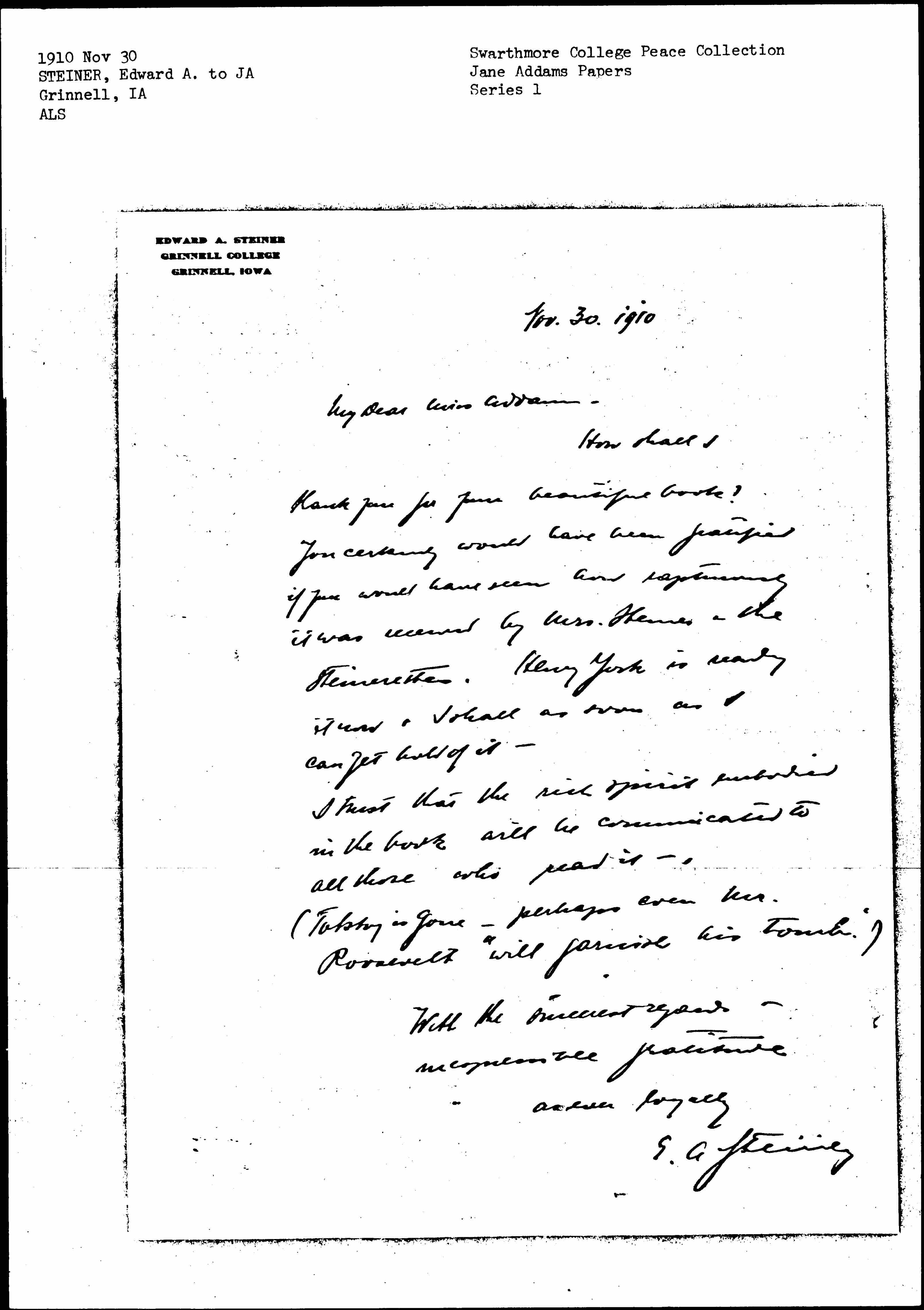 How shall I thank you for your beautiful book? You certainly would have been gratified if you would have seen how rapturously it was received by Mrs. Steiner & the Steinerettes. Henry York is reading it now. I shall as soon as I can get hold of it.