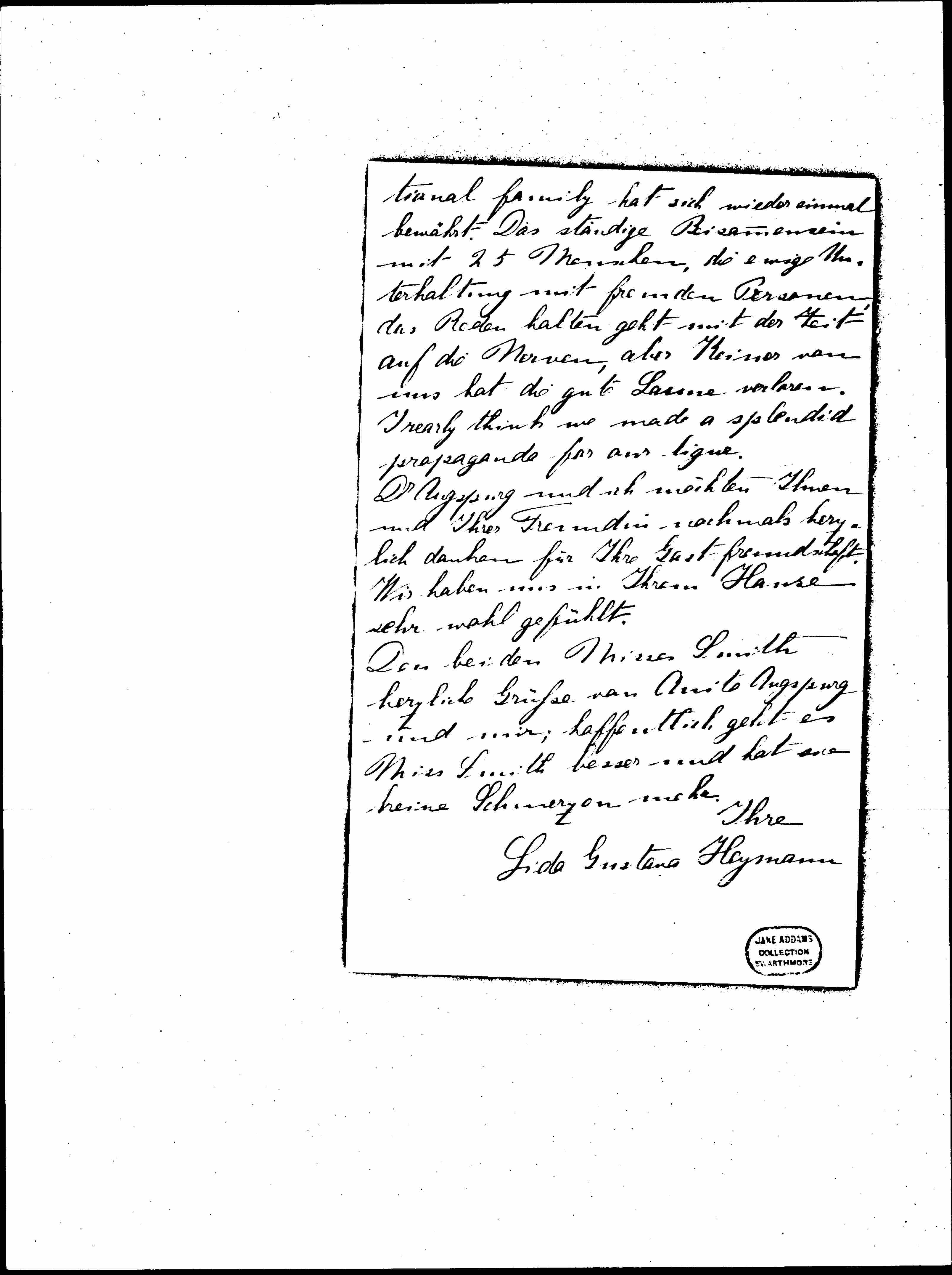 To both Misses Smith warm greetings from Anita Augspurg and me; hopefully Miss Smith is feeling better and is no longer in pain.