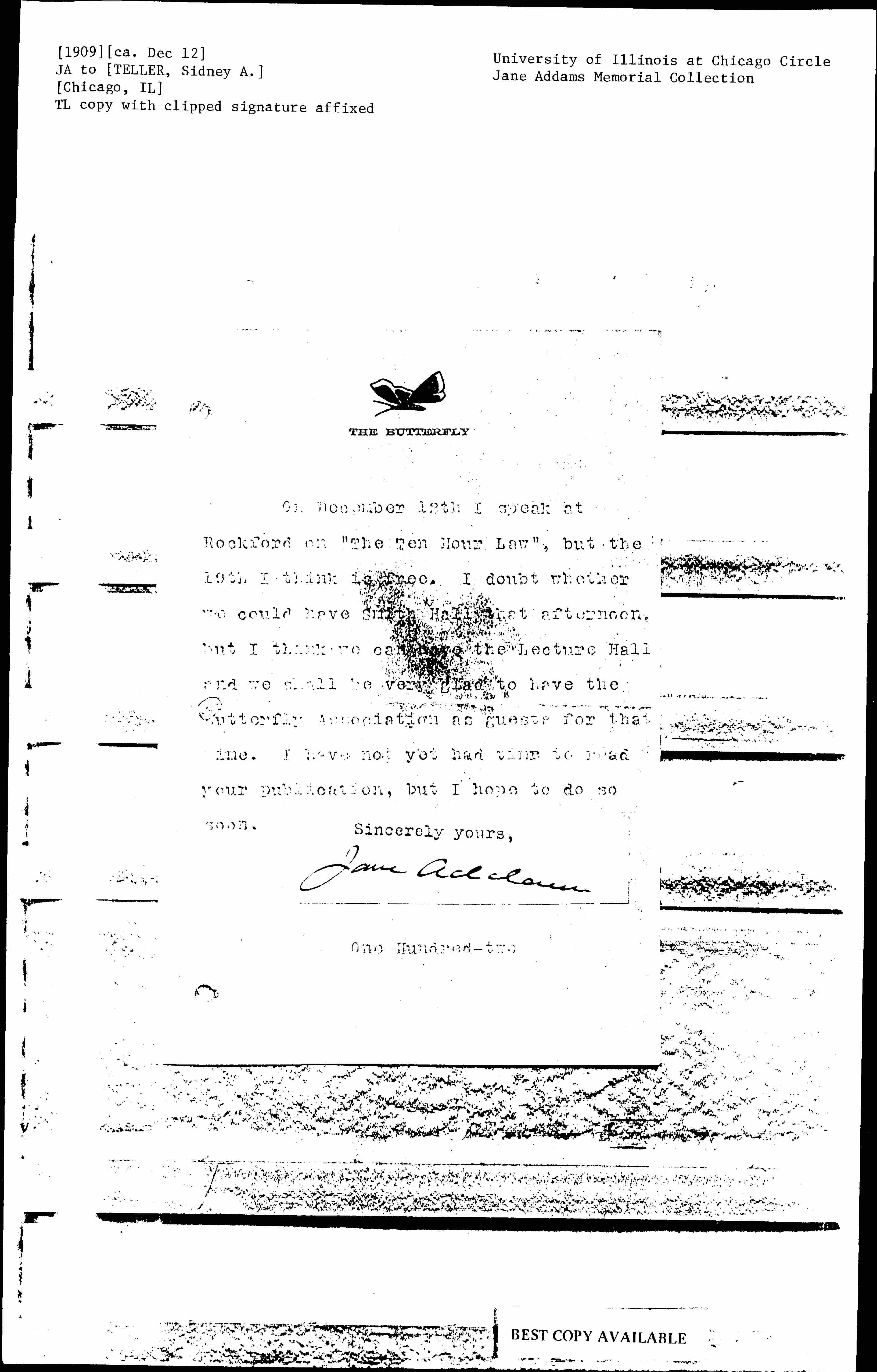 Jane Addams [signed]