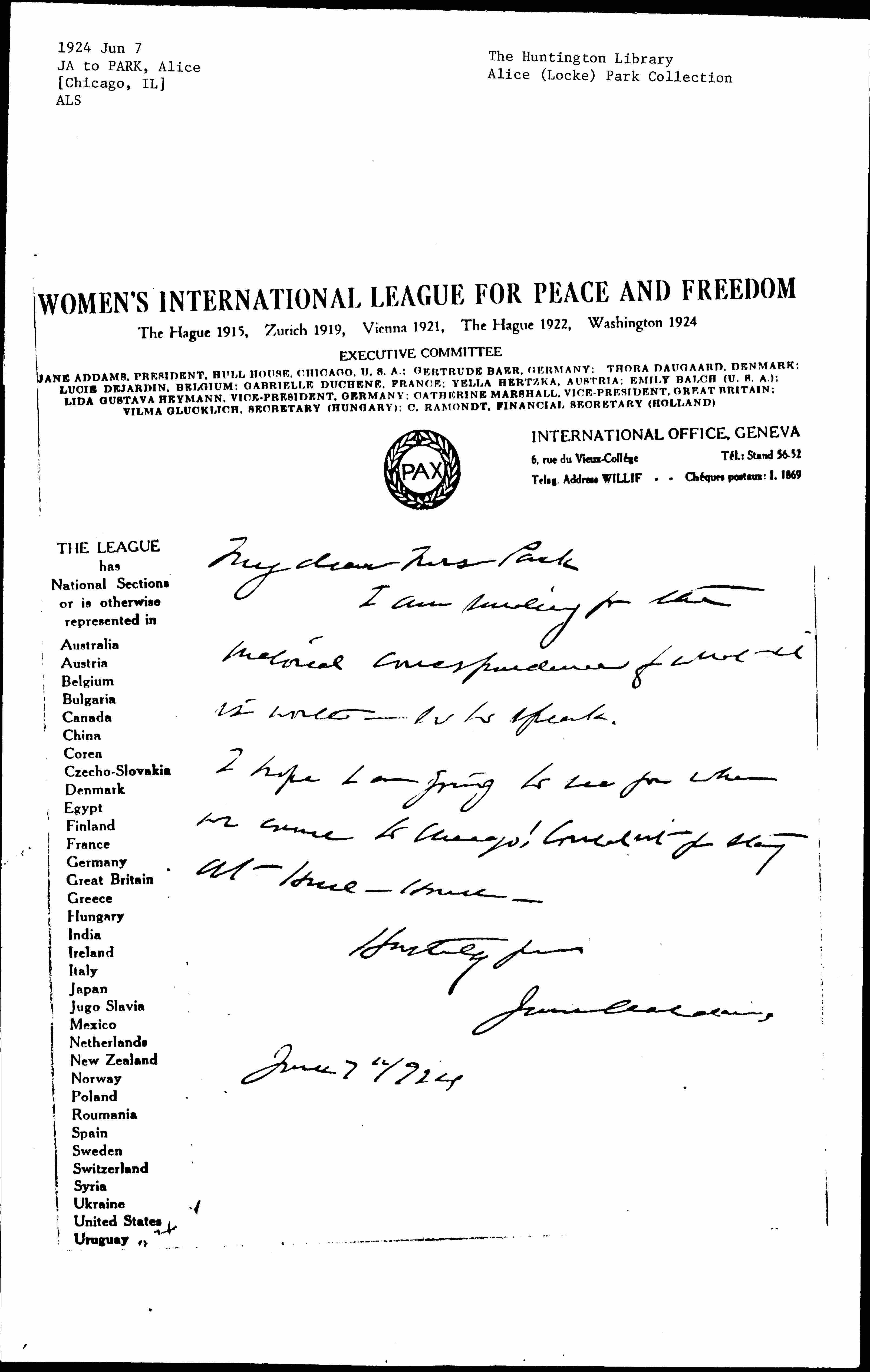 WOMEN'S INTERNATIONAL LEAGUE FOR PEACE AND FREEDOM
