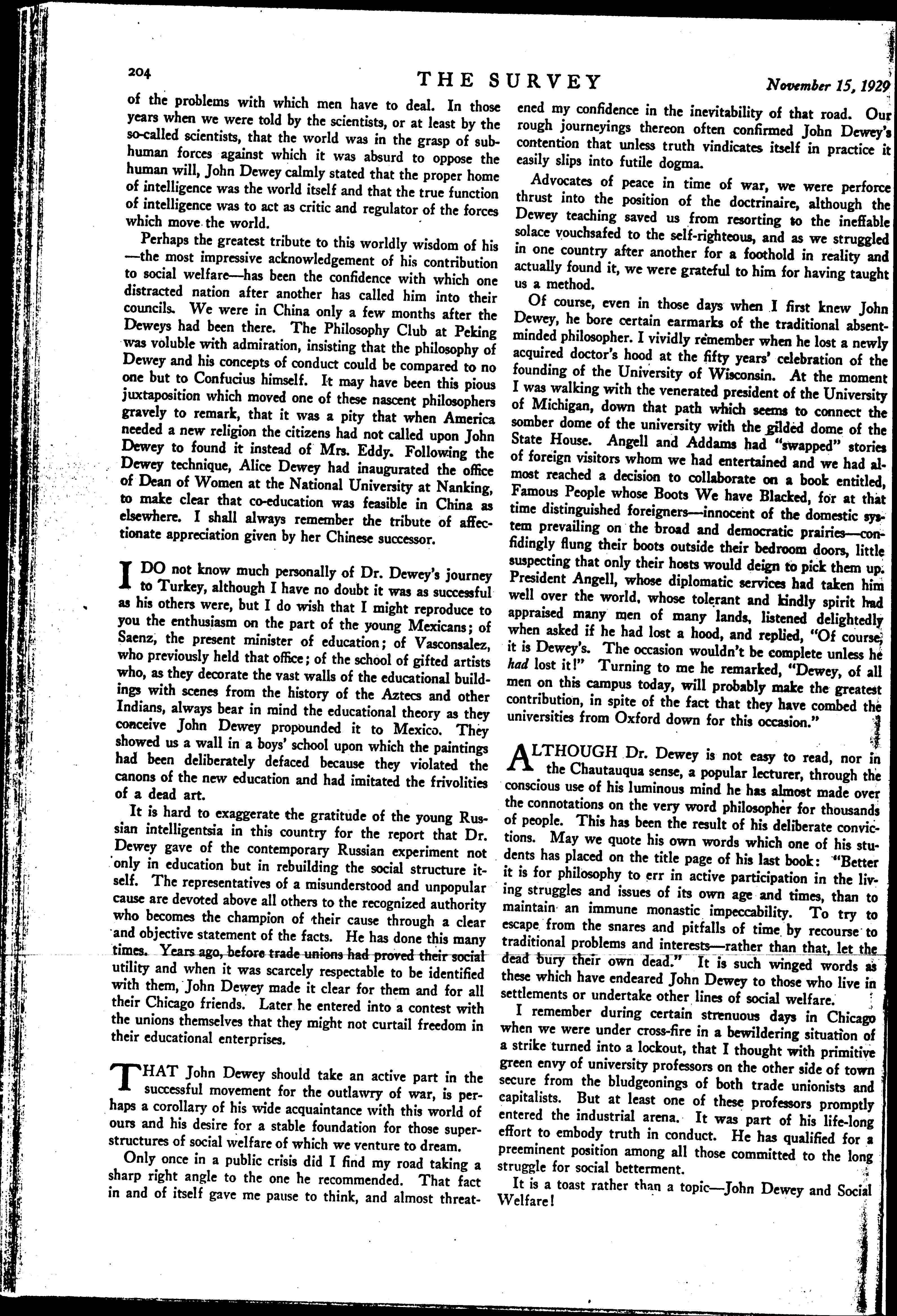John Dewey and Social Welfare, October 19, 1929