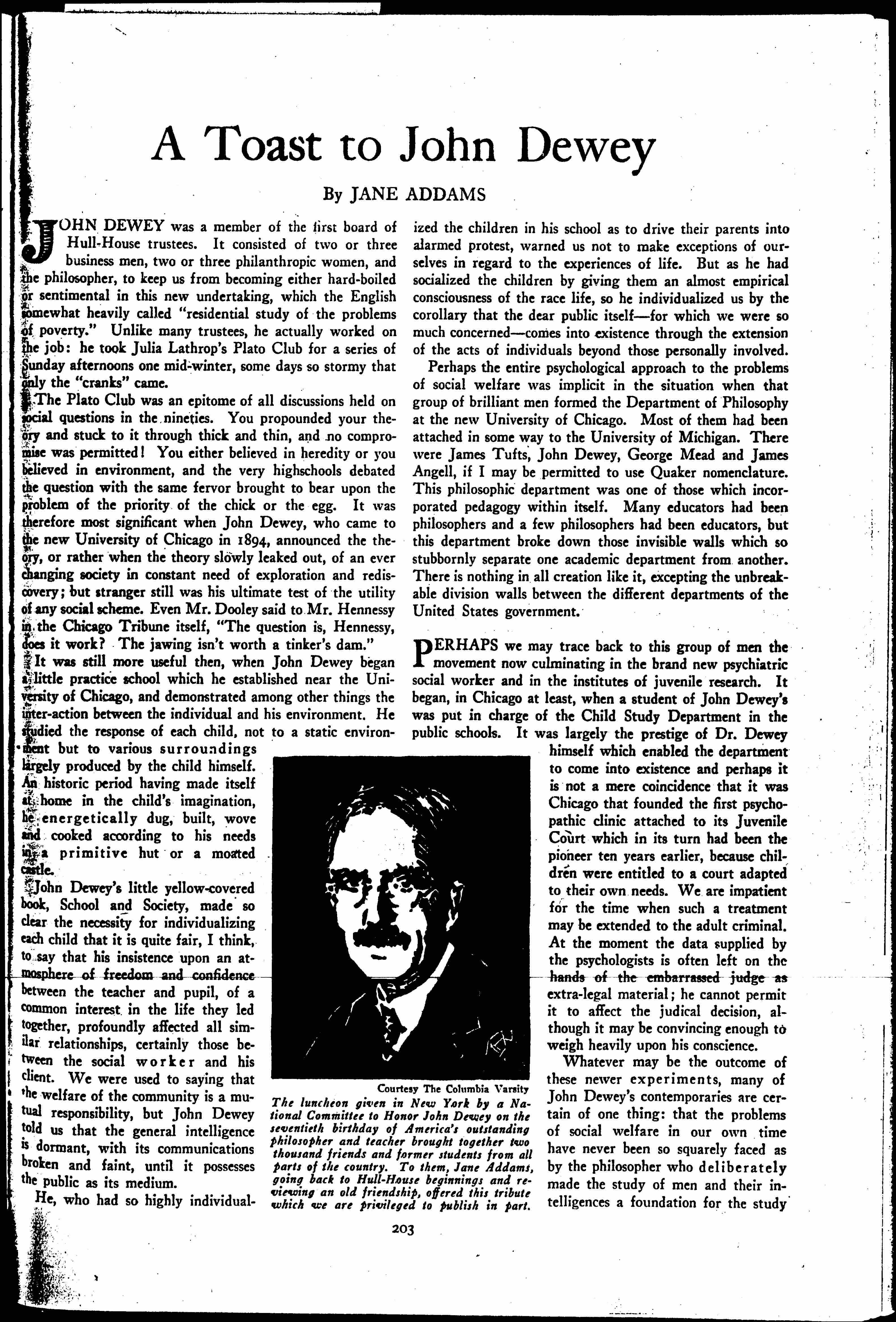 A Toast to John Dewey, November 15, 1929