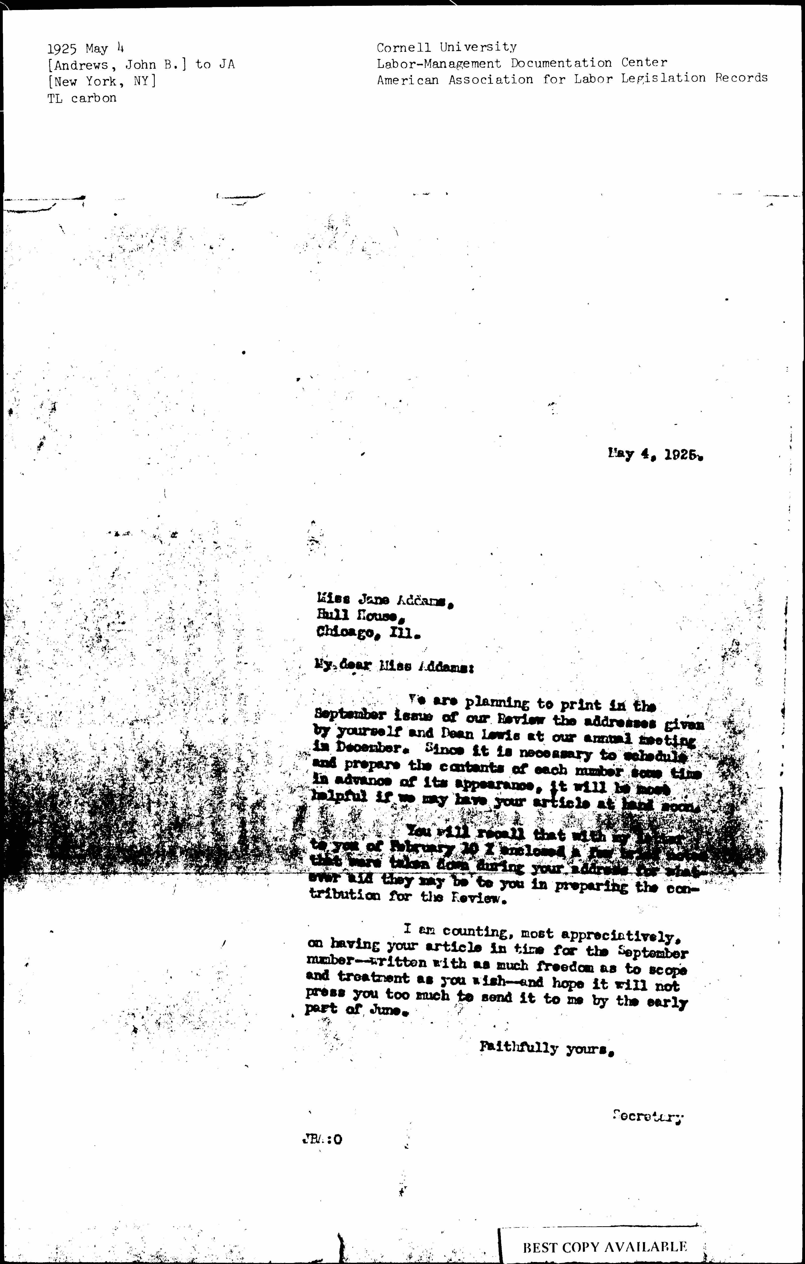 My dear Miss Addams: