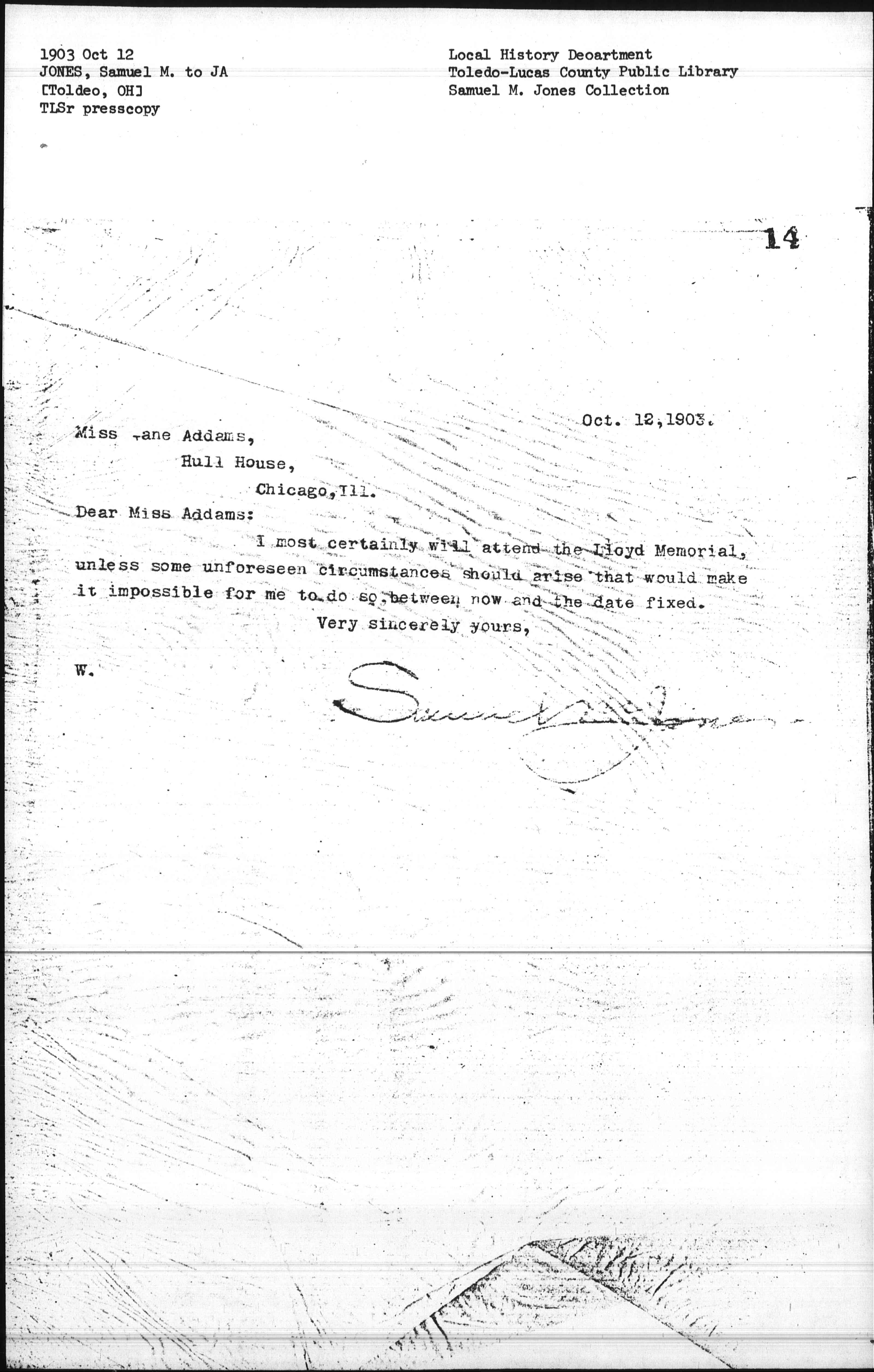 Dear Miss Addams: