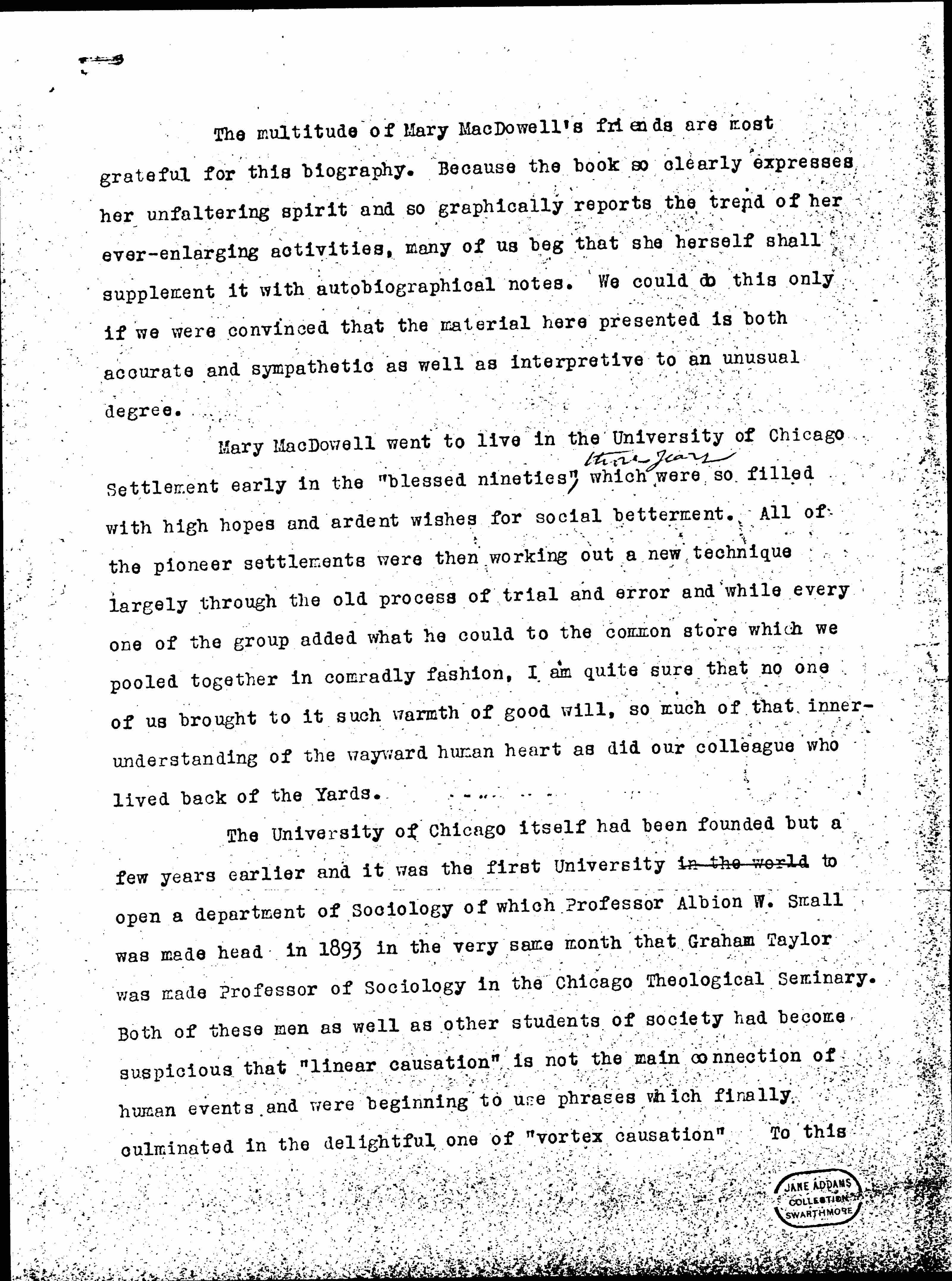 Foreword to Mary McDowell: Neighbor, 1928