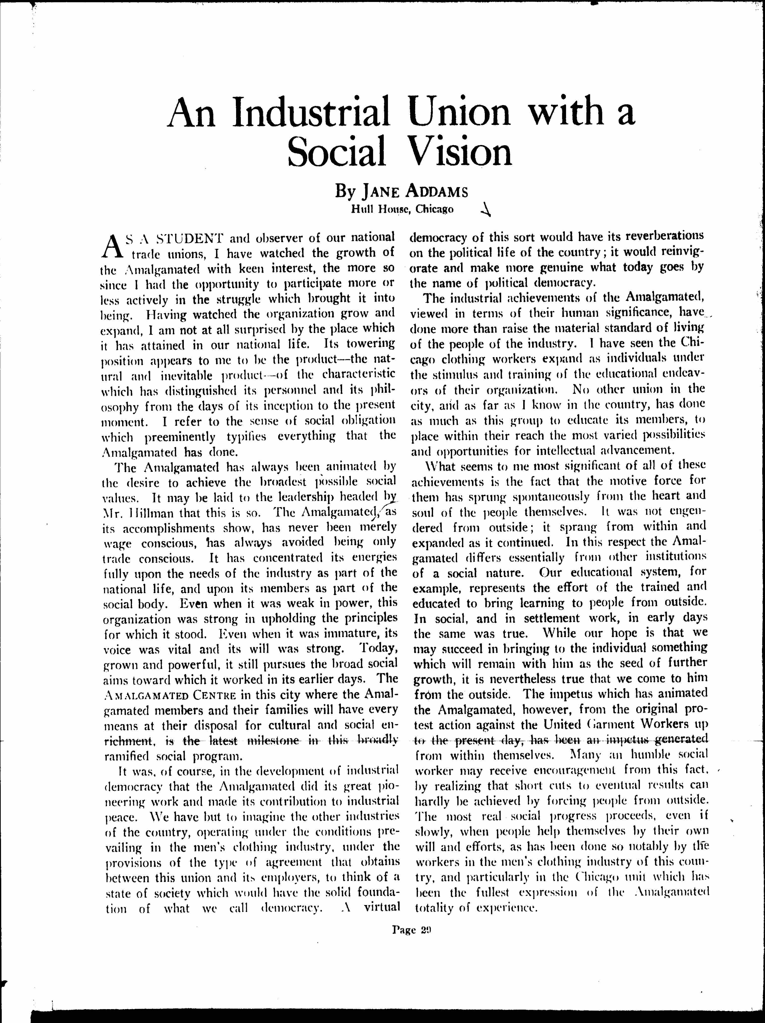 An Industrial Union With a Social Vision, 1928