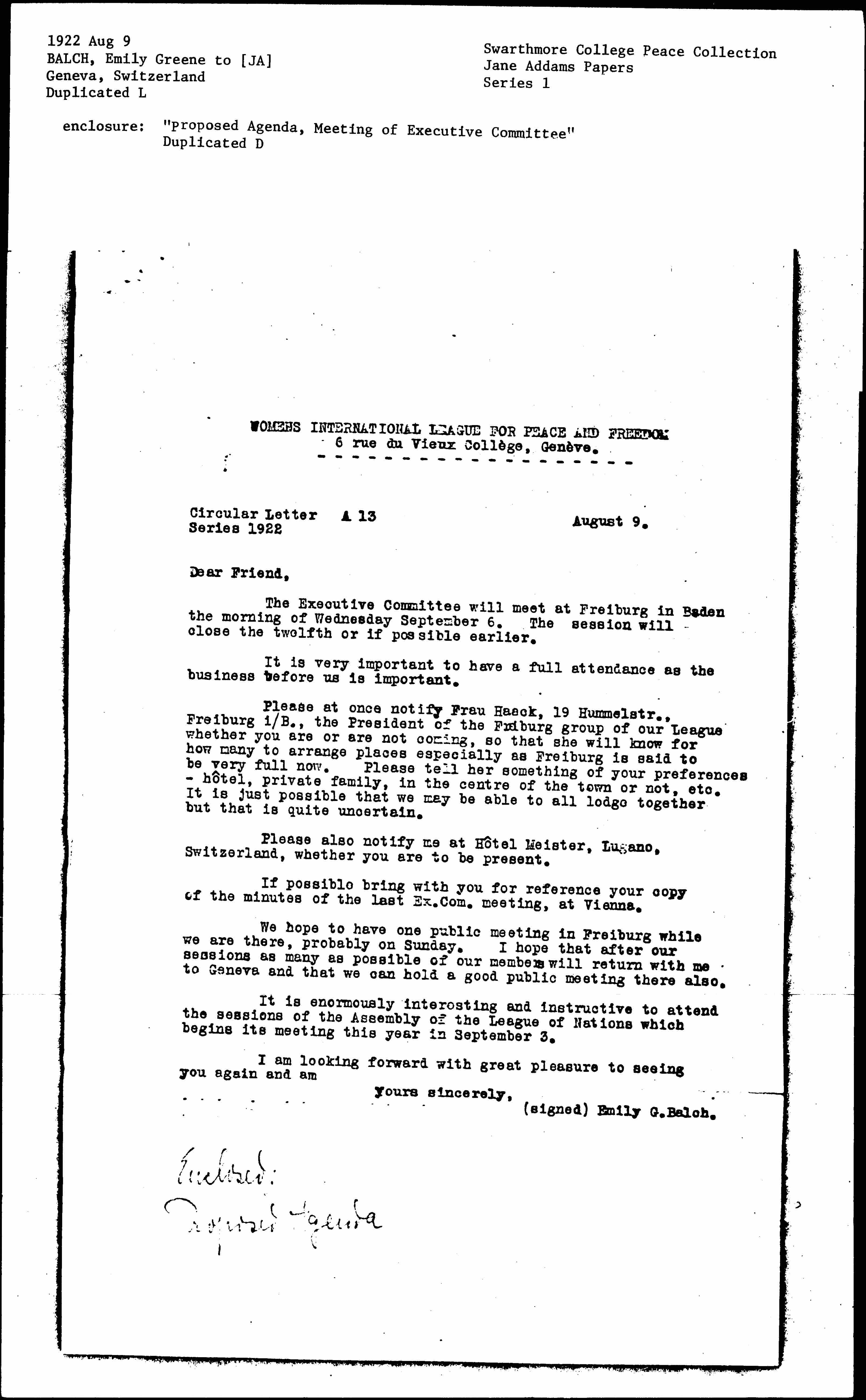 (signed) Emily G. Balch.