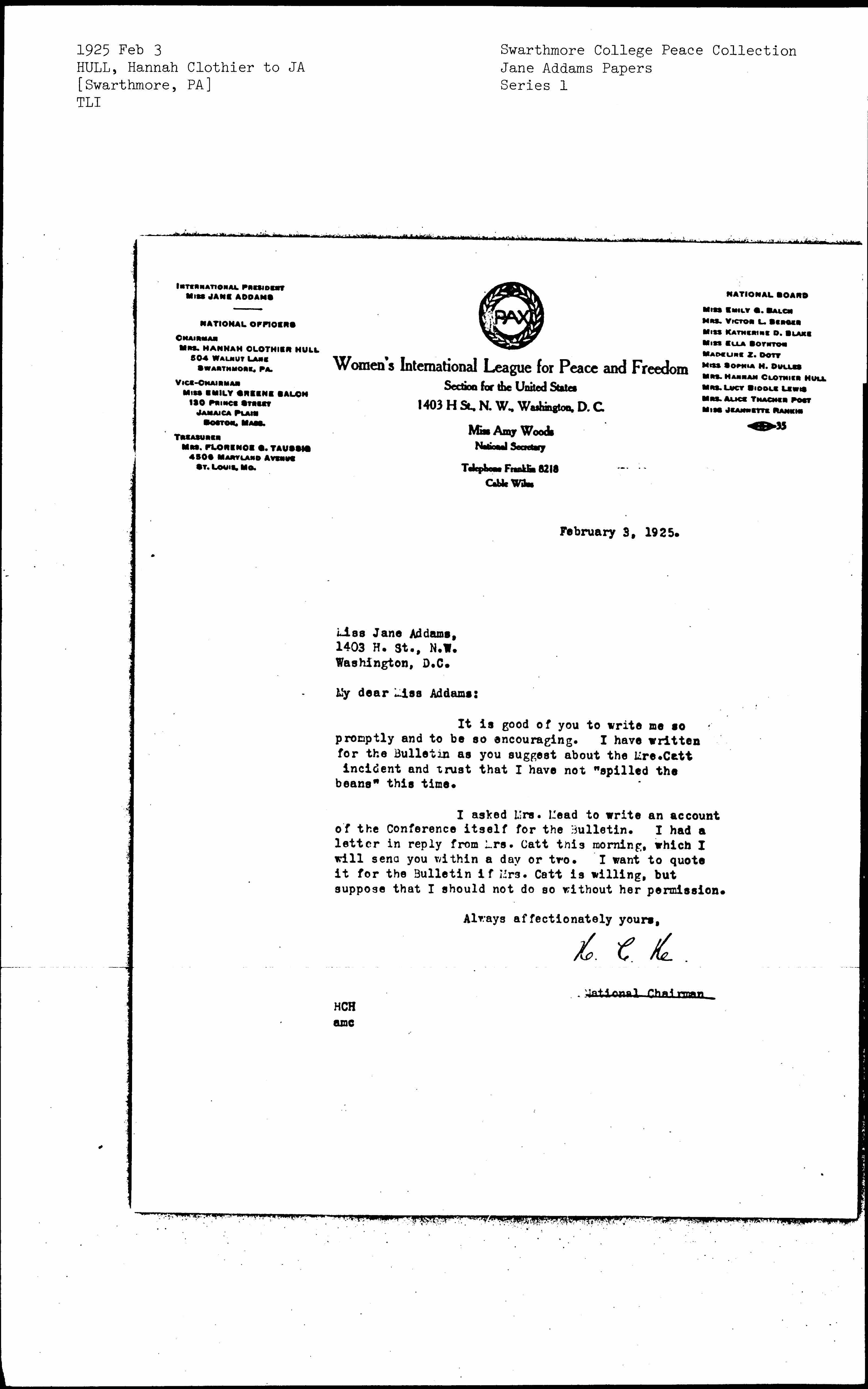 I asked Mrs. Mead to write an account of the Conference itself for the Bulletin. I had a letter in reply from Mrs. Catt this morning, which I will send you within a day or two. I want to quote it for the Bulletin if Mrs. Catt is willing, but suppose that I should not do so without her permission.