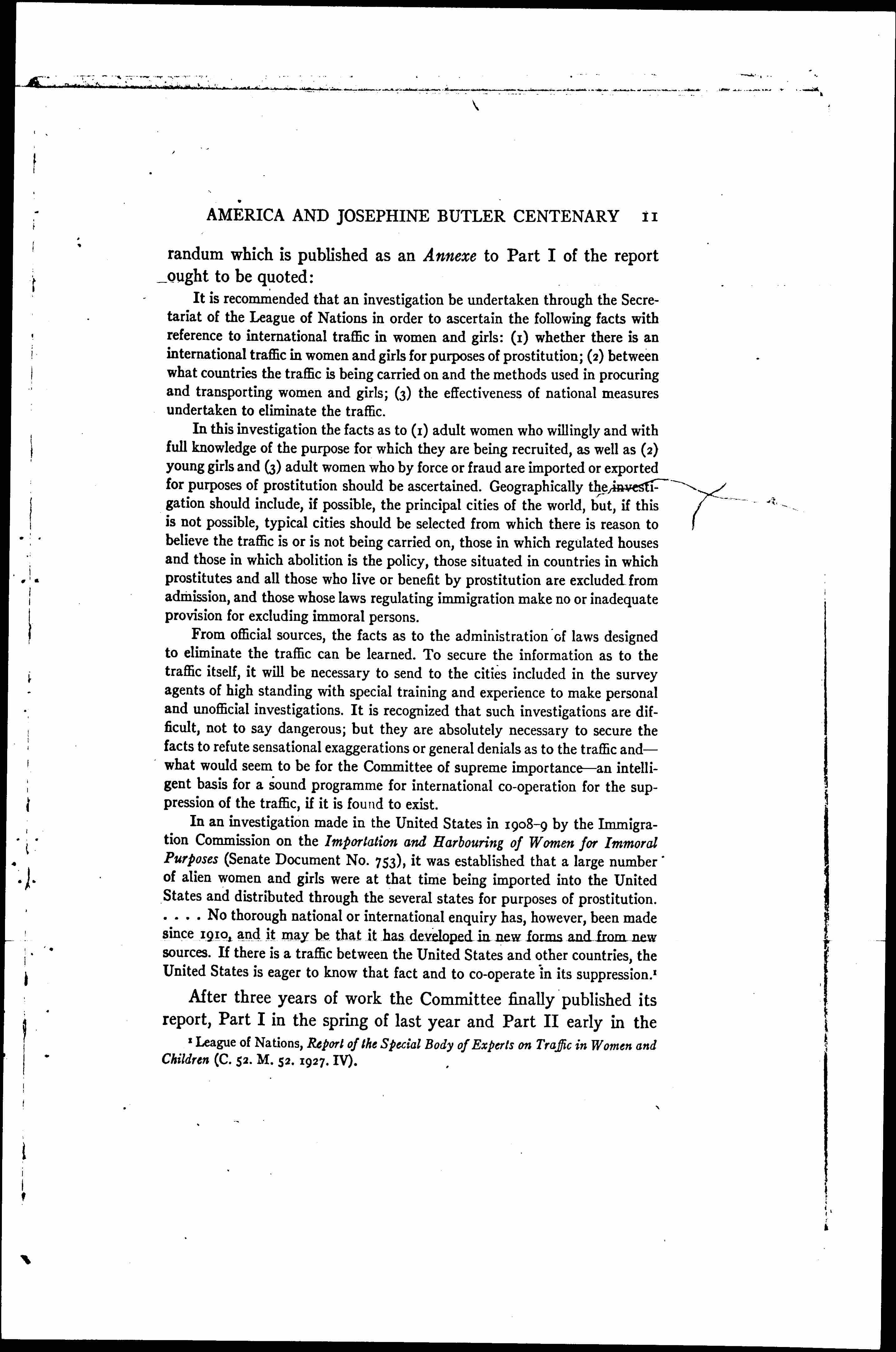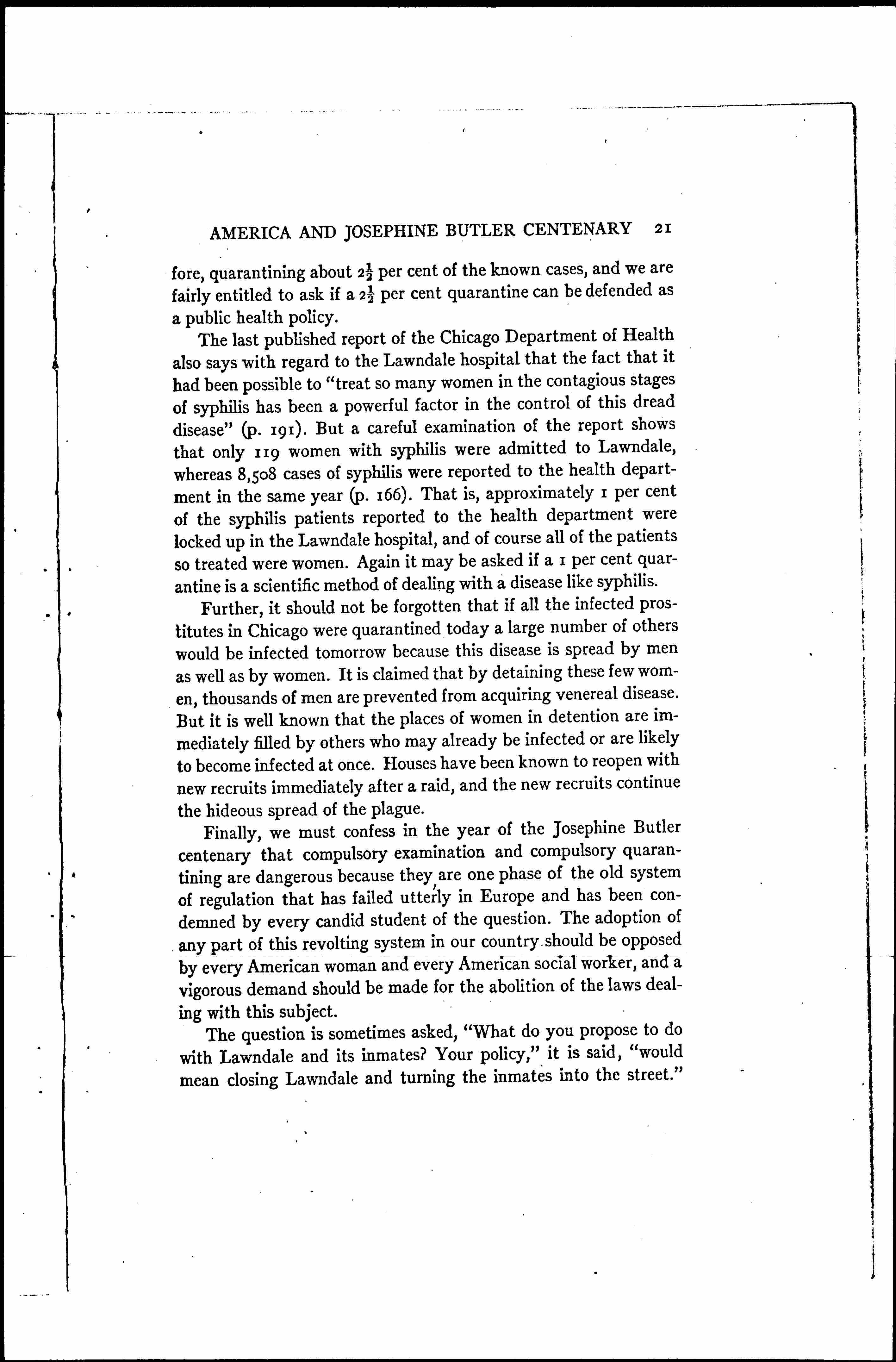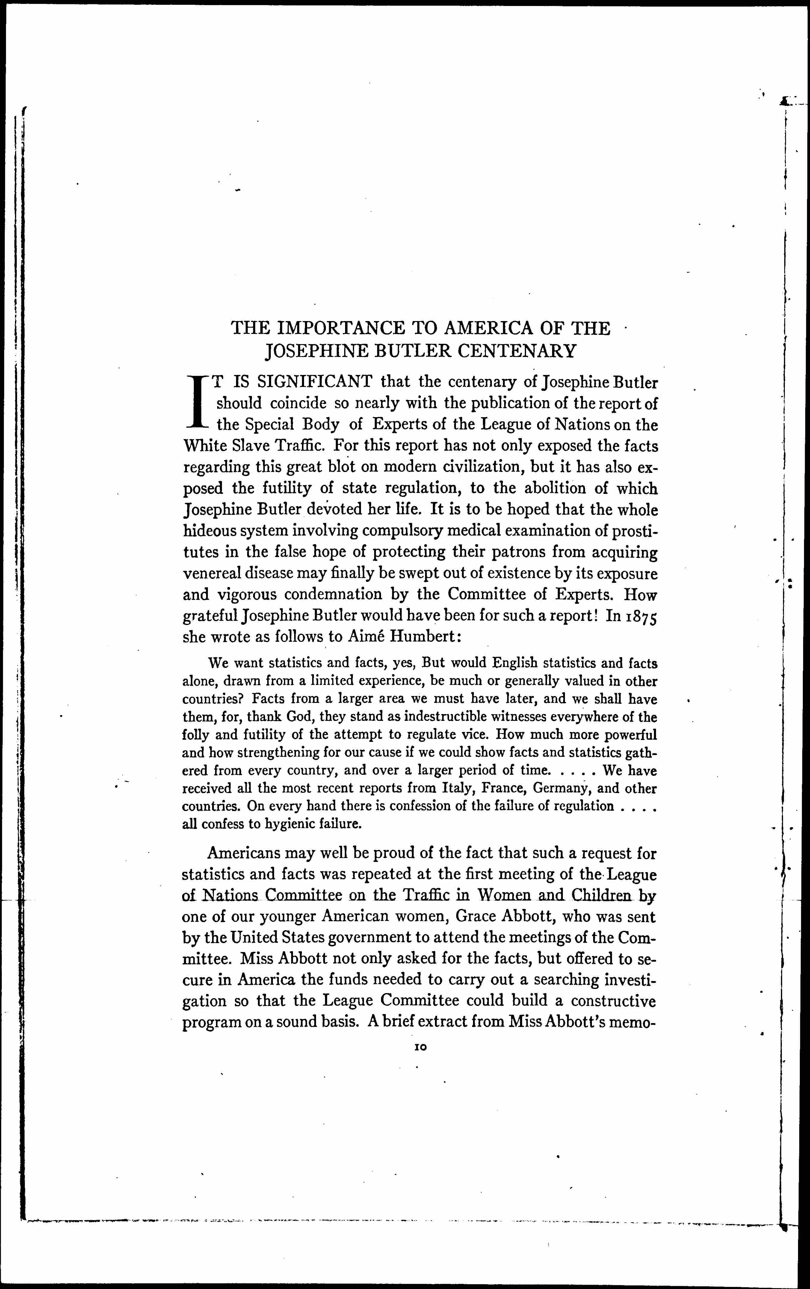 The Importance to America of the Josephine Butler Centenary, March 1928