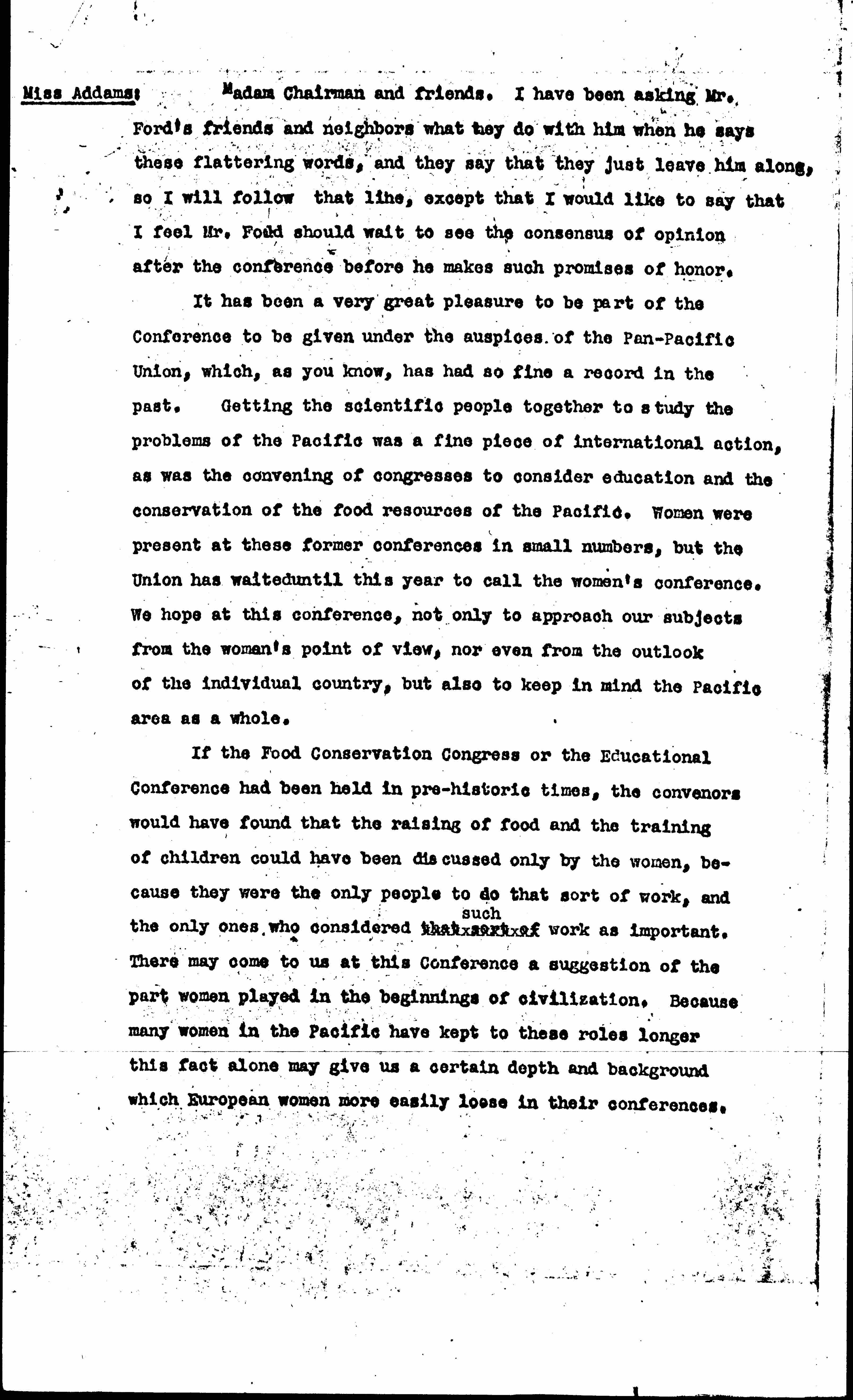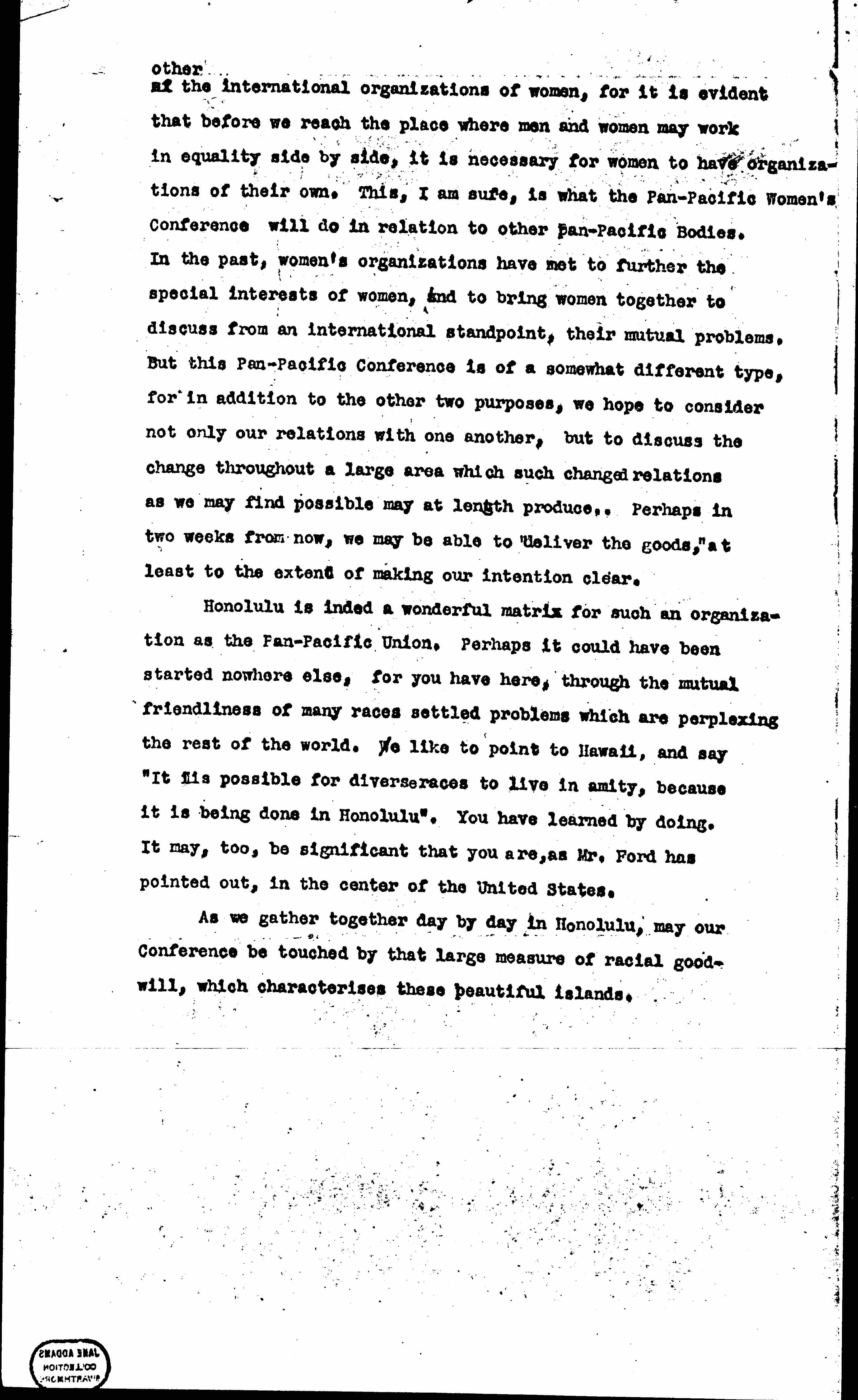 Speech to the Pan-Pacific Women's Conference, ca. August 9, 1928