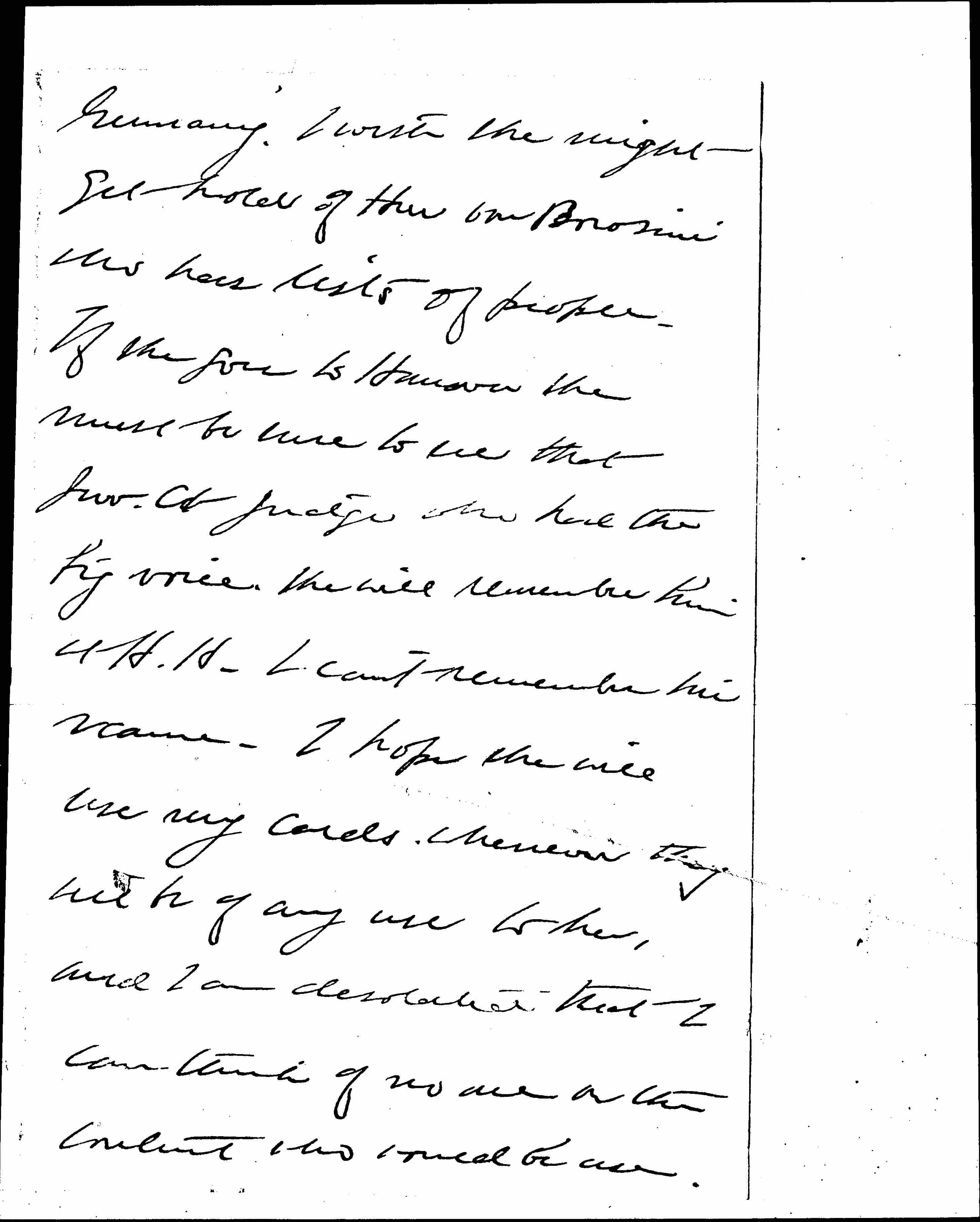I am so glad that Edith Abbott is going to have the little time abroad and I am awfully sorry that I know so few people in [page 2] Germany. I wish she might get hold of Herr von Borosini who has lists of people. If she goes to Hanover she must be sure to see that Juv. Ct judge who had the big voice she will remember him at H. H. I can't remember his name. I hope she will use my cards whenever they will be of any use to her, and I am desolated that I can think of no one on the continent who would be use [page 3] England is quite different.