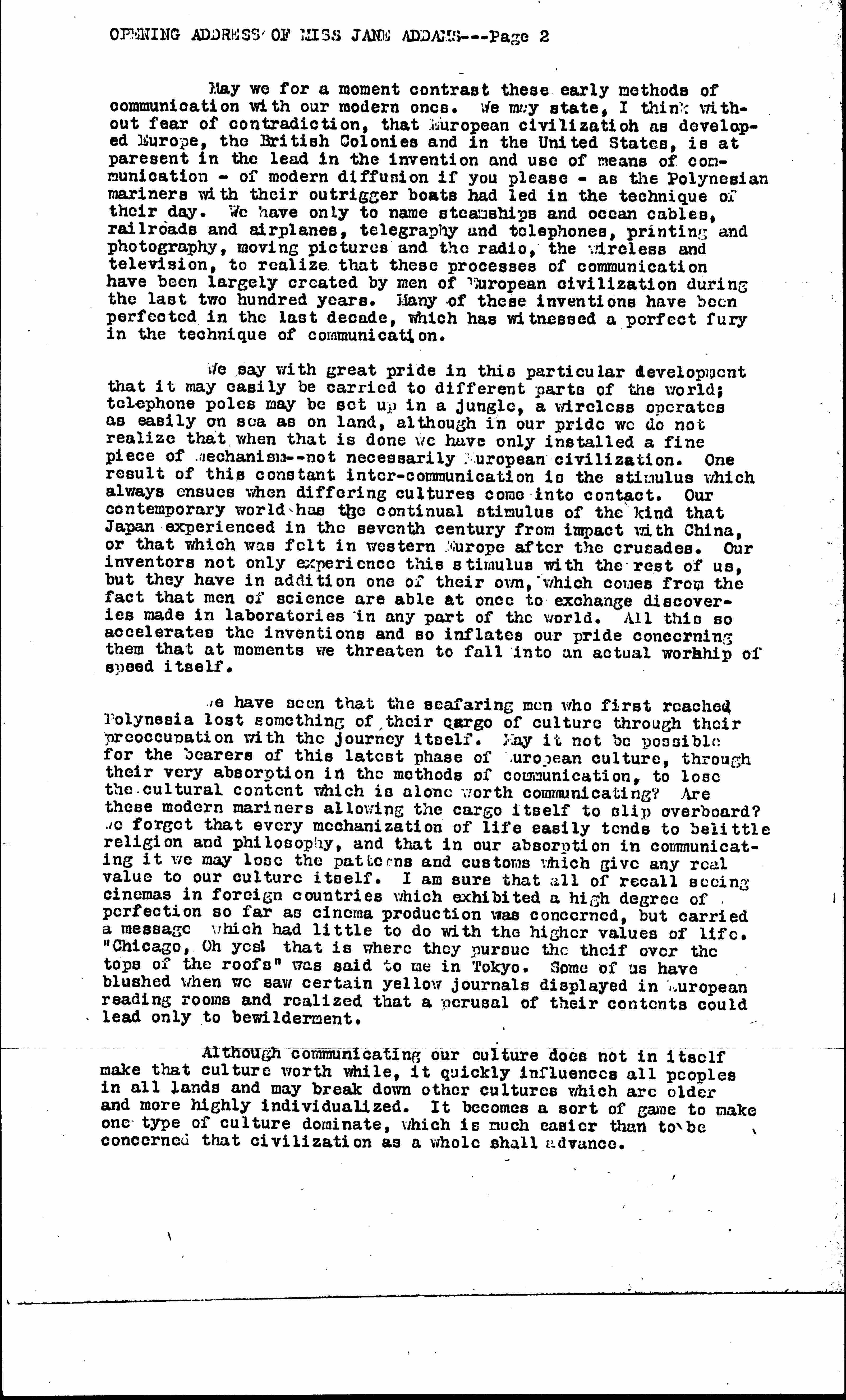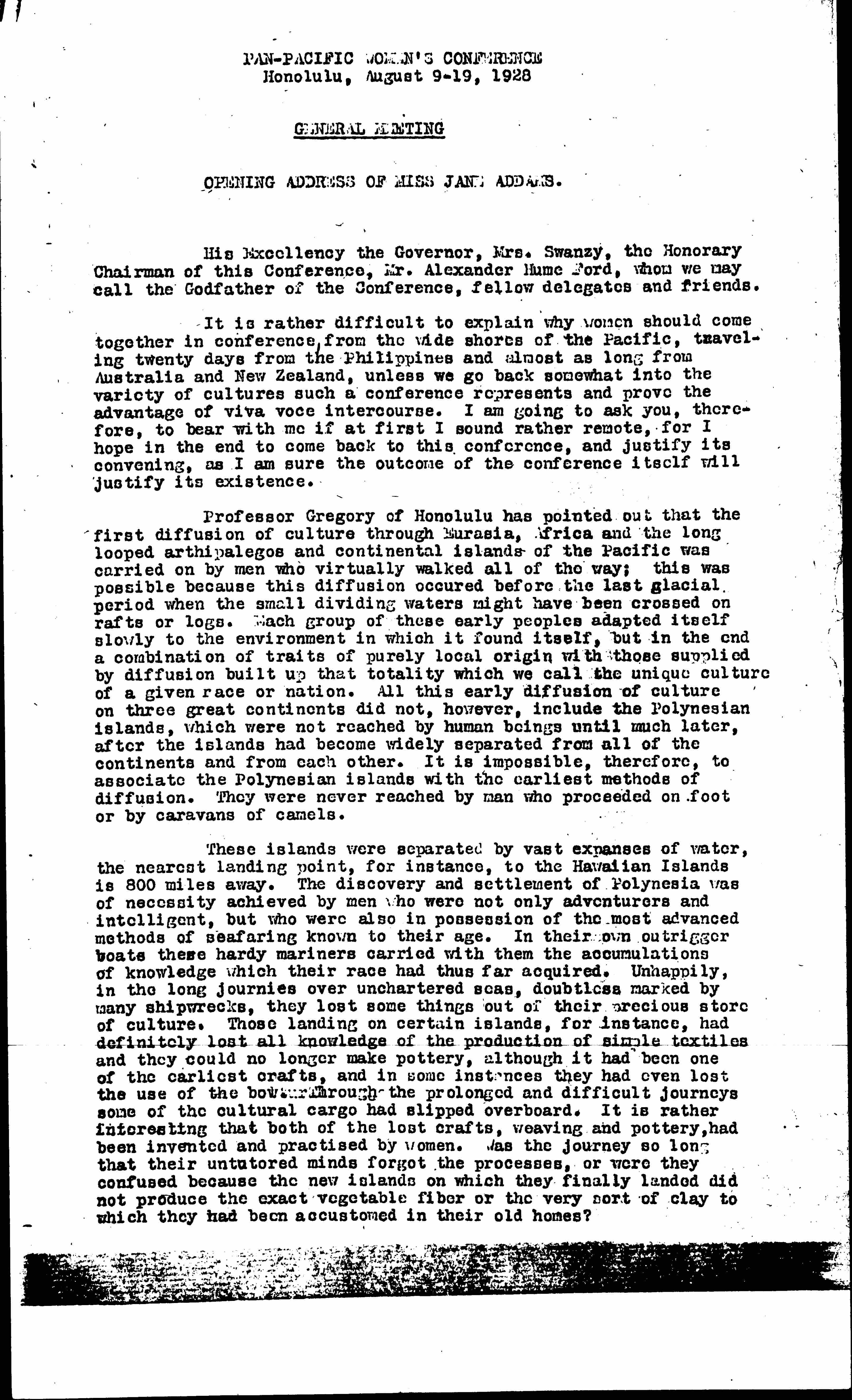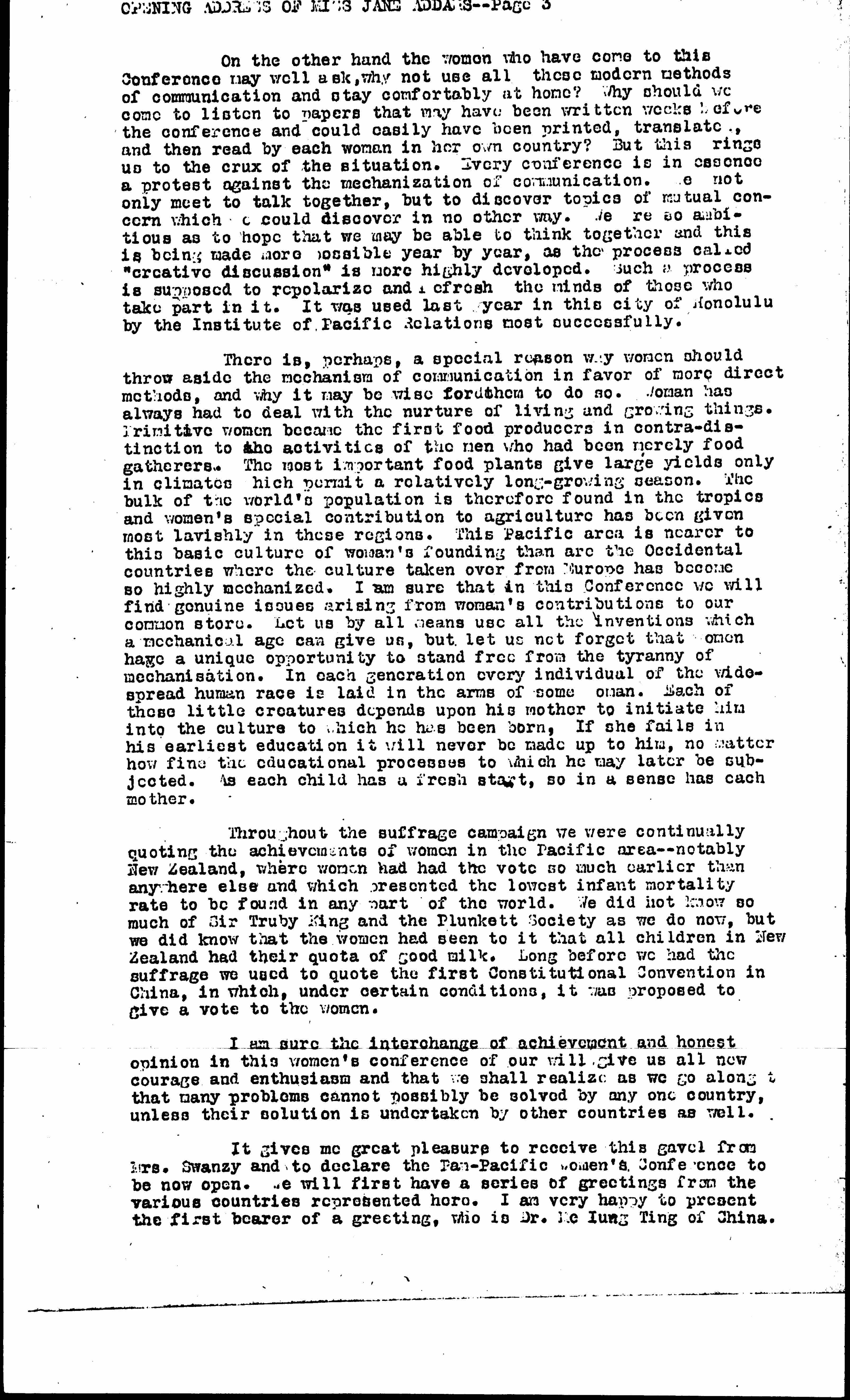 Presidential Address to the Pan-Pacific Women's Conference, August 11, 1928