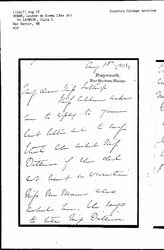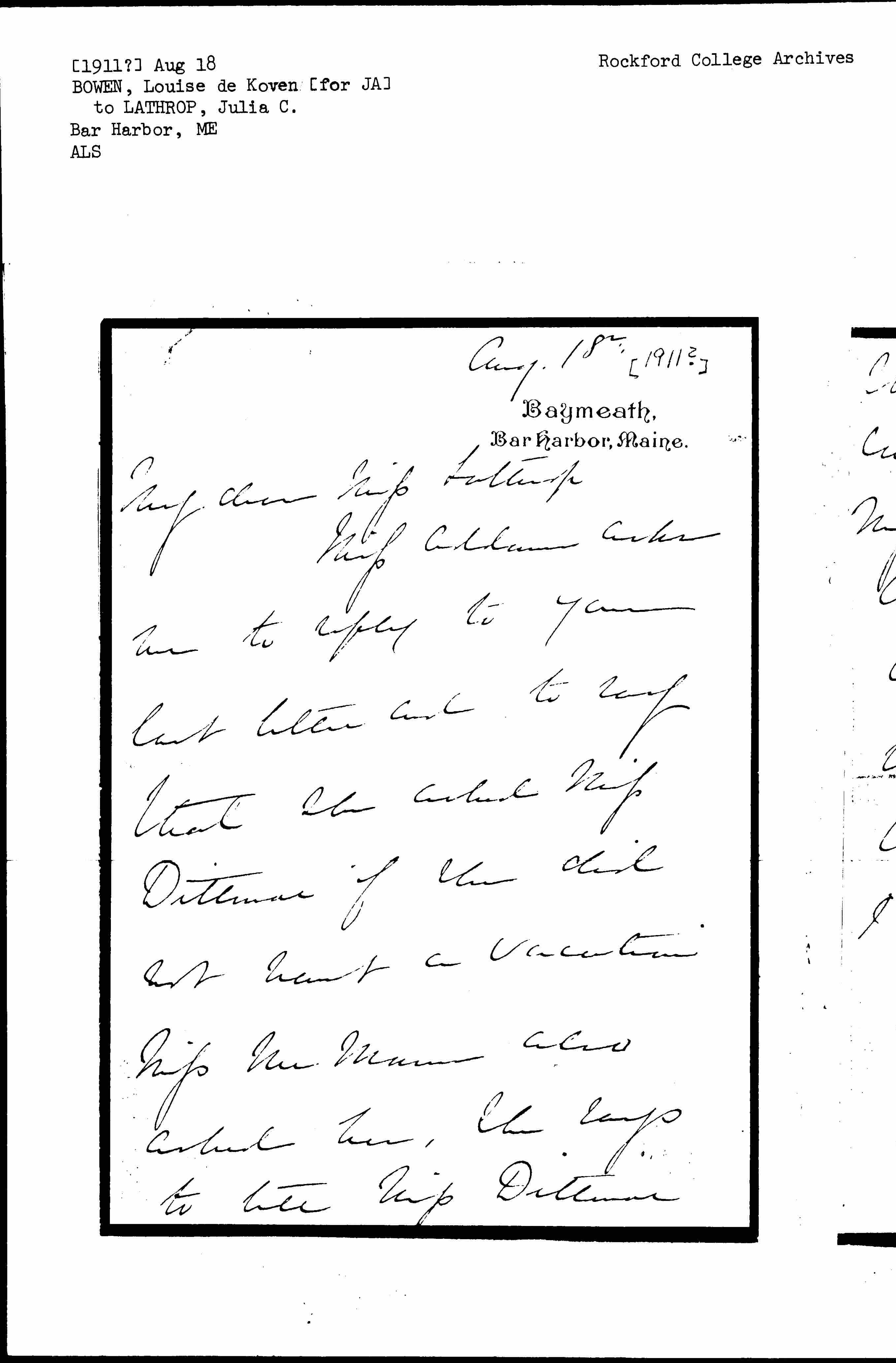 [Miss] Addams asks me to reply to your last letter and to say that she asked [Miss] Dittmar if she did not want a vacation [Miss] McManus also asked her. She says to tell [Miss] Dittmar [page 2] she can have one of course & to consult with [Miss] McManus.